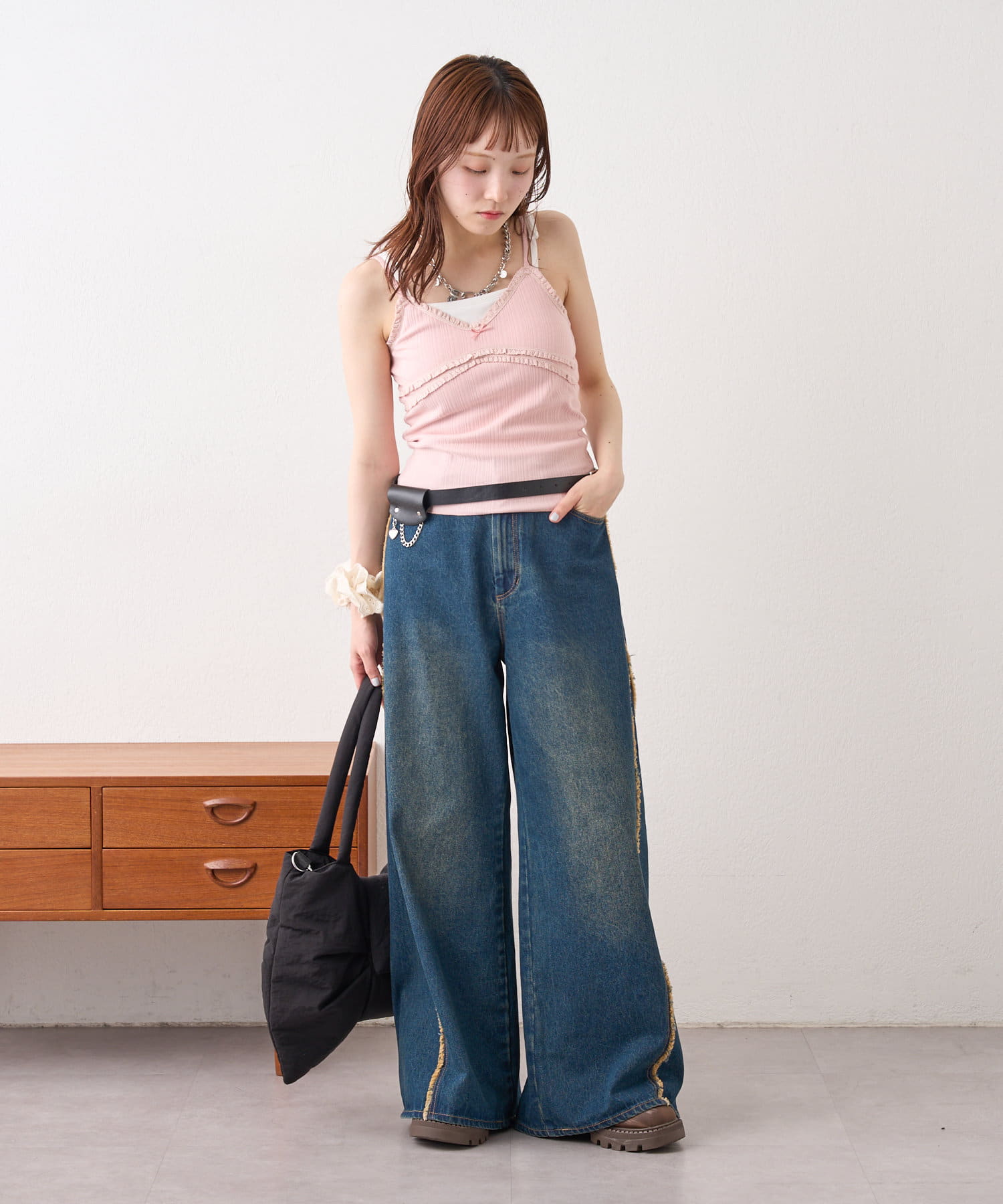 w closet(ダブルクローゼット) ランダムリブレースキャミ