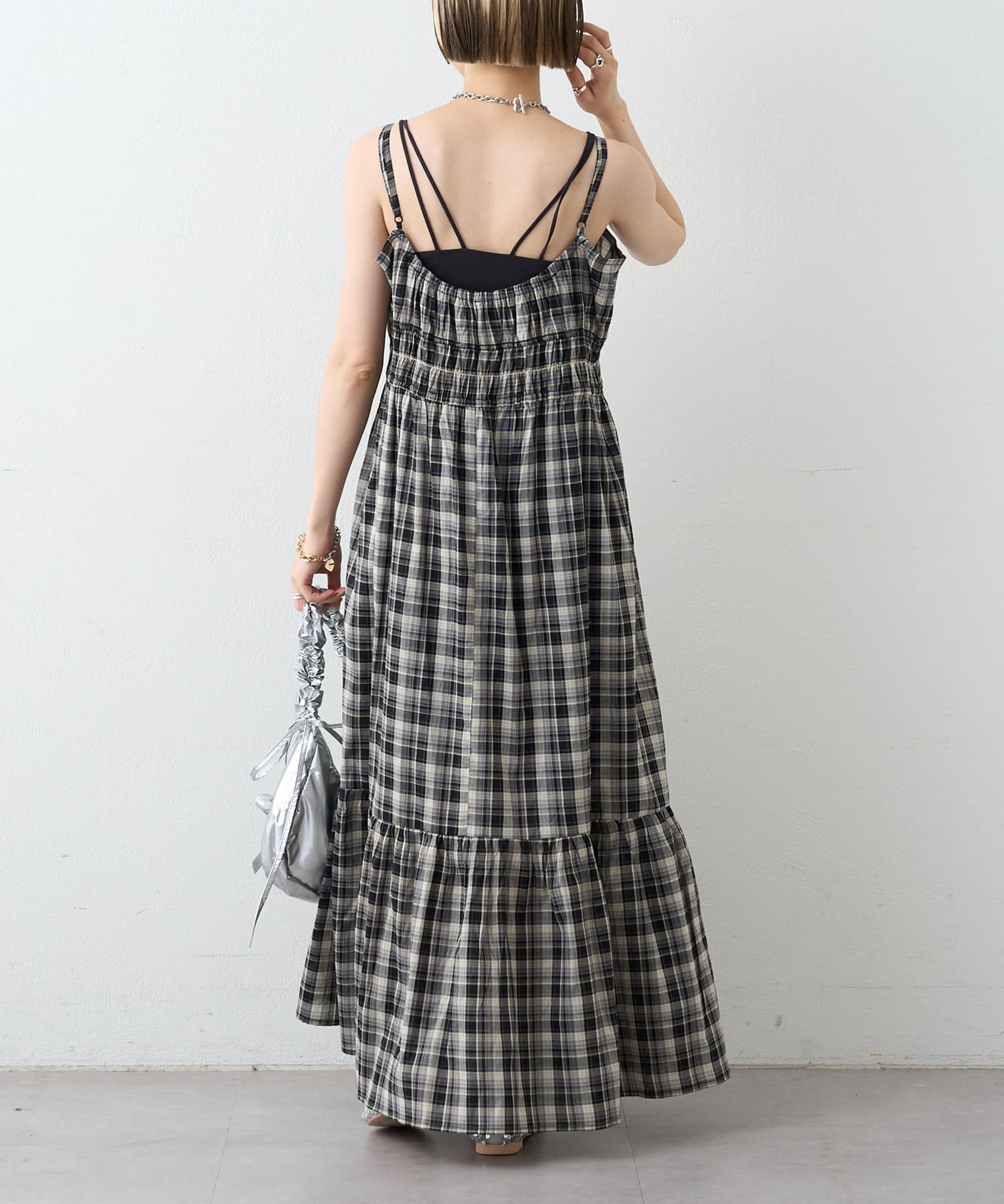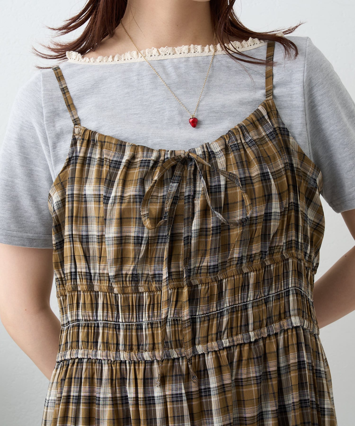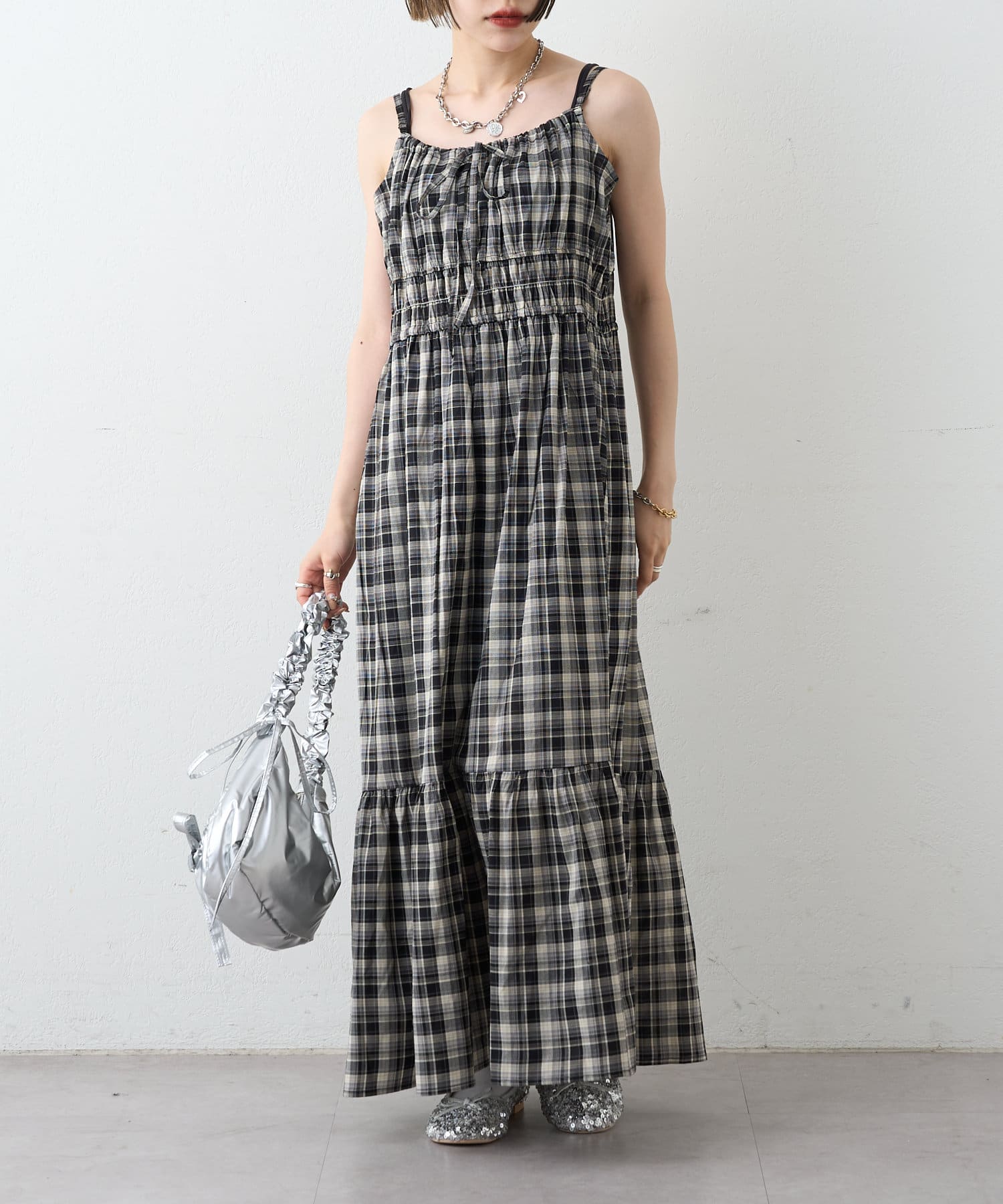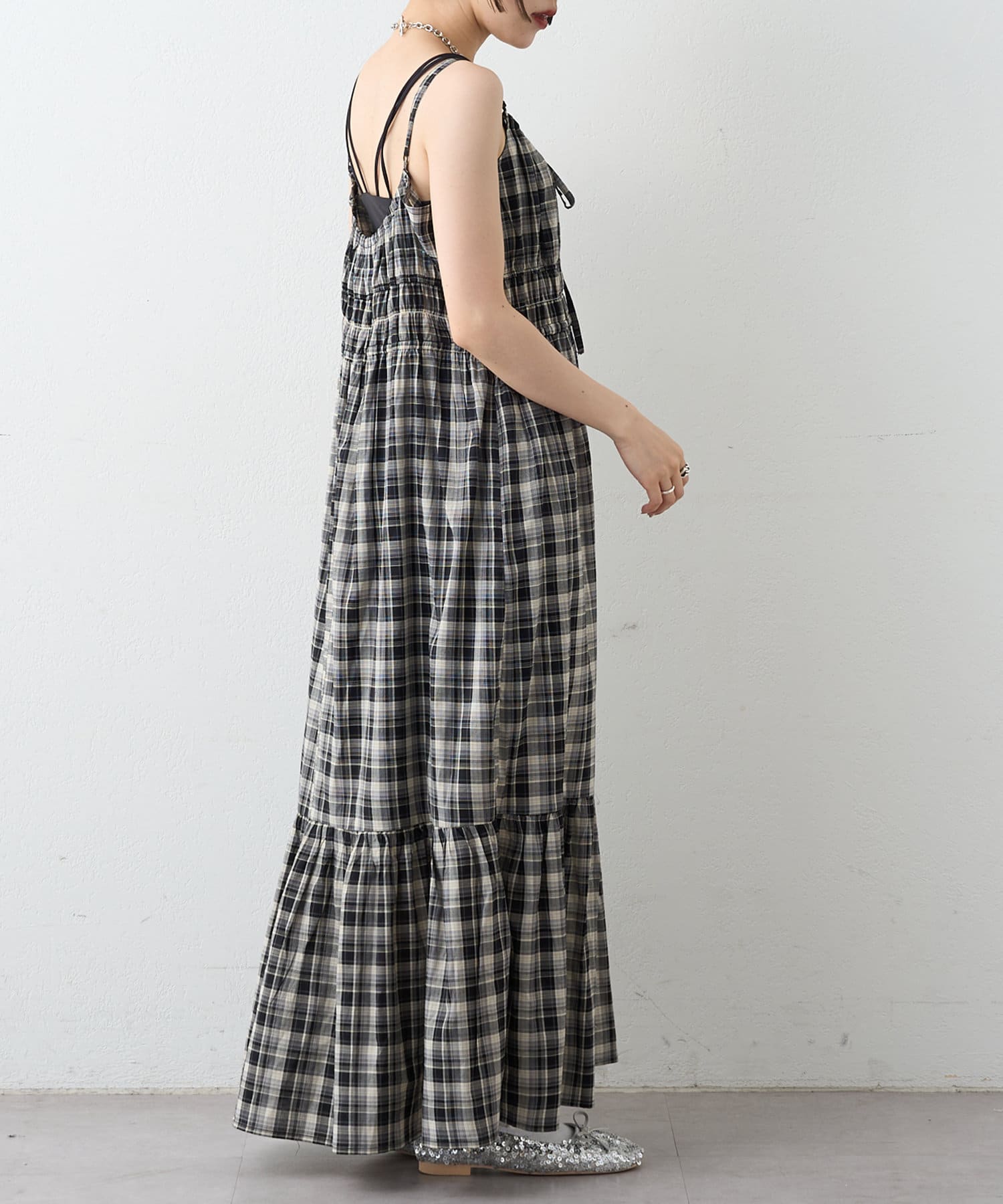 シアーチェックティアードキャミワンピース