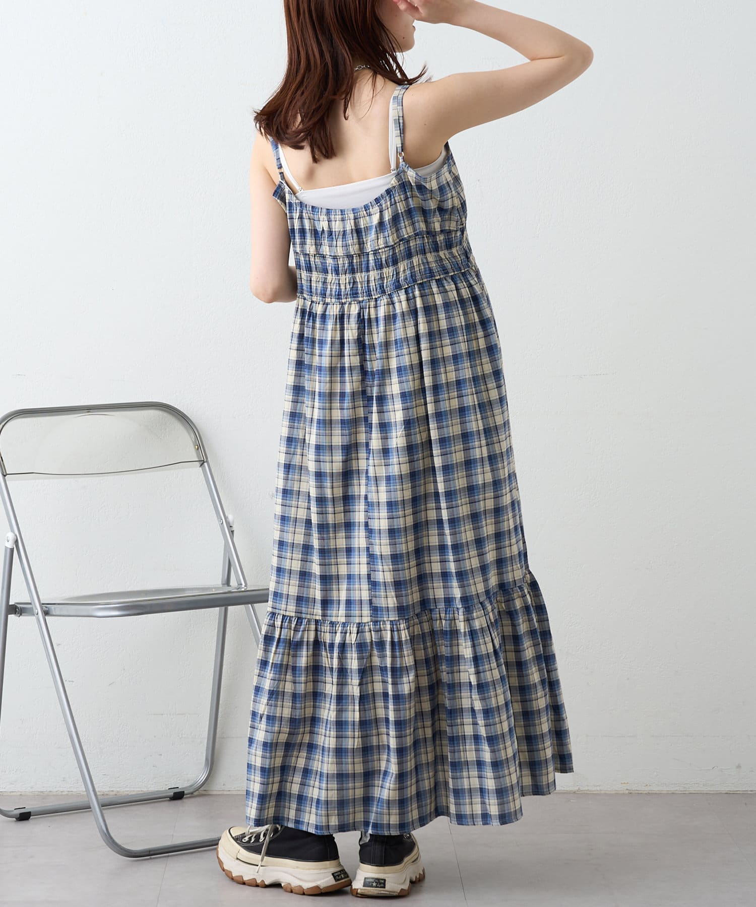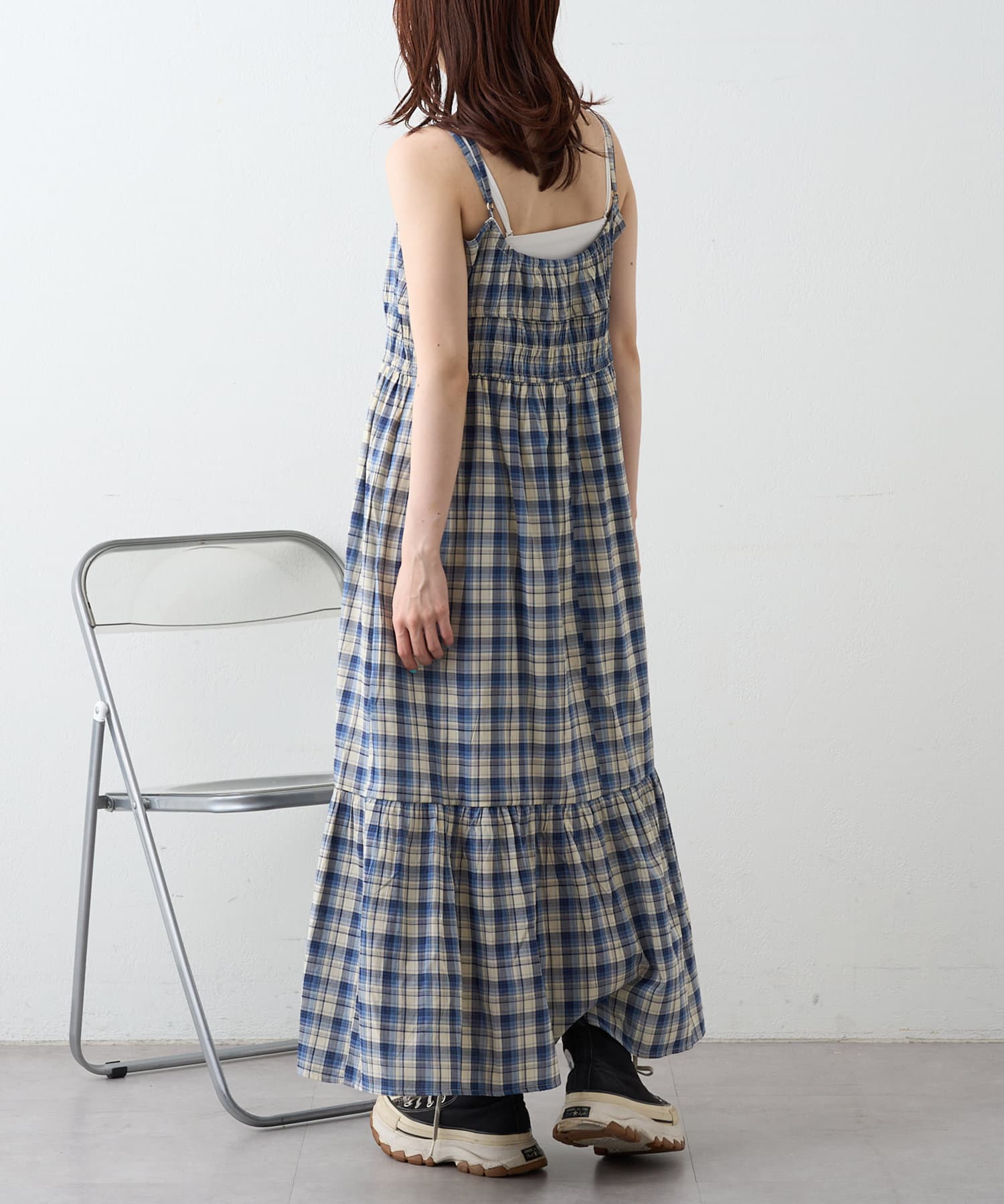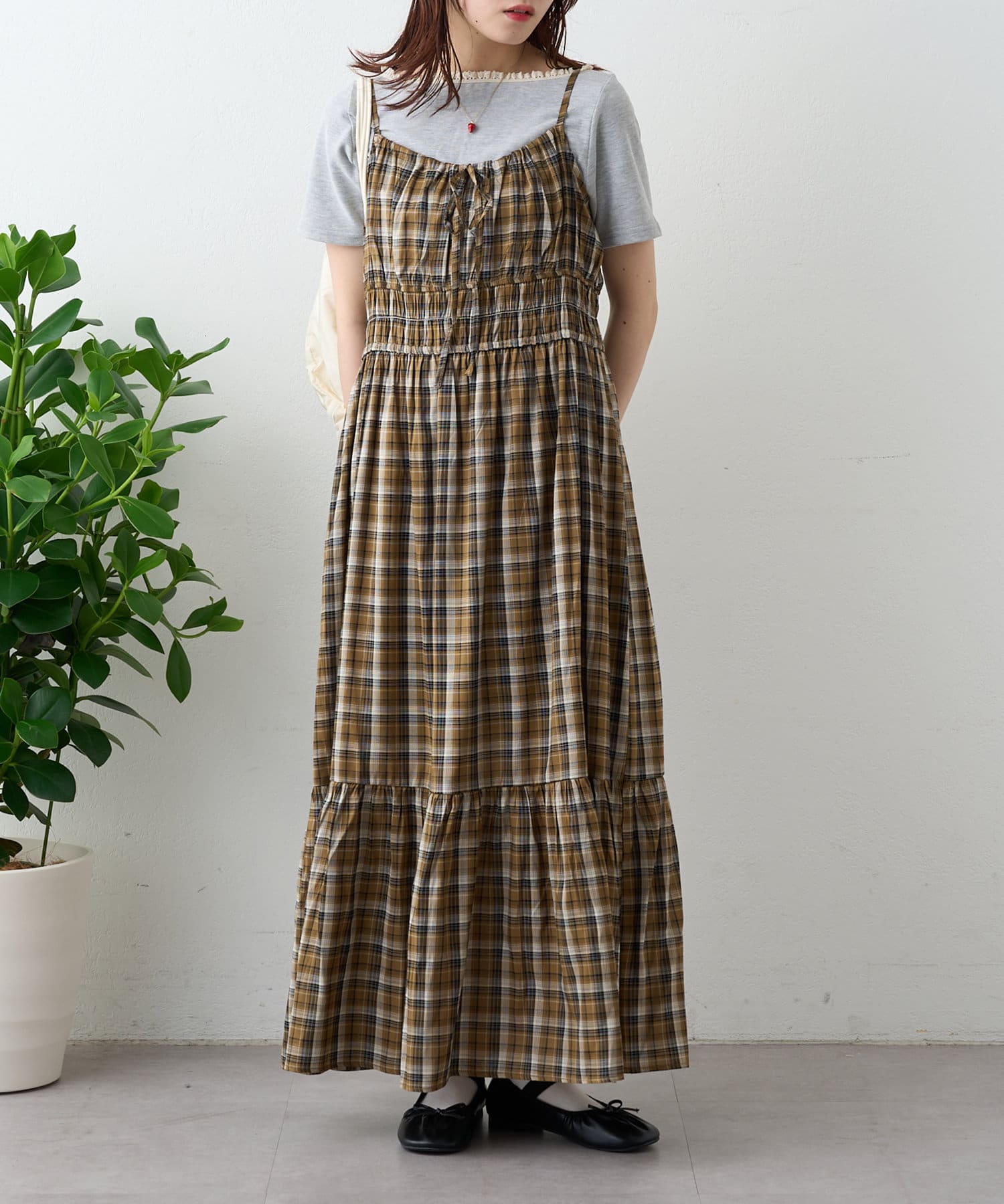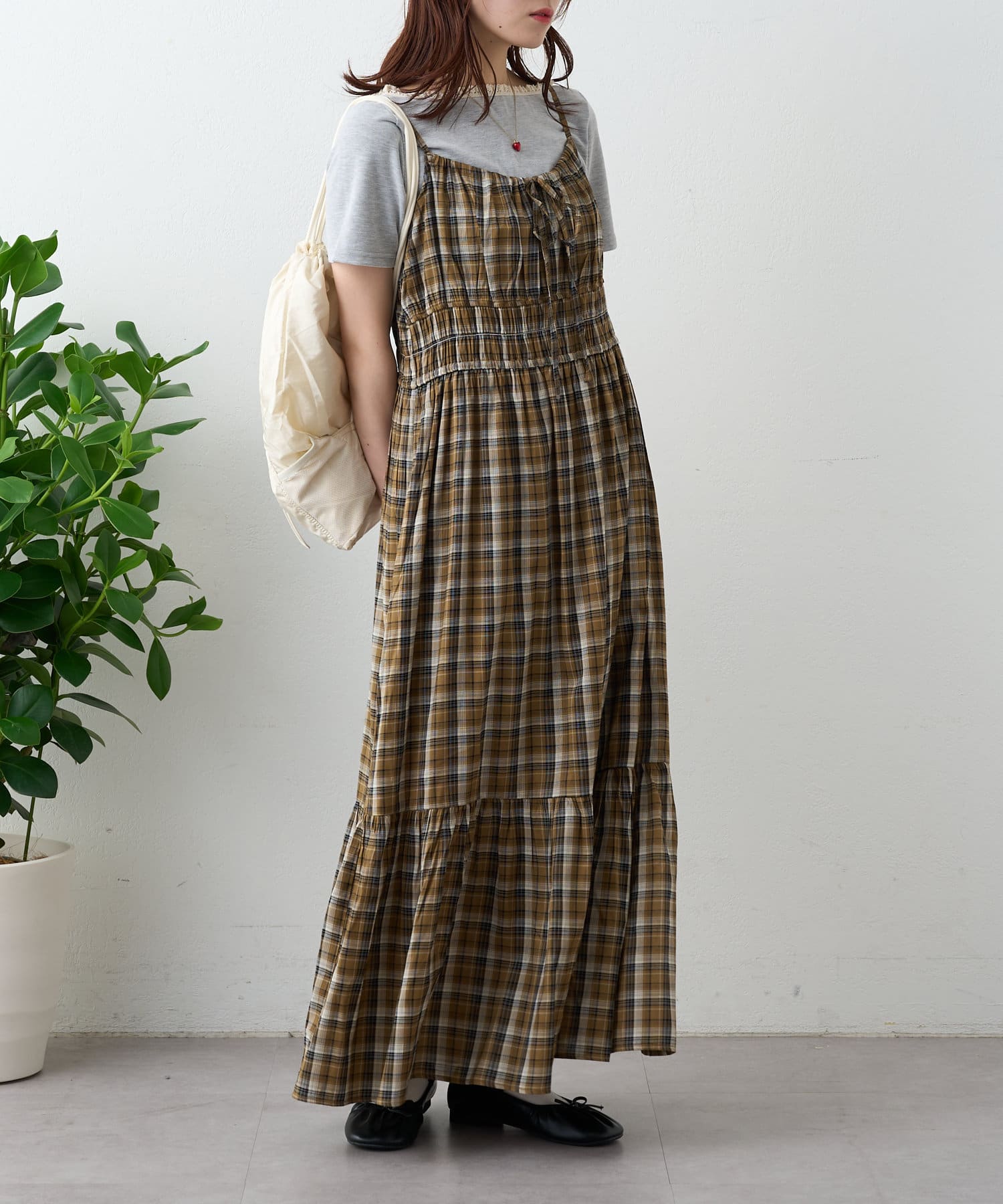 シアーチェックティアードキャミワンピース