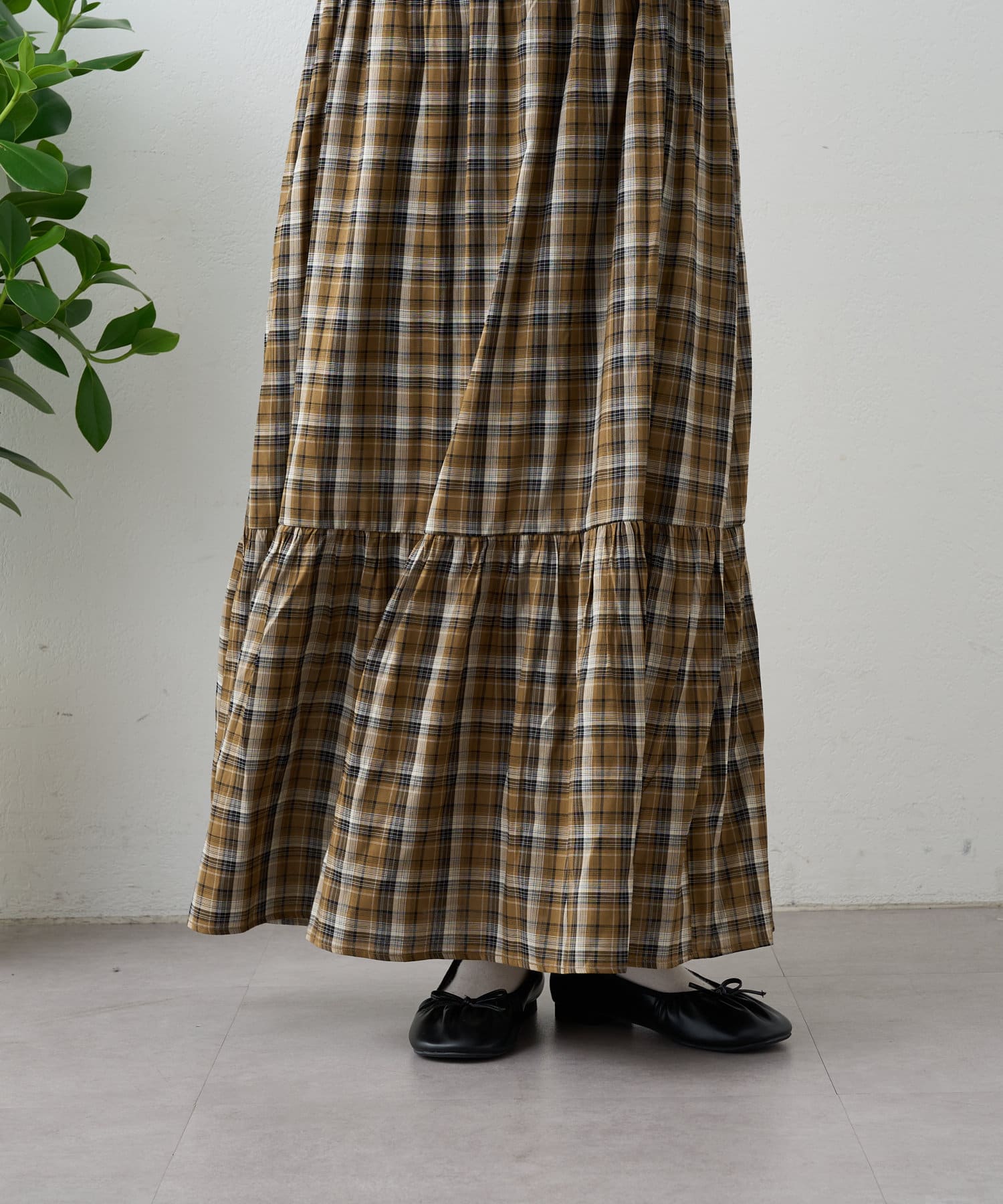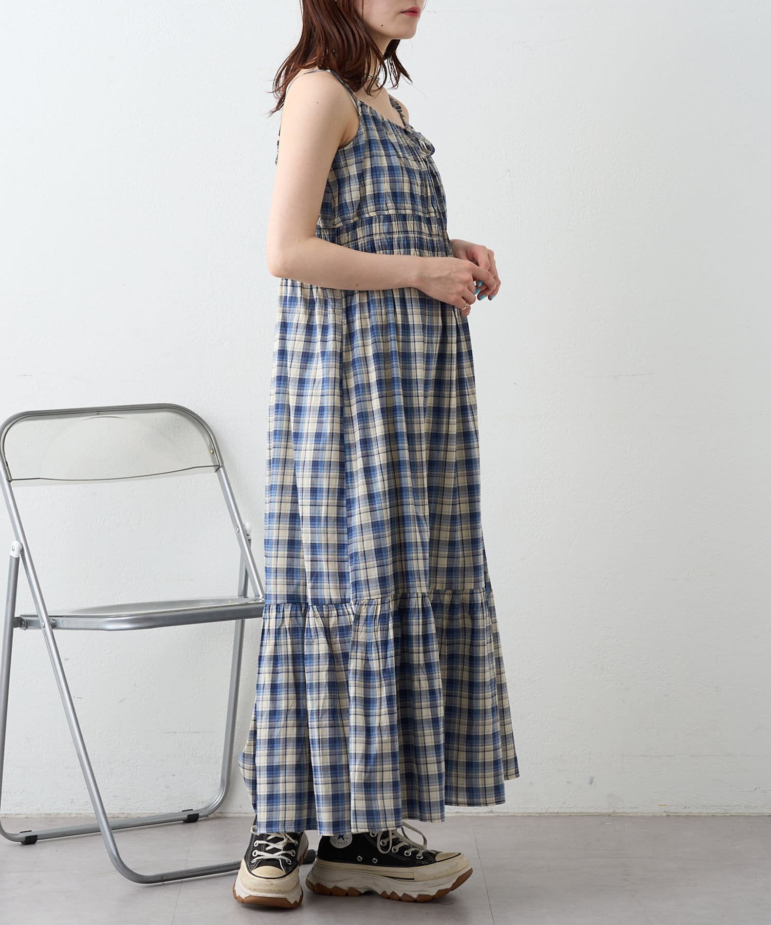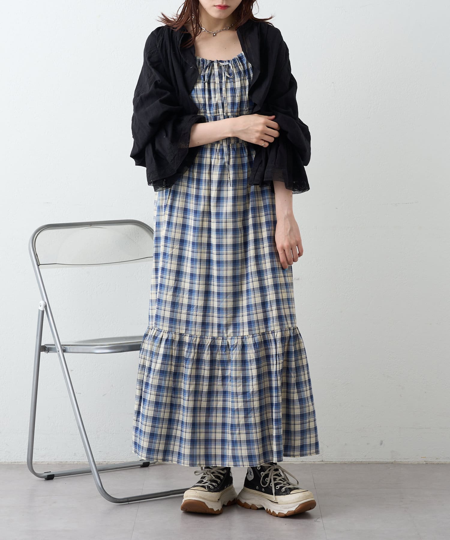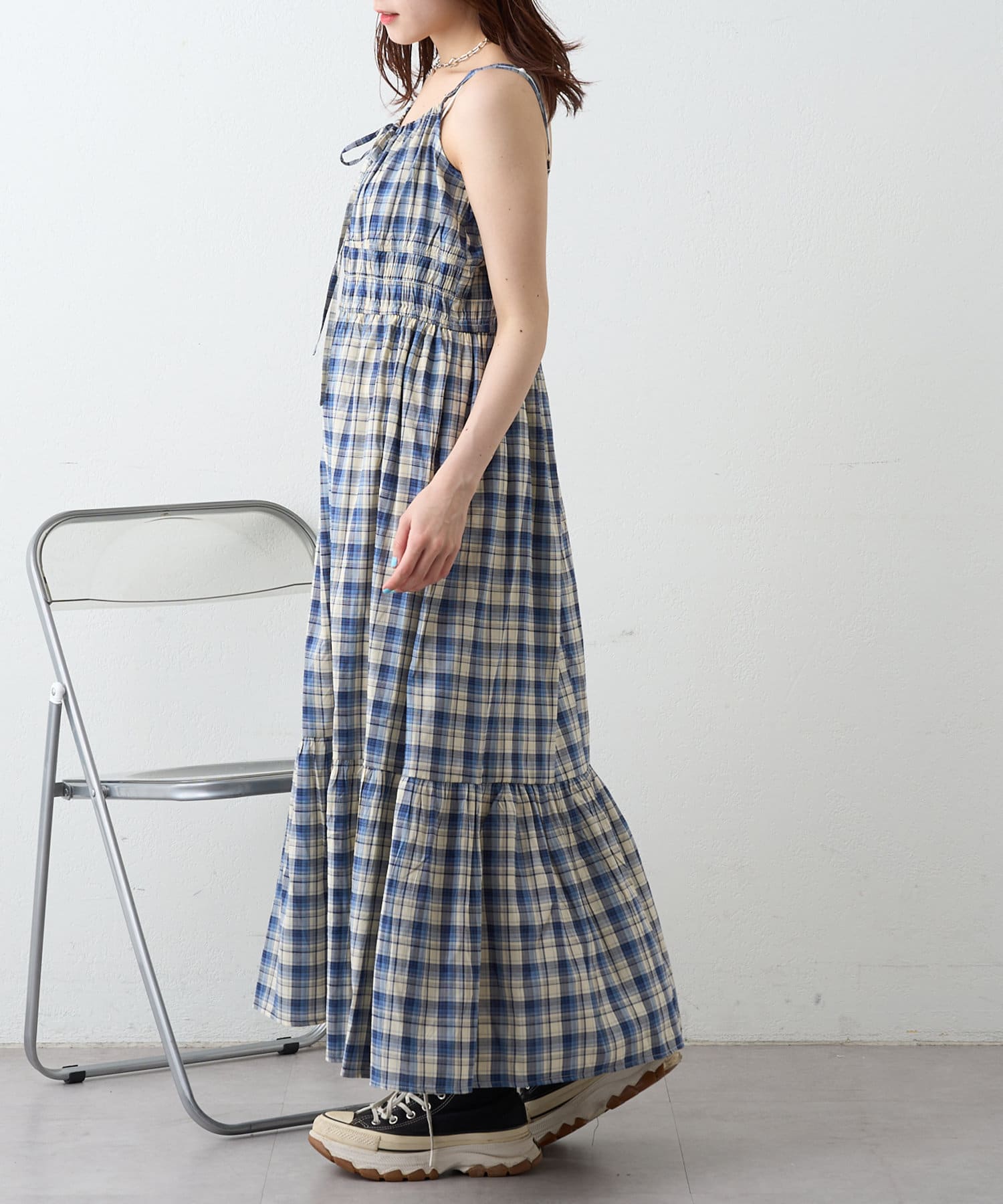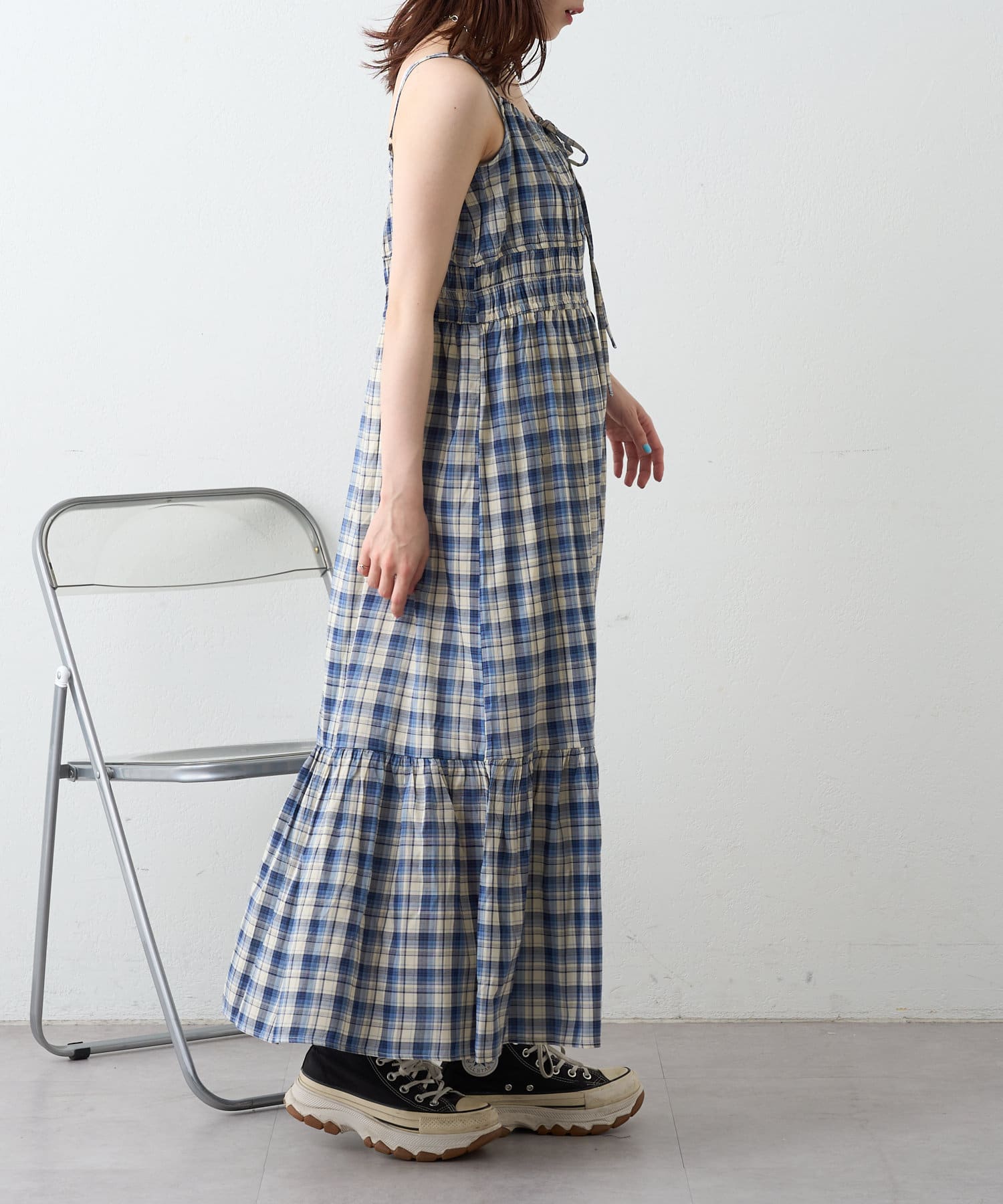 シアーチェックティアードキャミワンピース