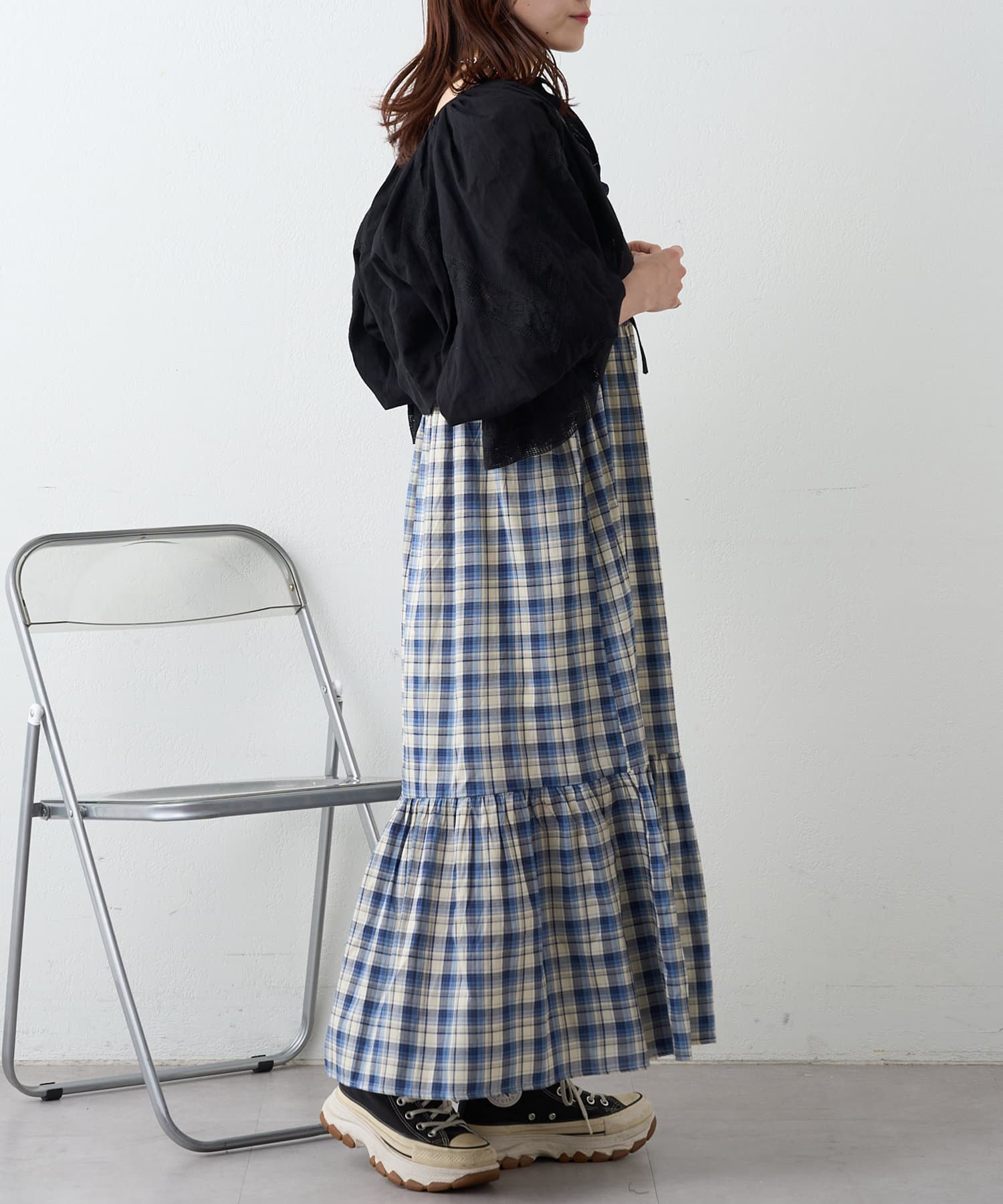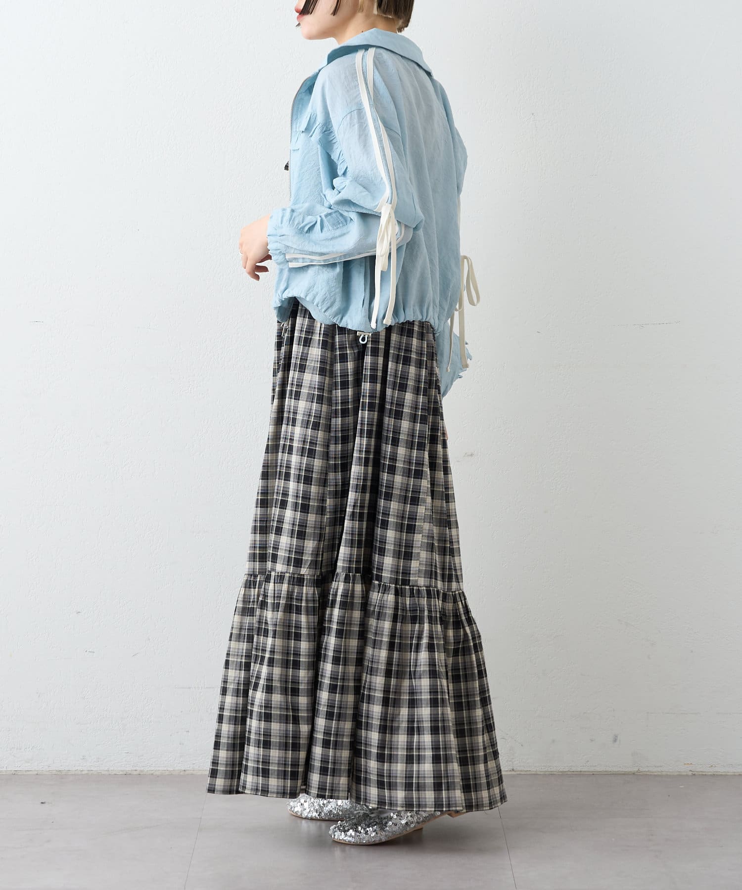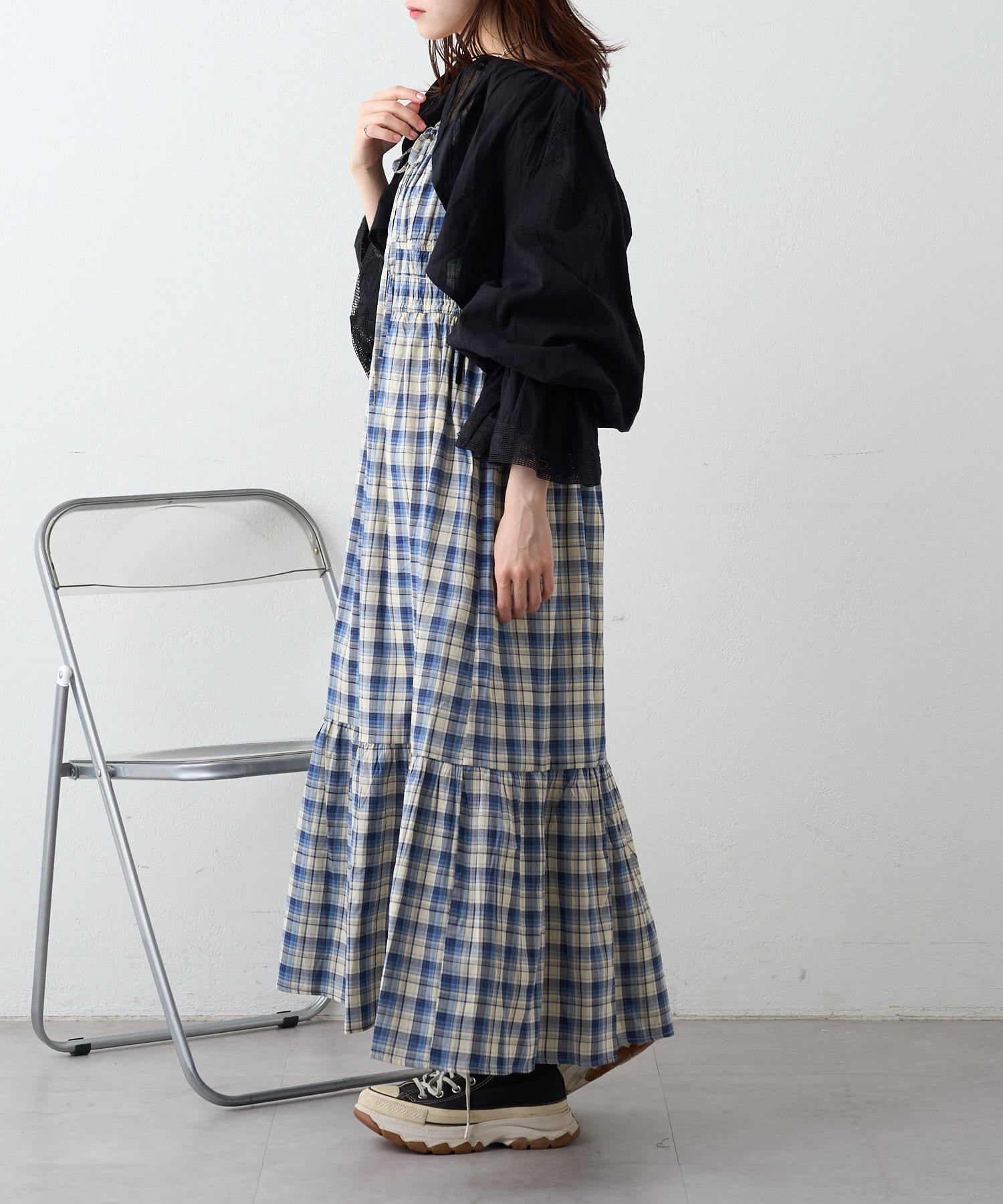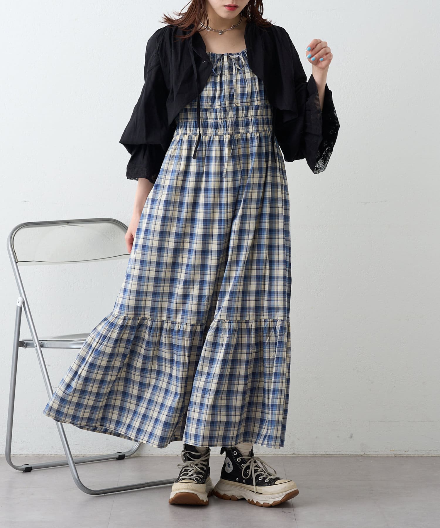 シアーチェックティアードキャミワンピース