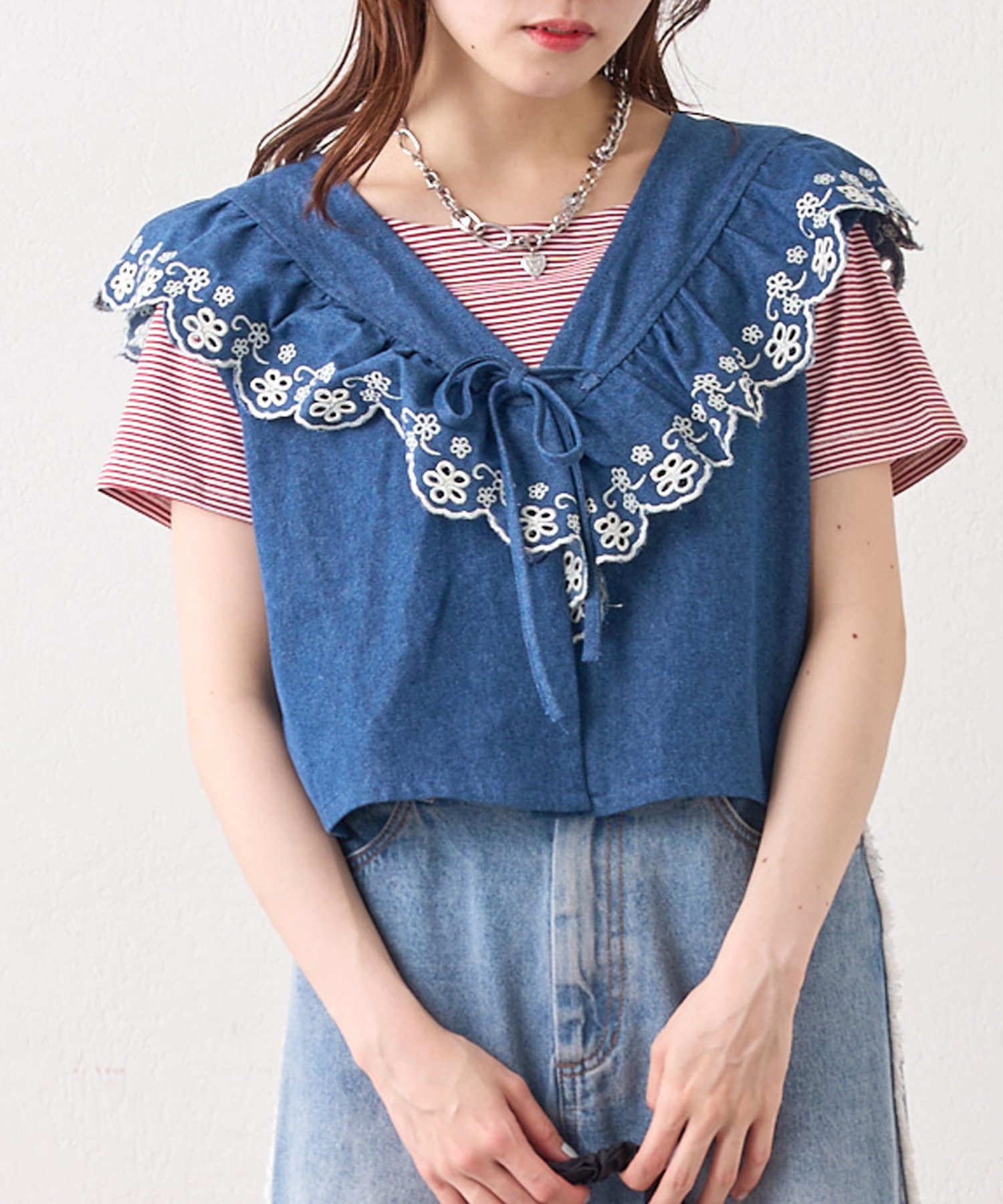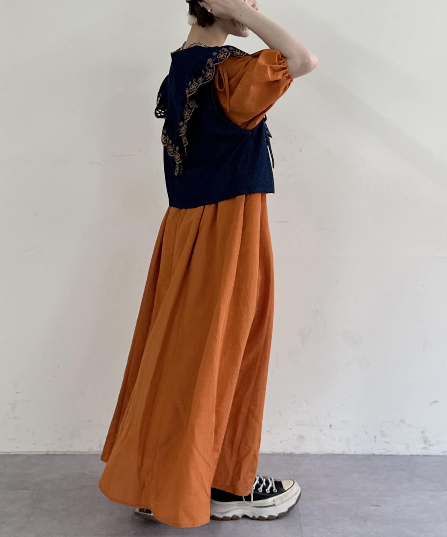・ベストのインナーをお持ちのTシャツやブラウスと合わせていろいろなコーデが楽しめます!