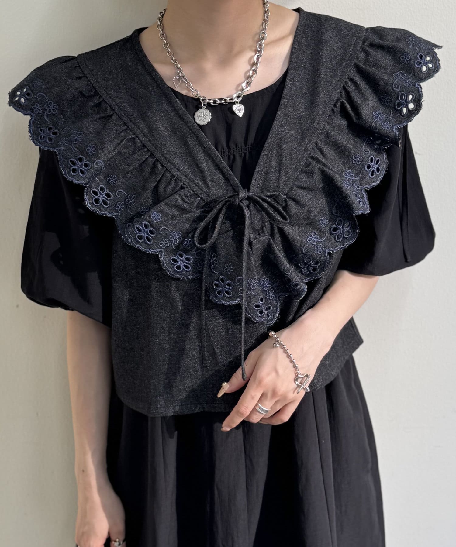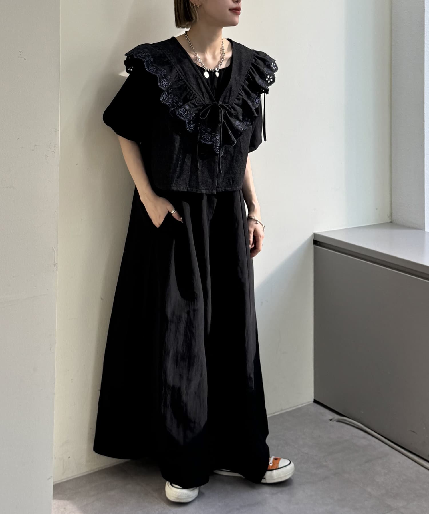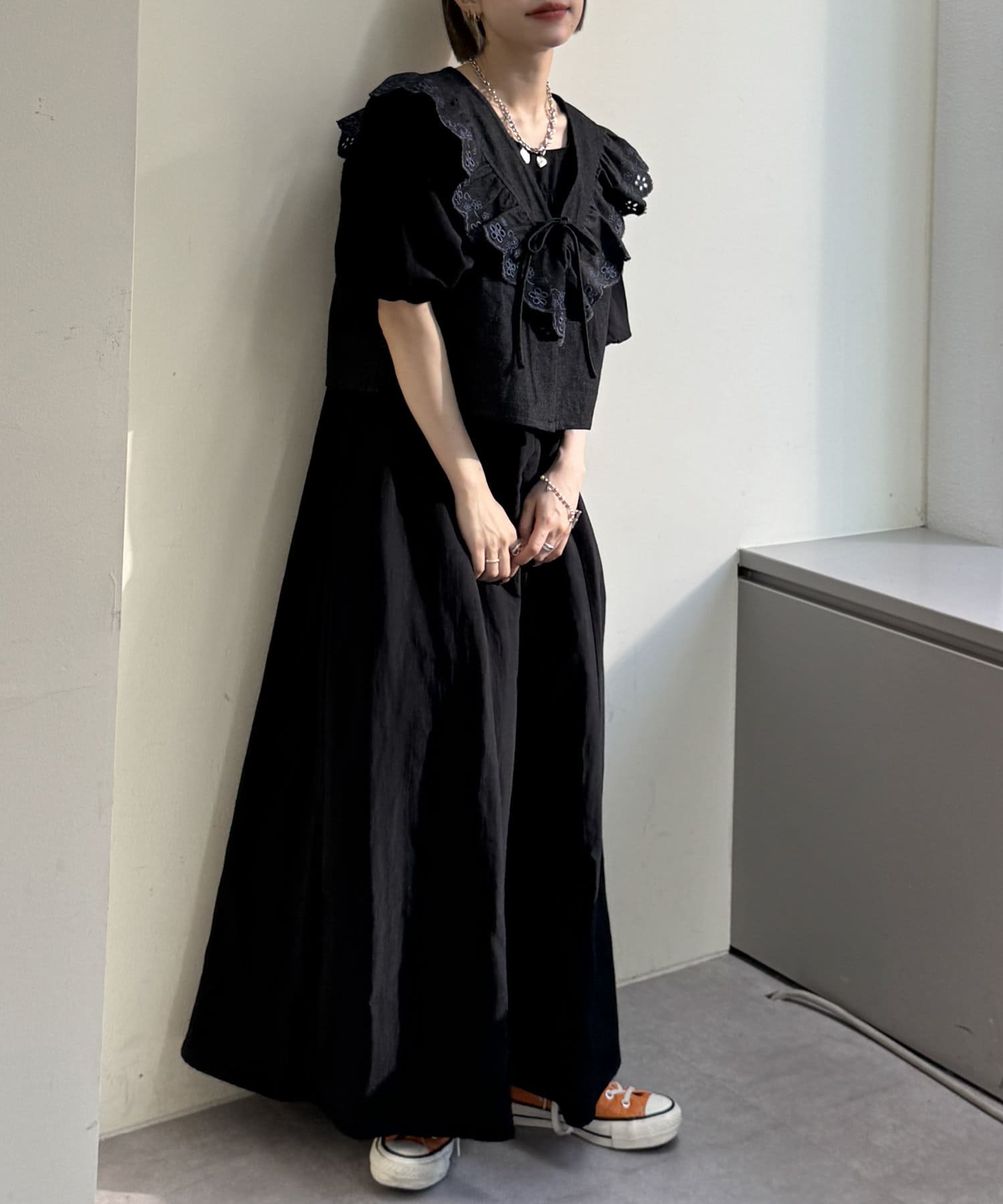 ・首元がスッキリしているのでネックレスやアクセサリーが映えます♡