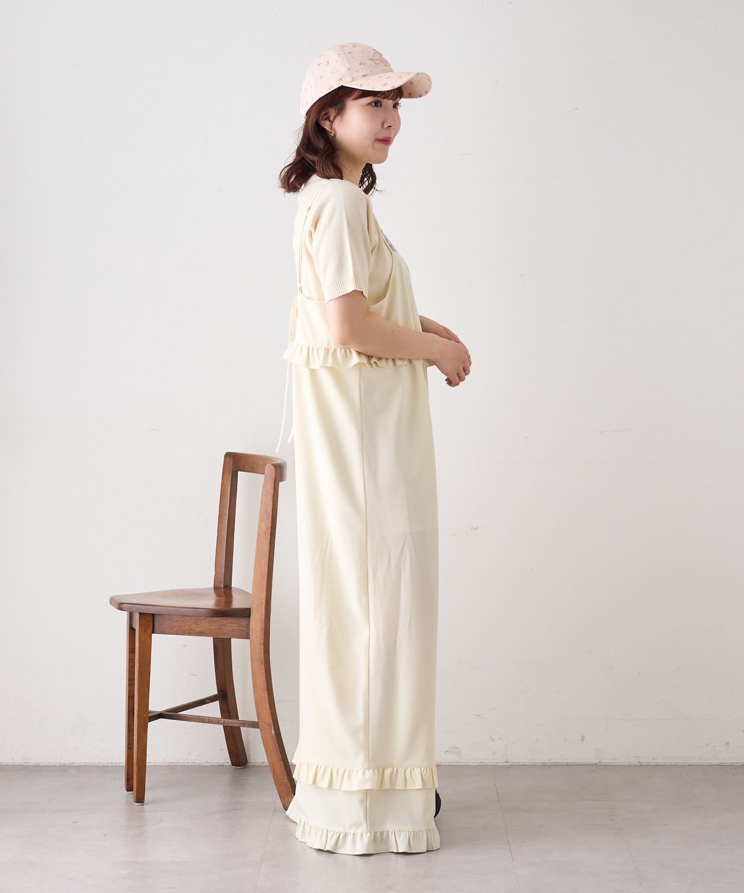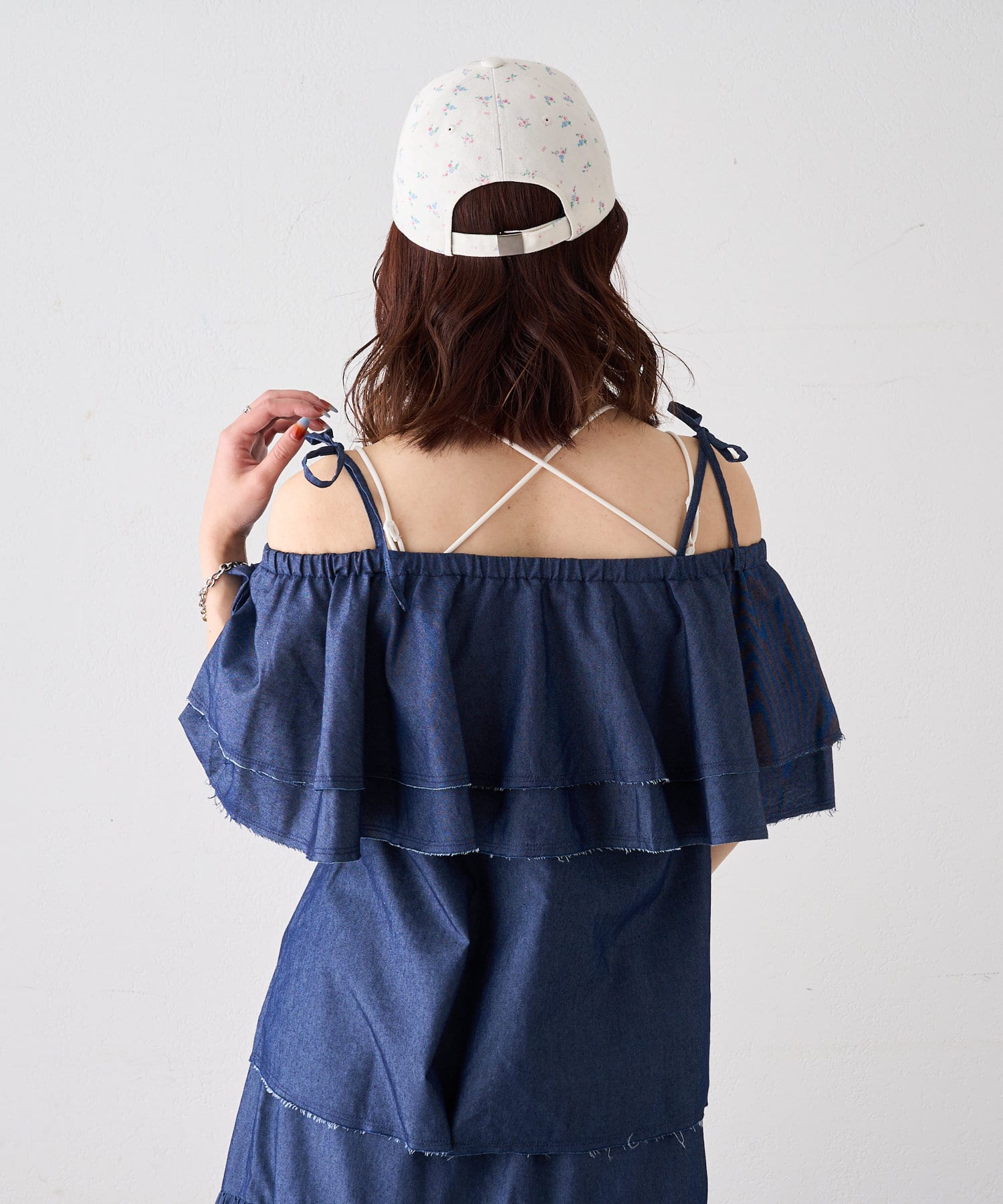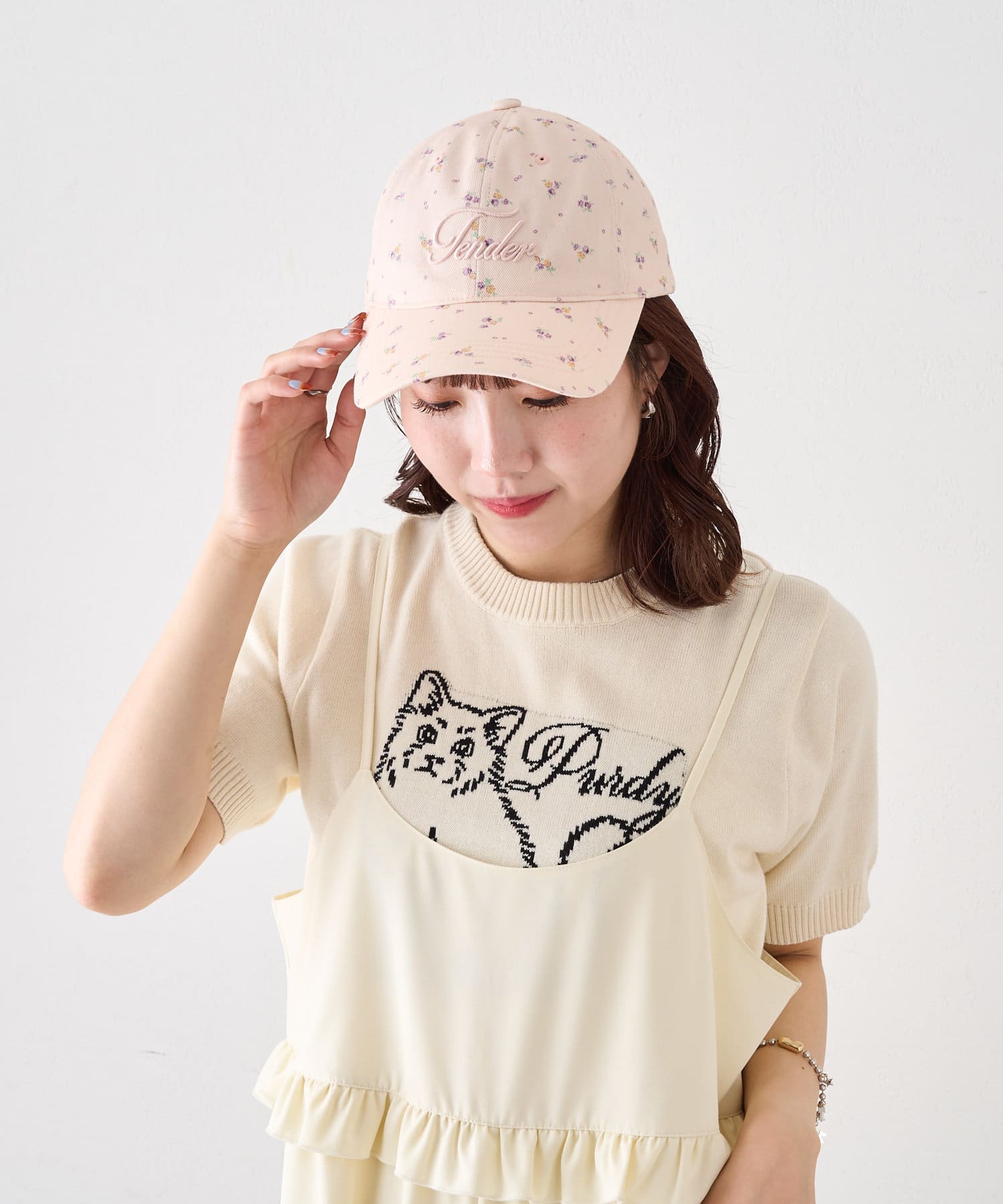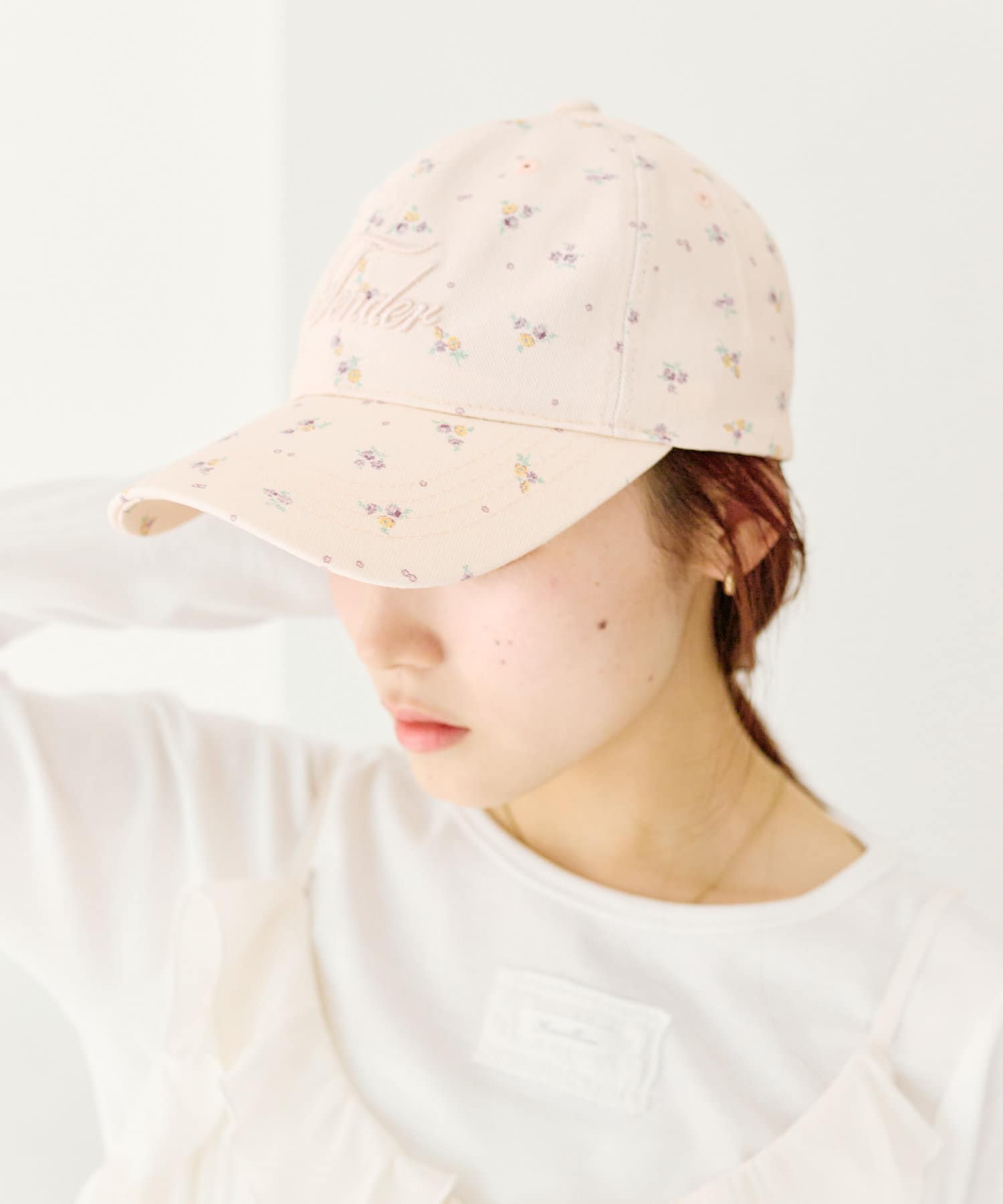 小花柄が目を惹くキュートなフラワーキャップ