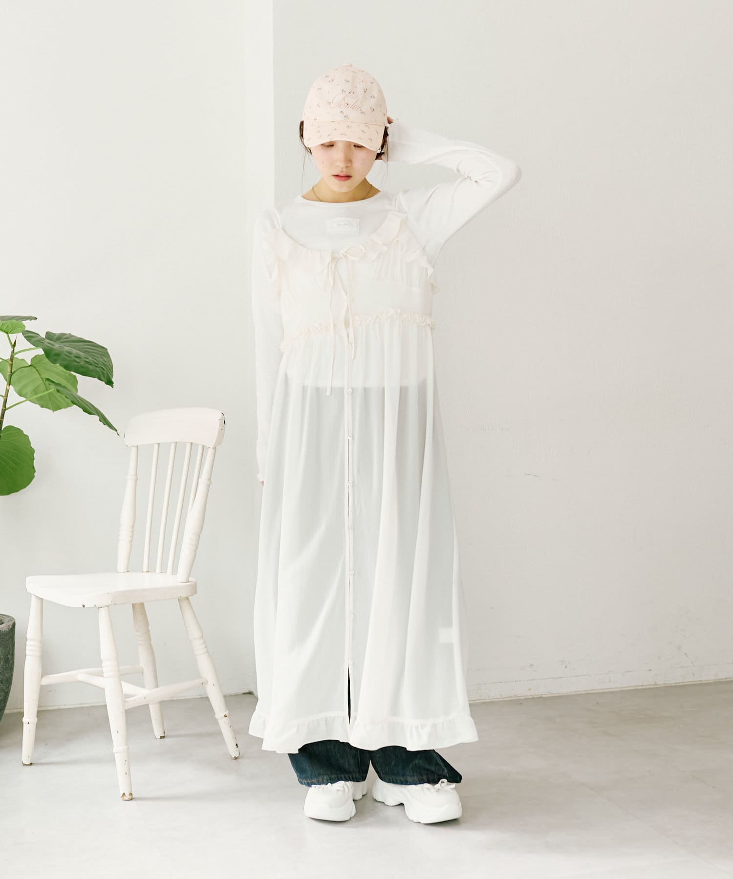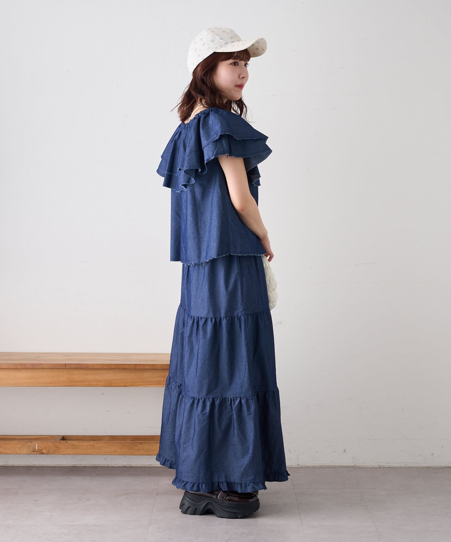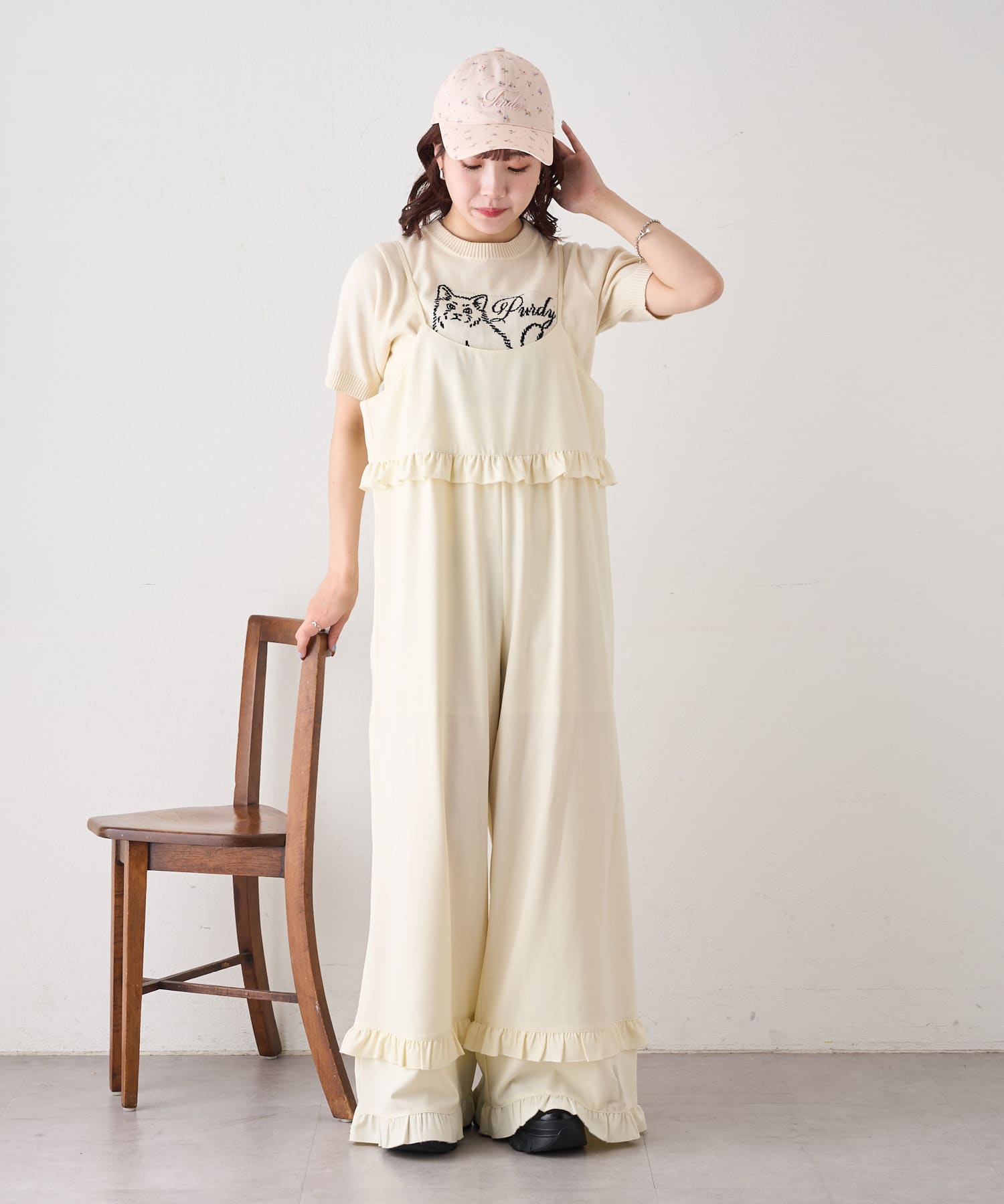 ・小花柄×英字刺繍がお出かけスタイルぴったり