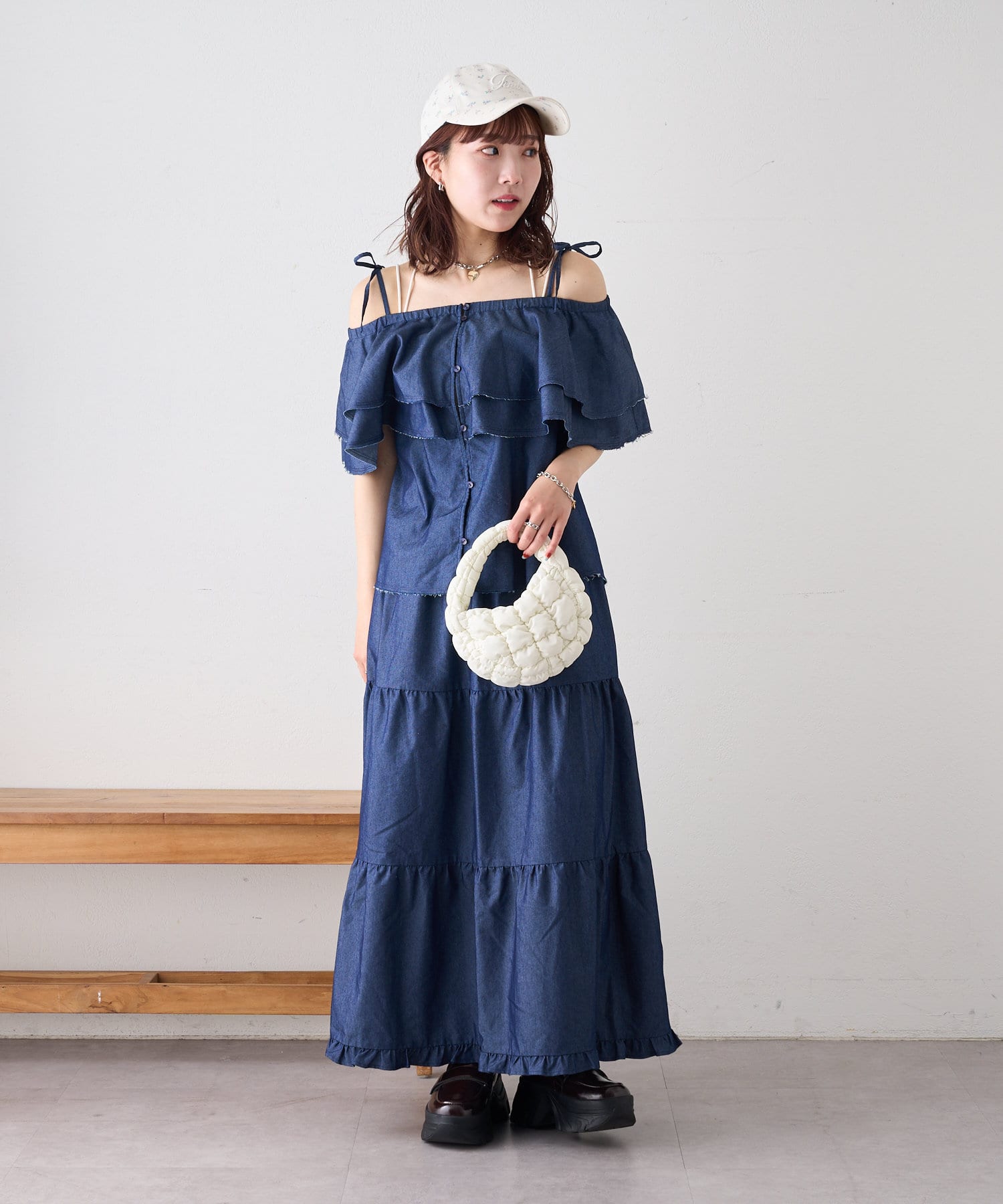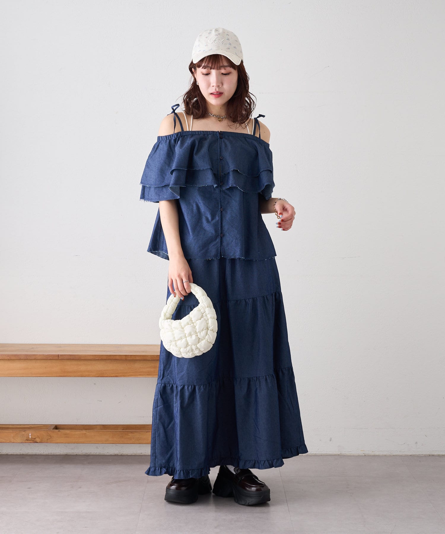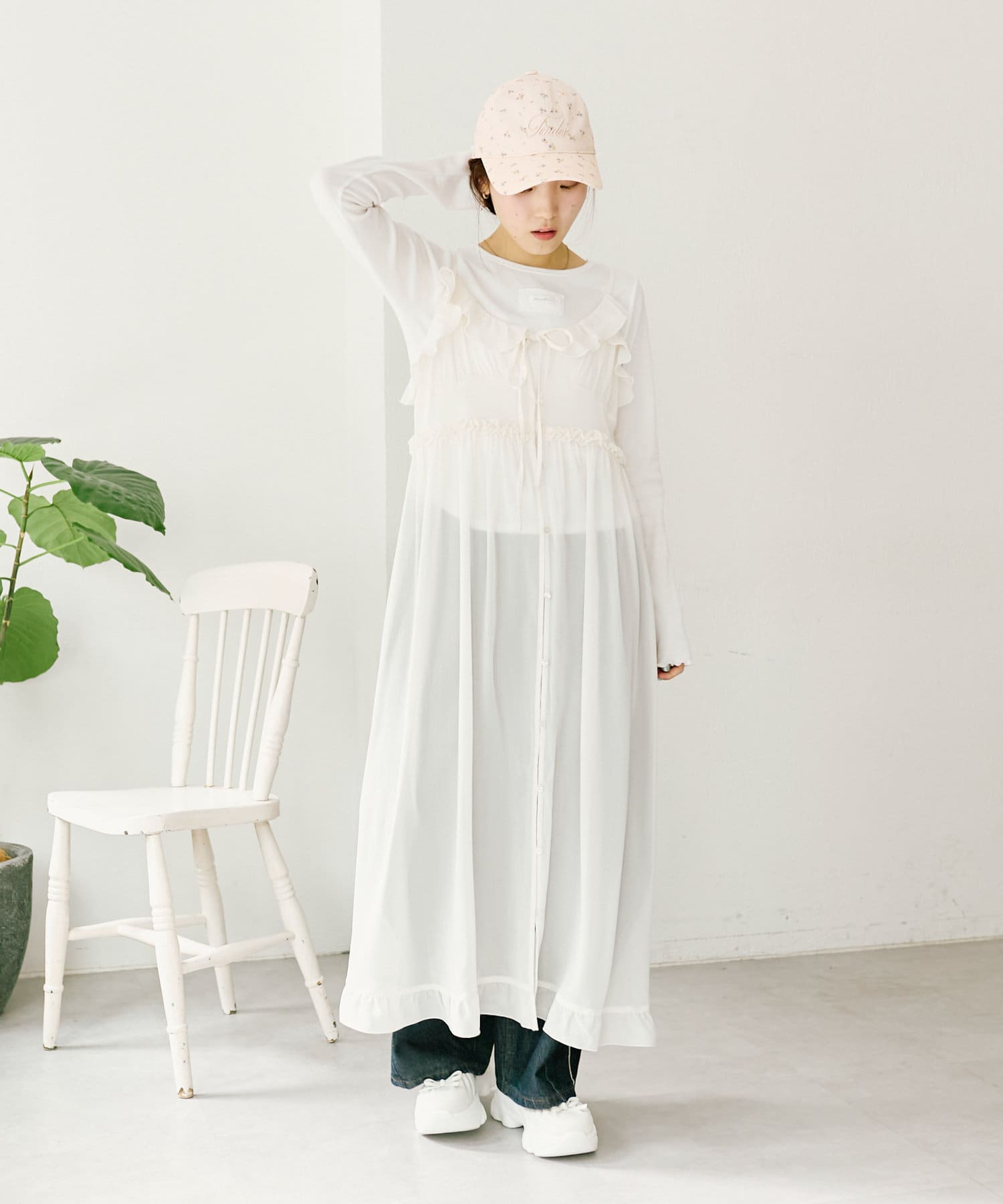 ・小花柄×英字刺繍がお出かけスタイルぴったり