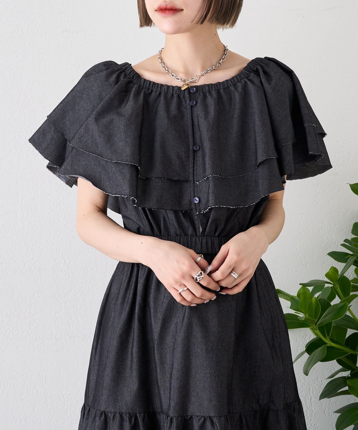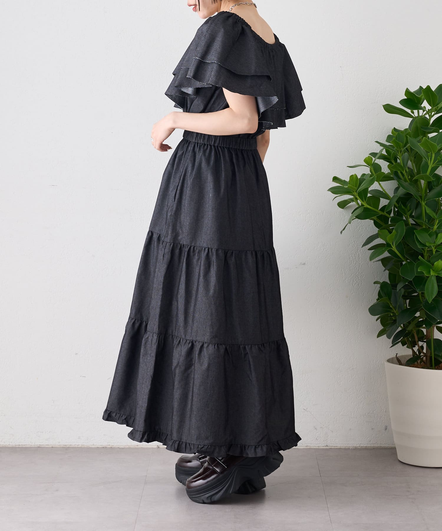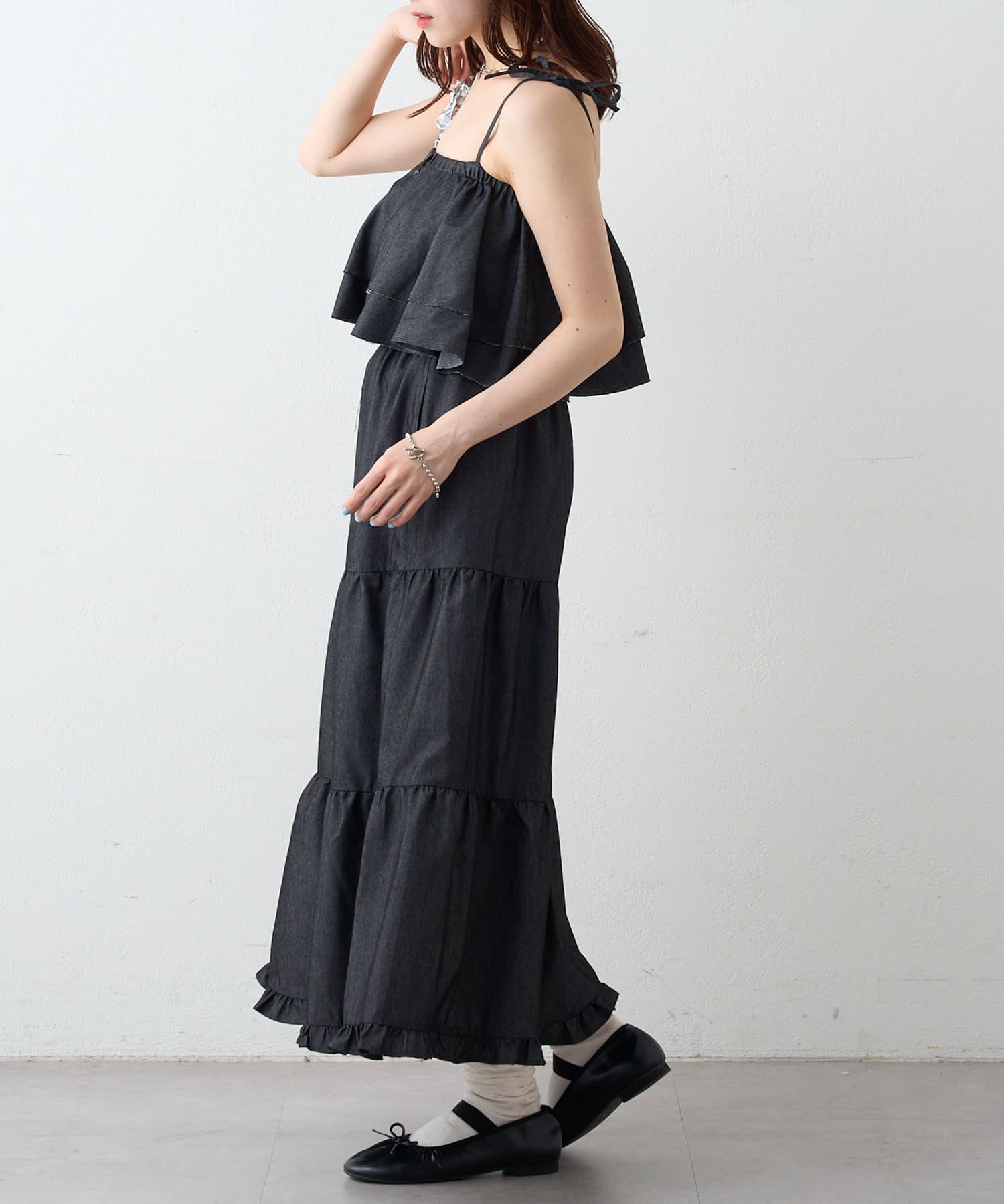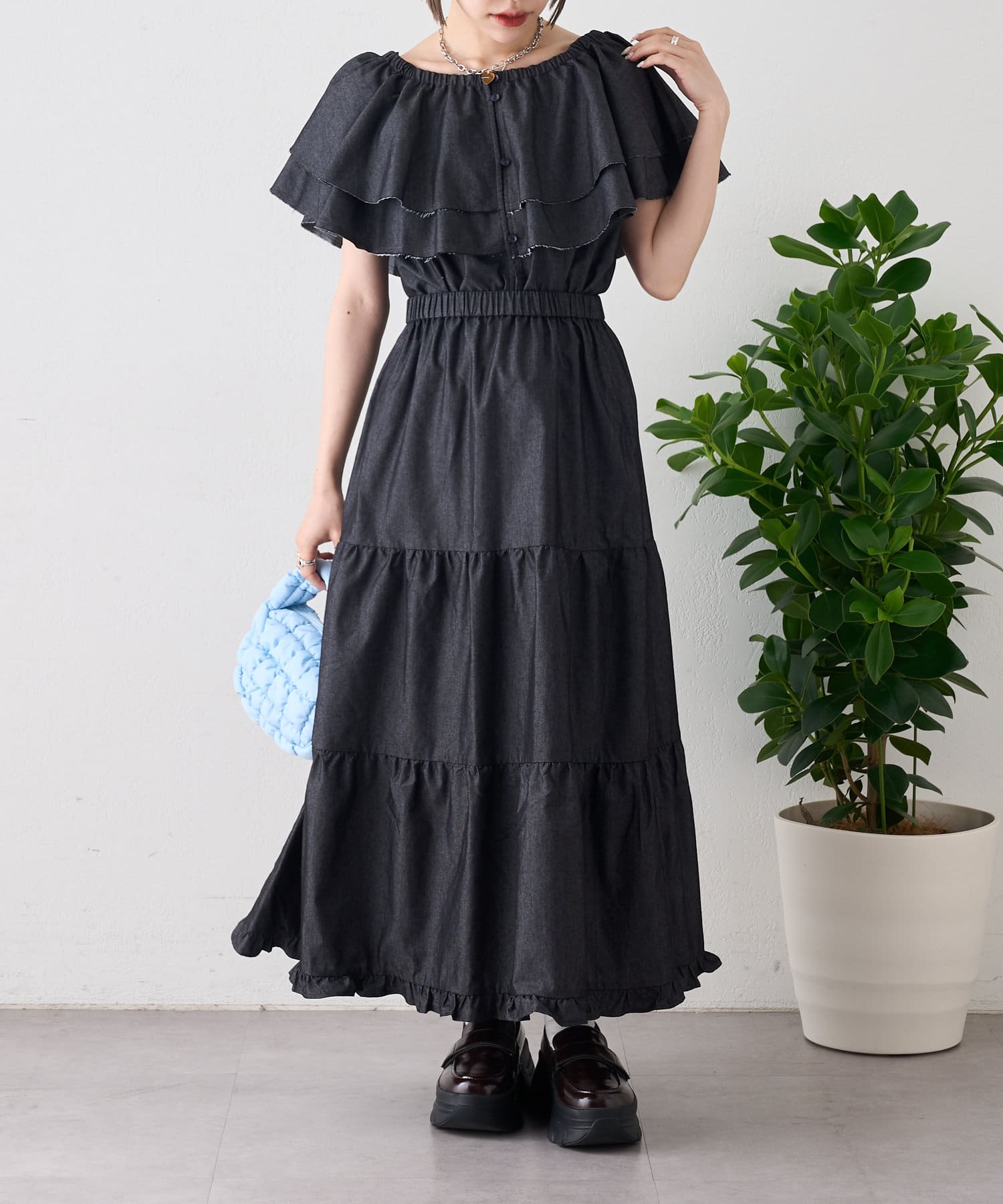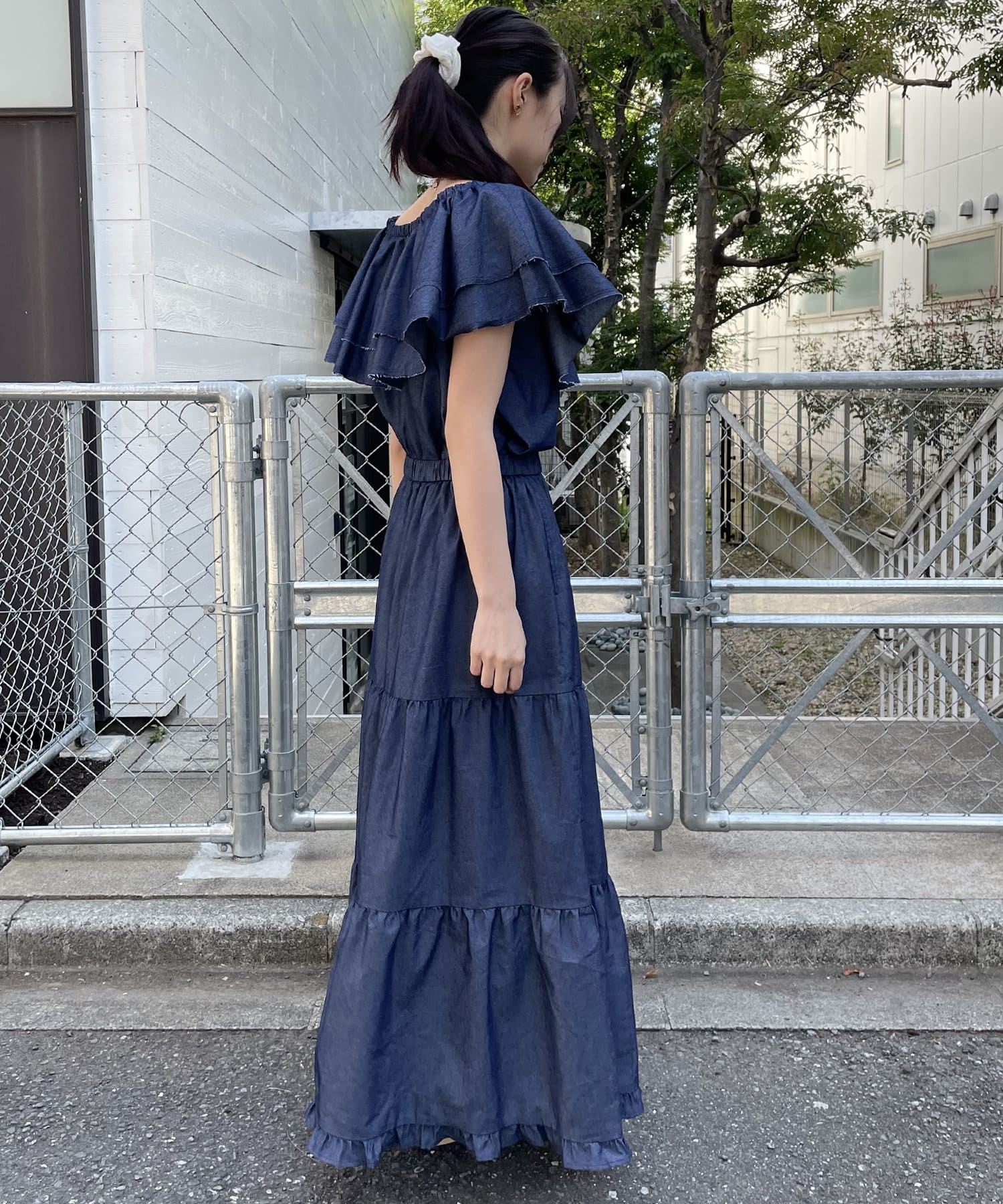 ・トップスのフリルデザインは二の腕をカバーできて細見え効果も◎