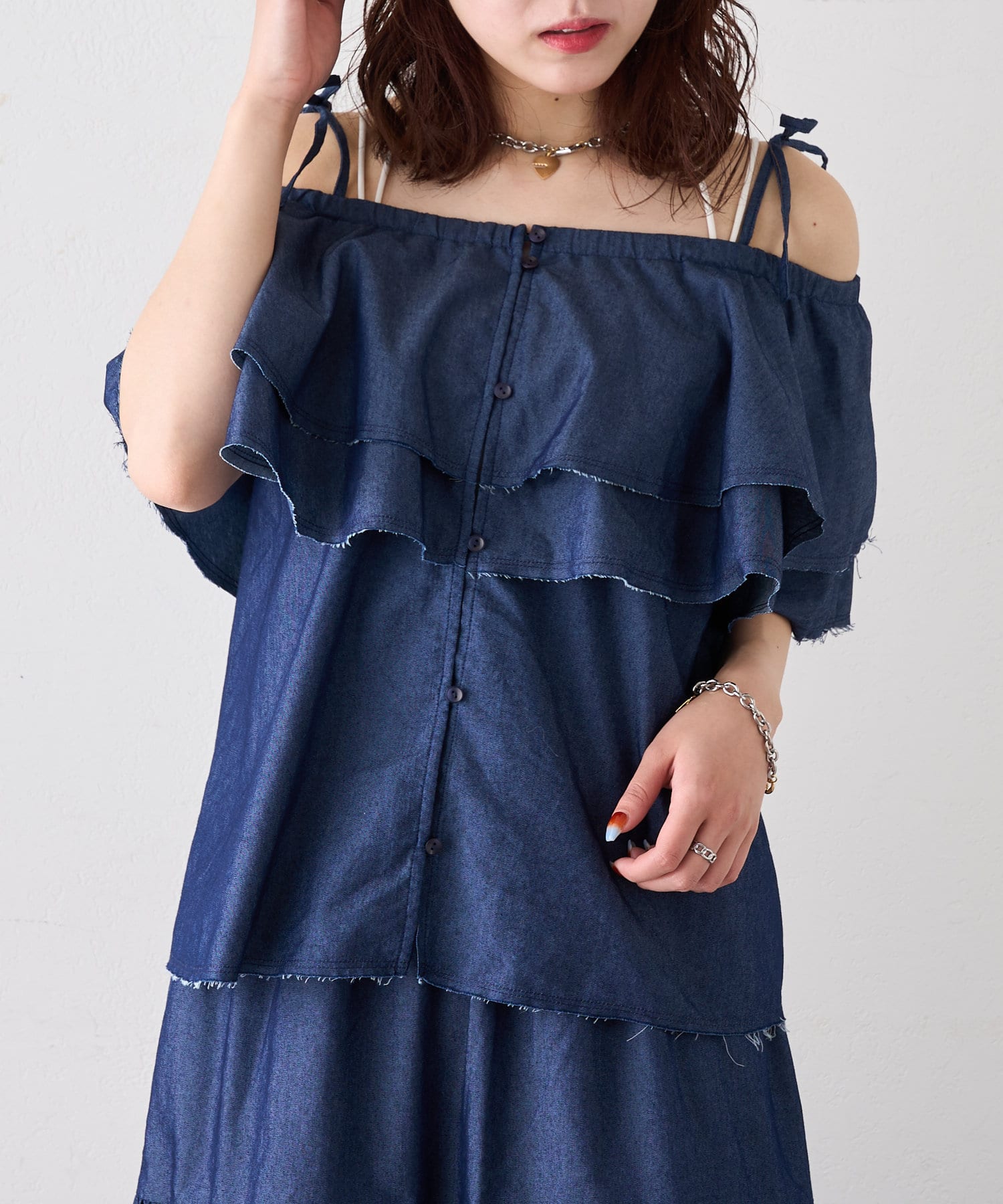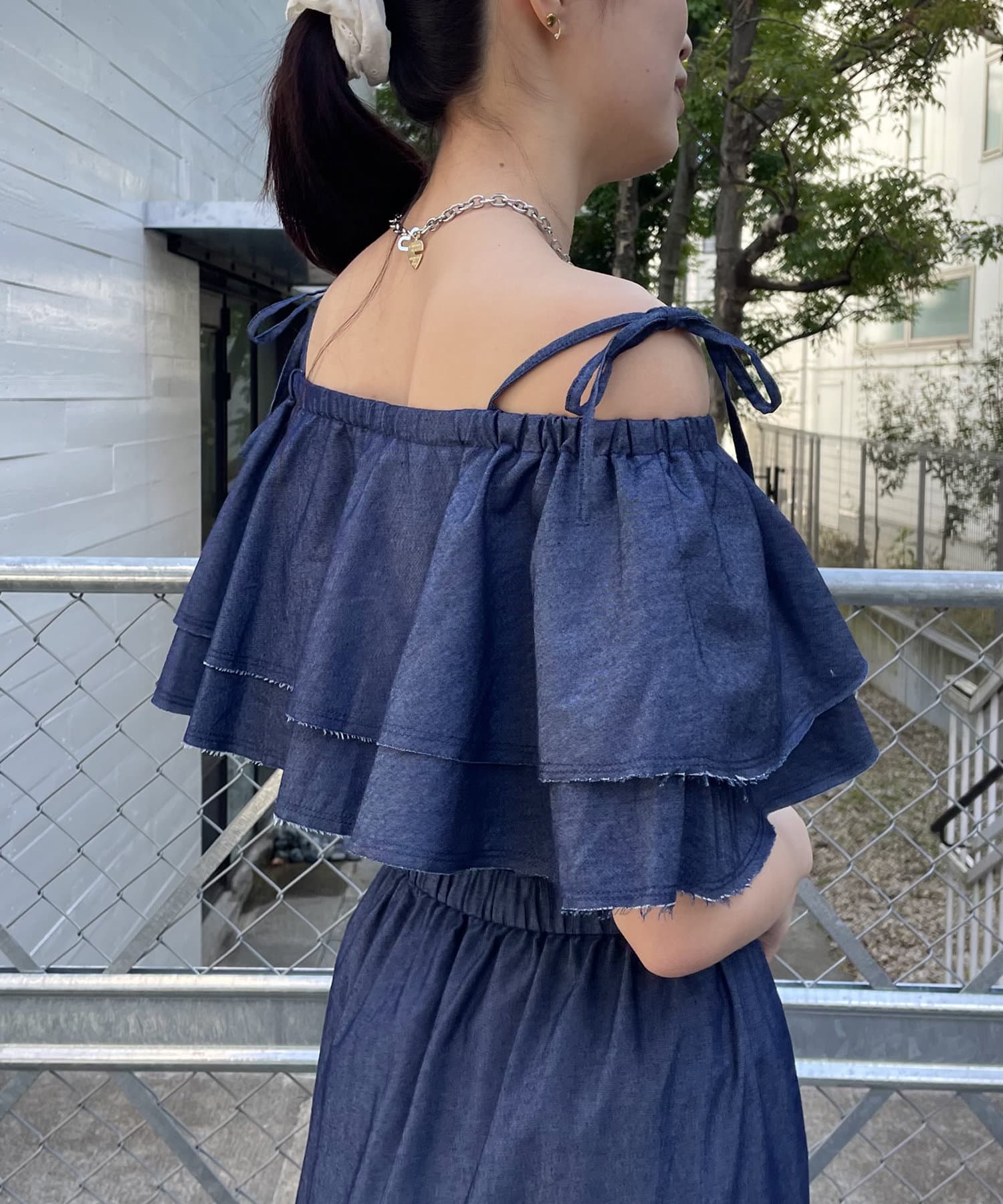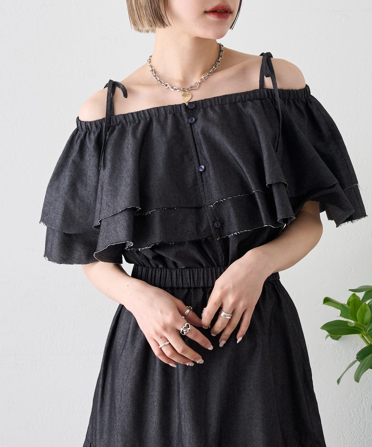 ・トップスはオフショルダーとしても、キャミとしてもブラウスとしても使えるマルチWAY仕様