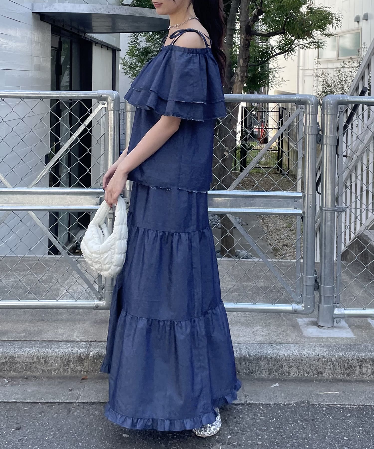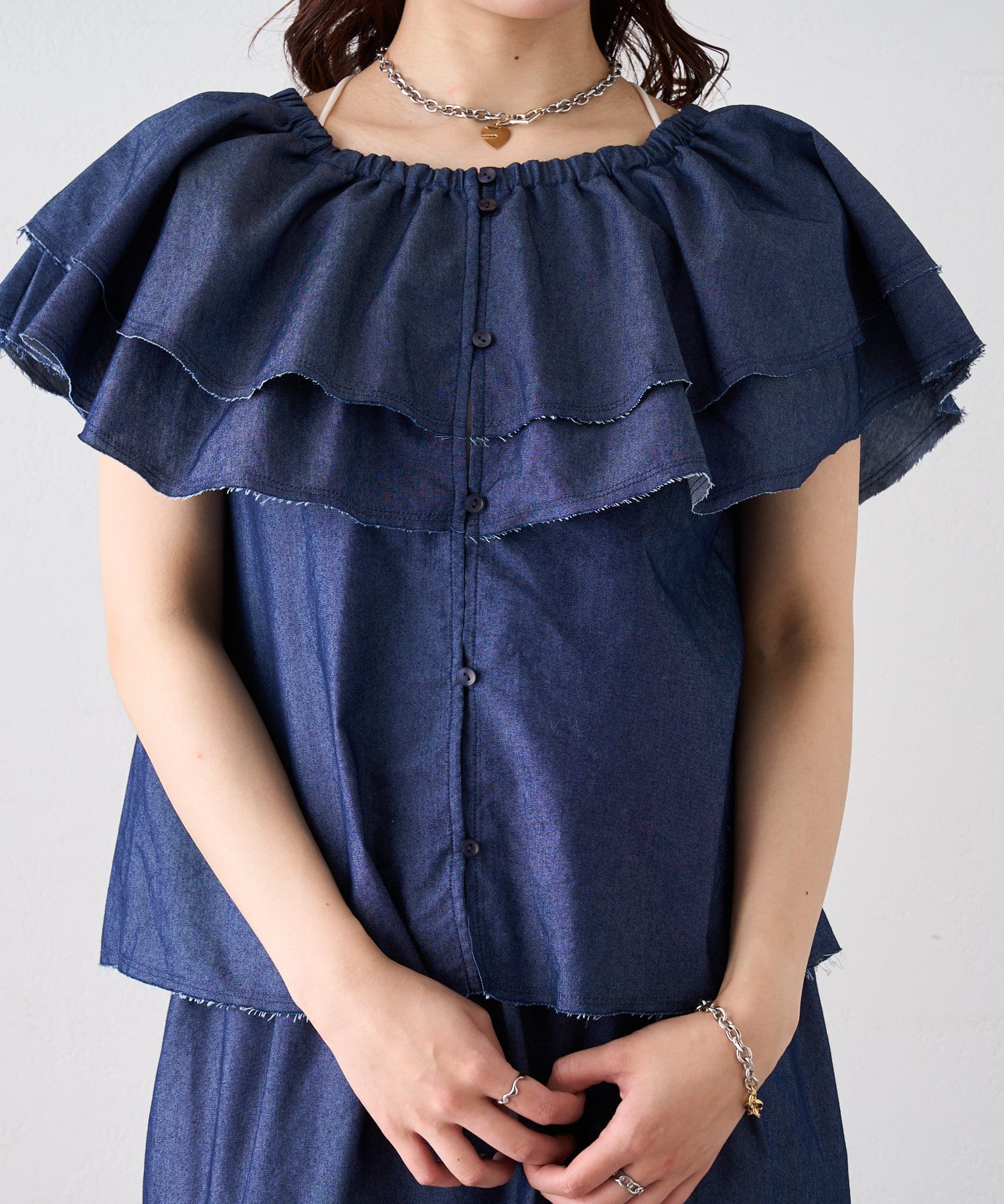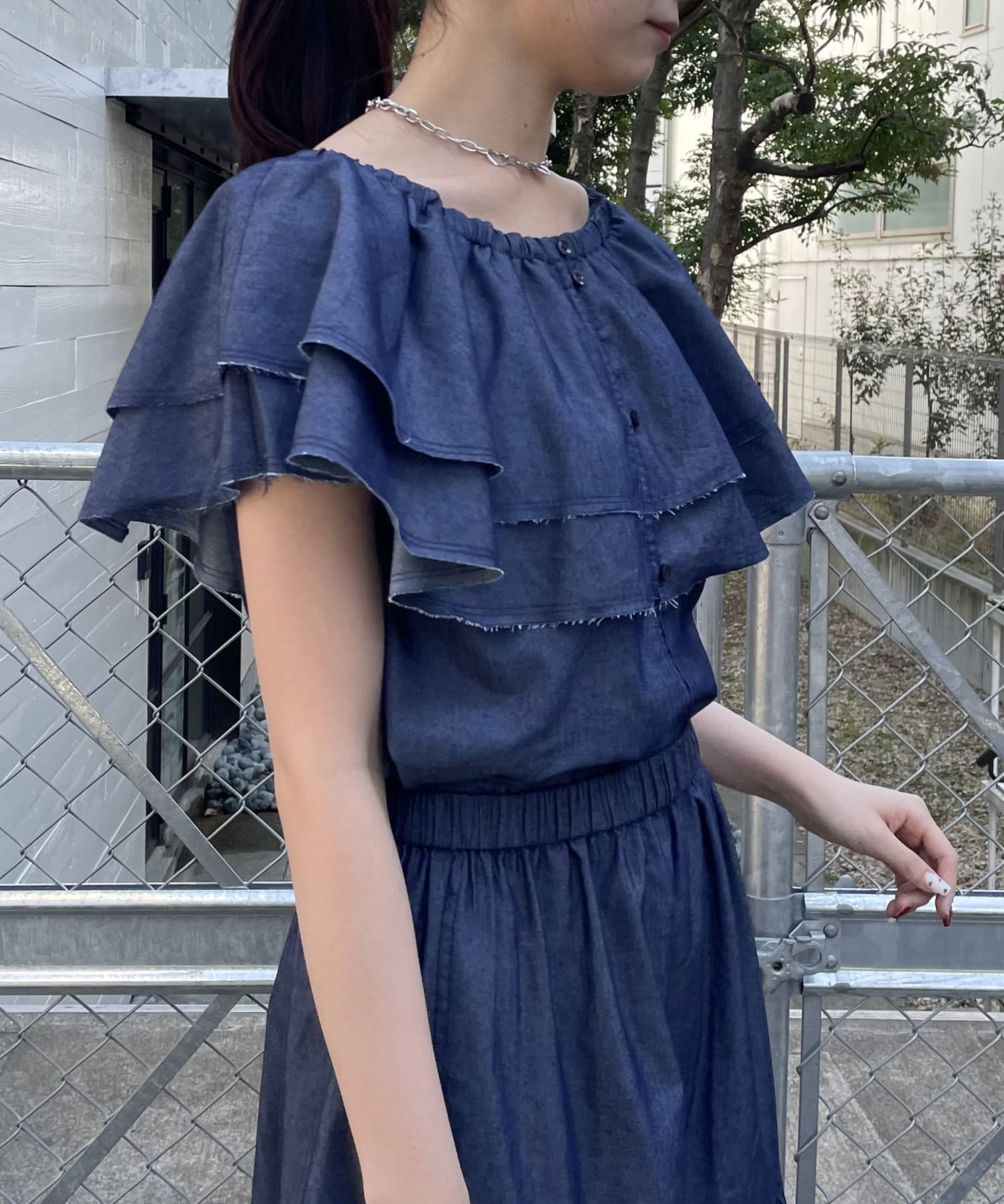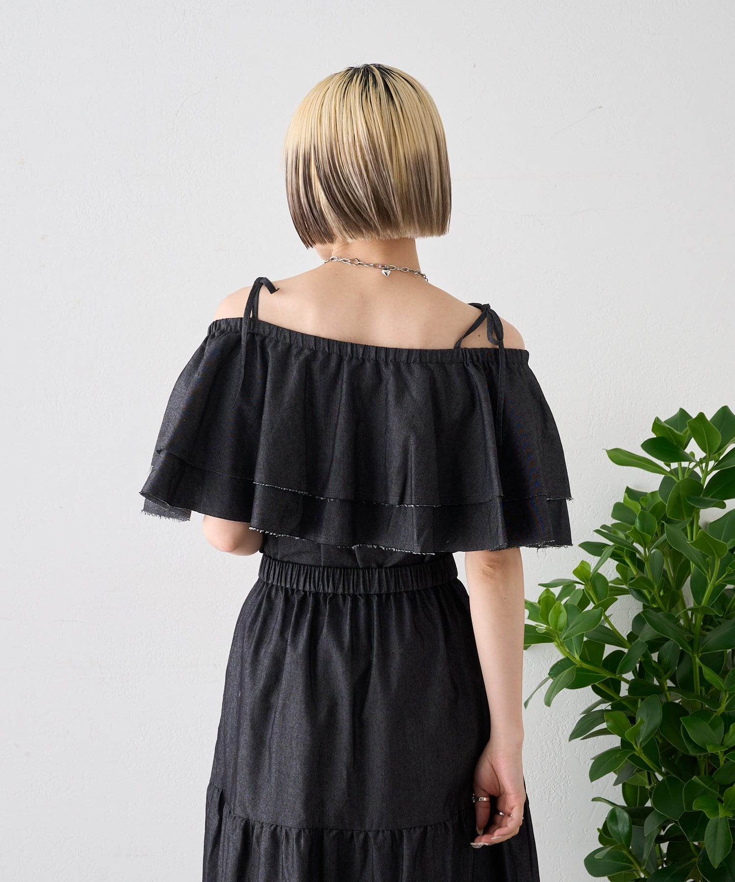 ・トップスはオフショルダーとしても、キャミとしてもブラウスとしても使えるマルチWAY仕様