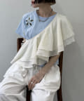 ・袖部分がシャーリングになっていて、二の腕のラインをカバーも可能です◎