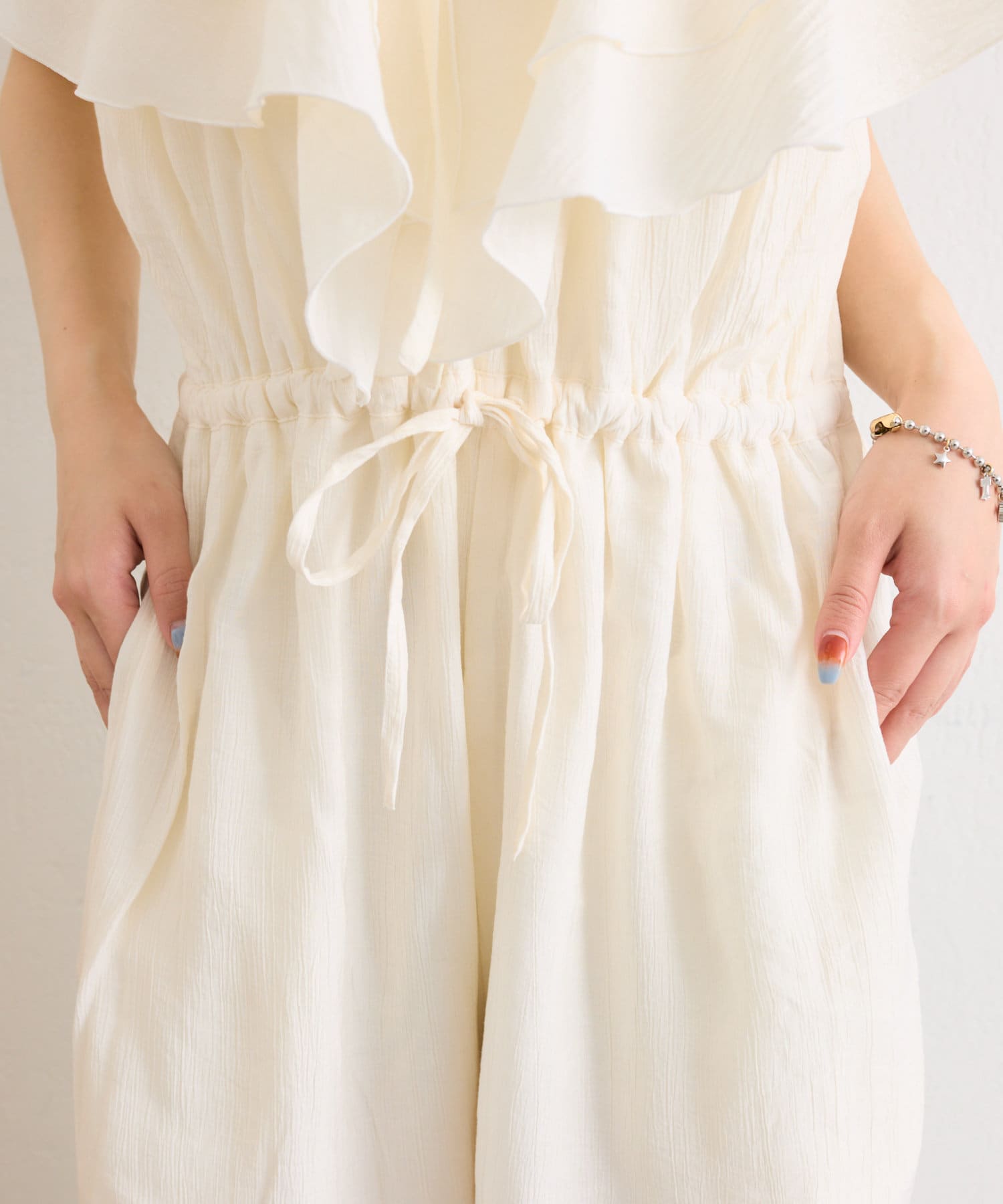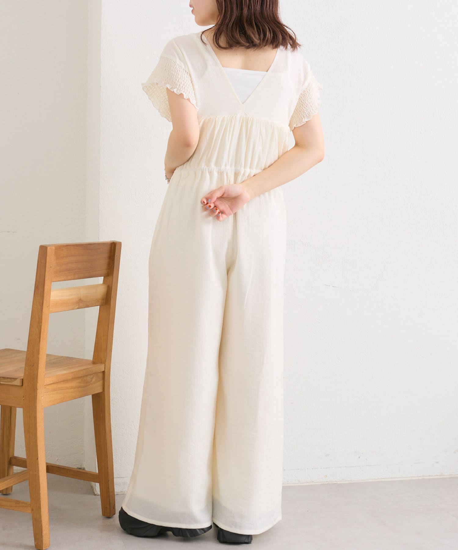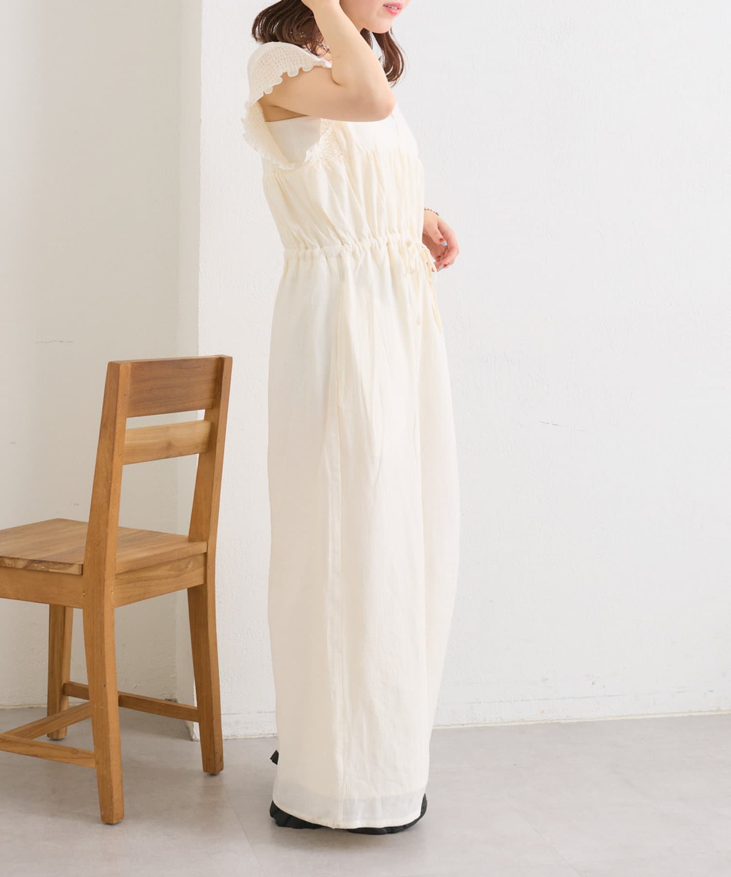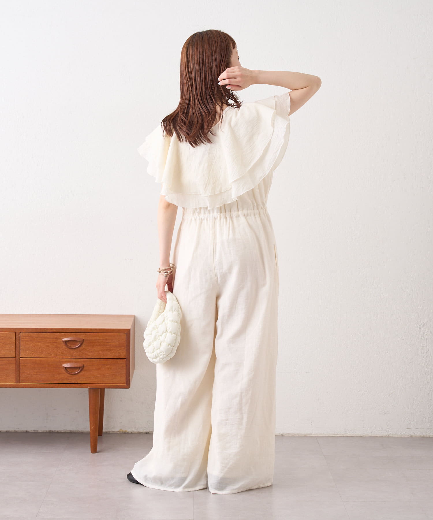 フリル襟が目を惹くオールインワン