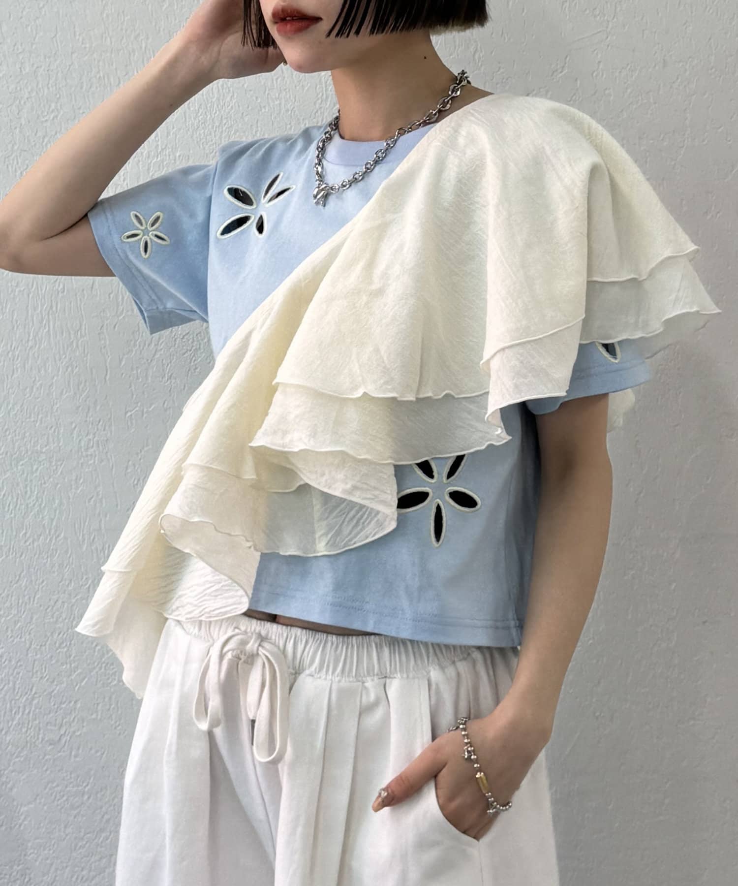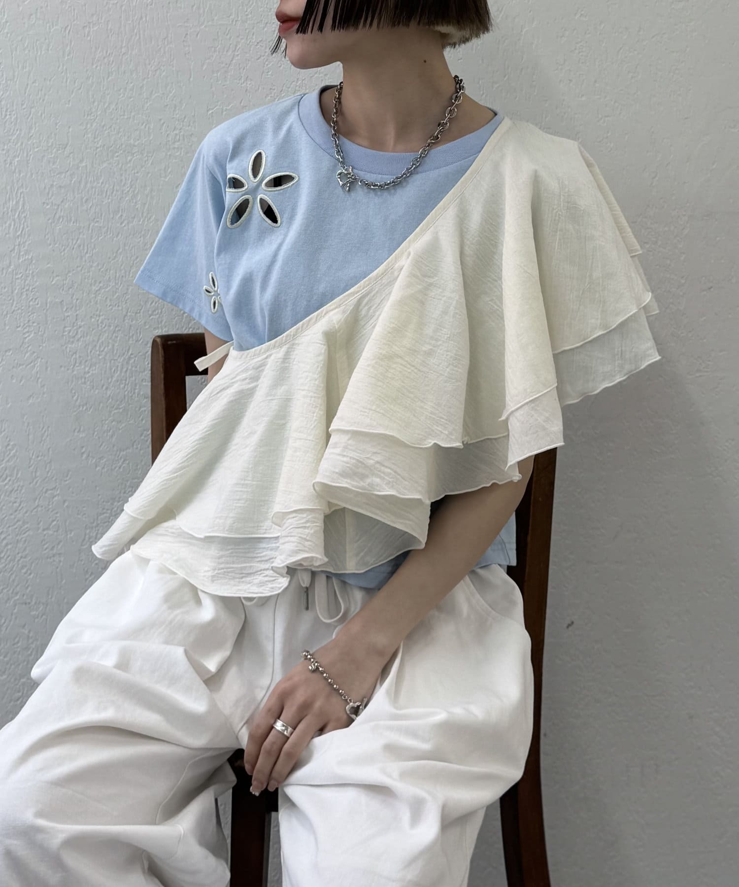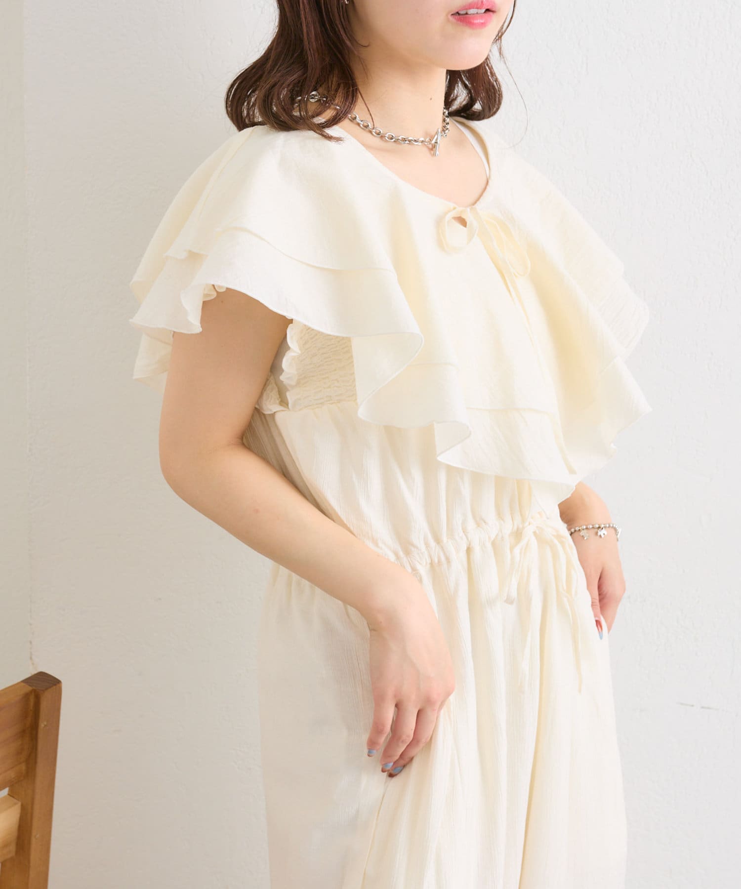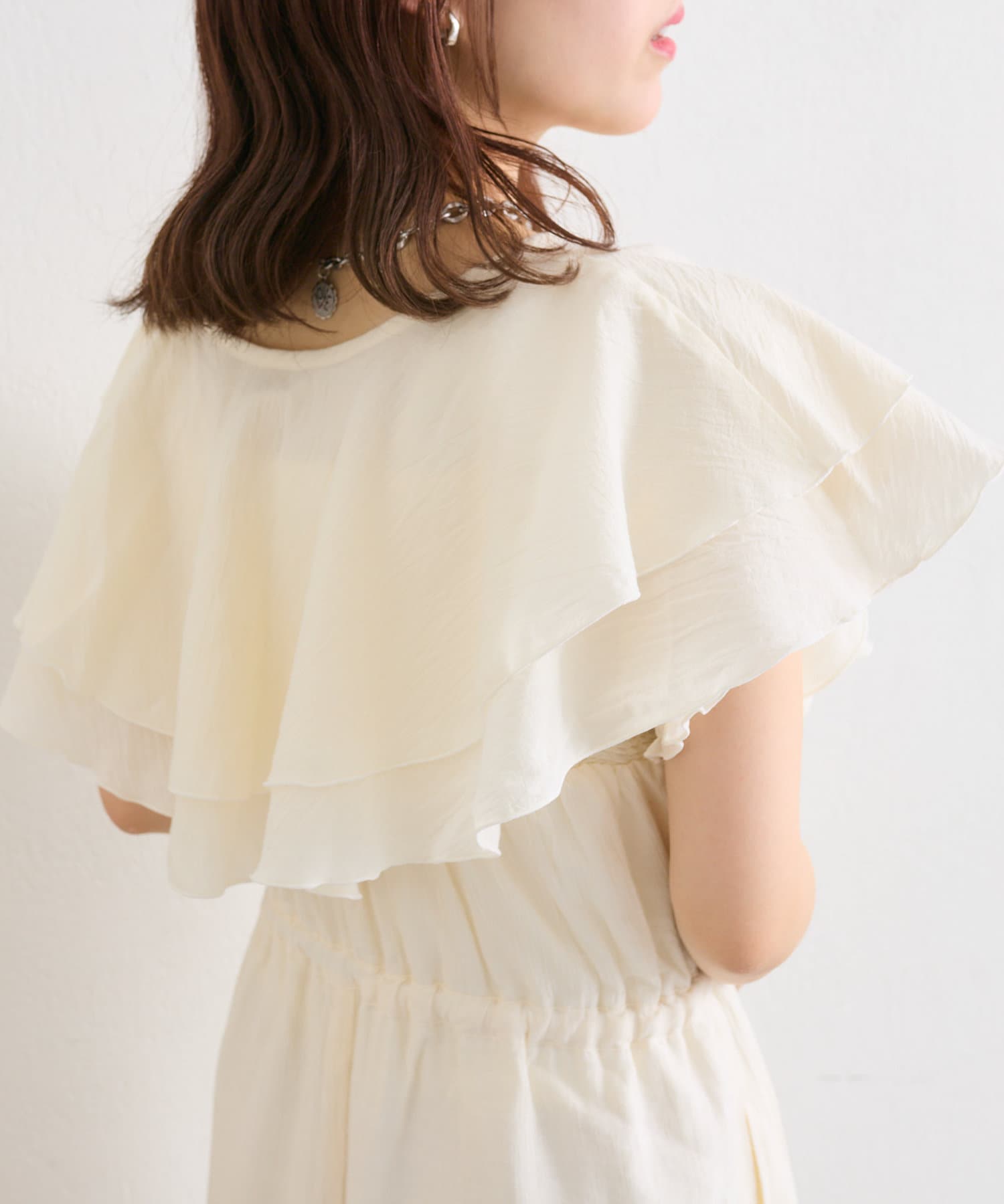 フリル襟が目を惹くオールインワン