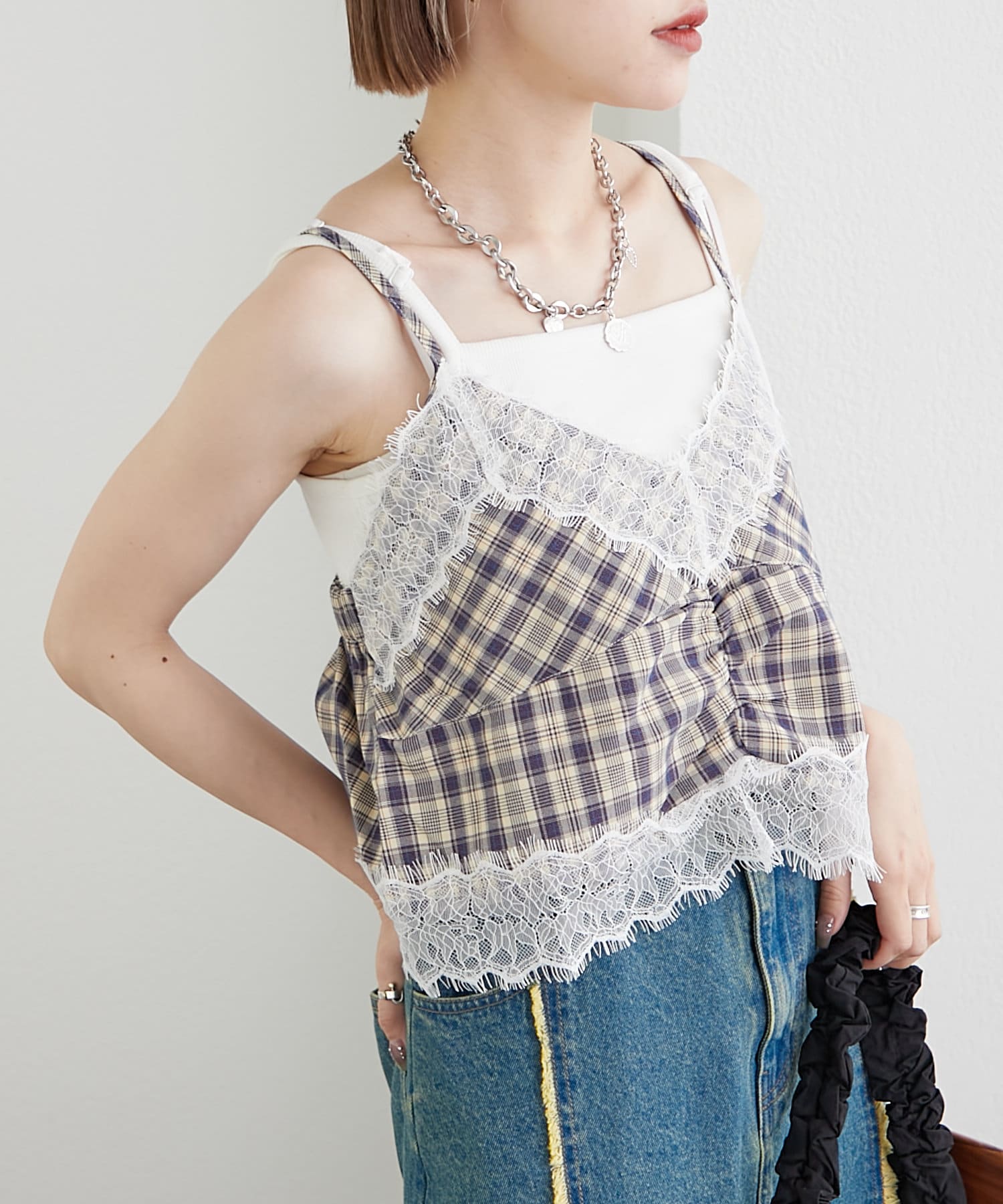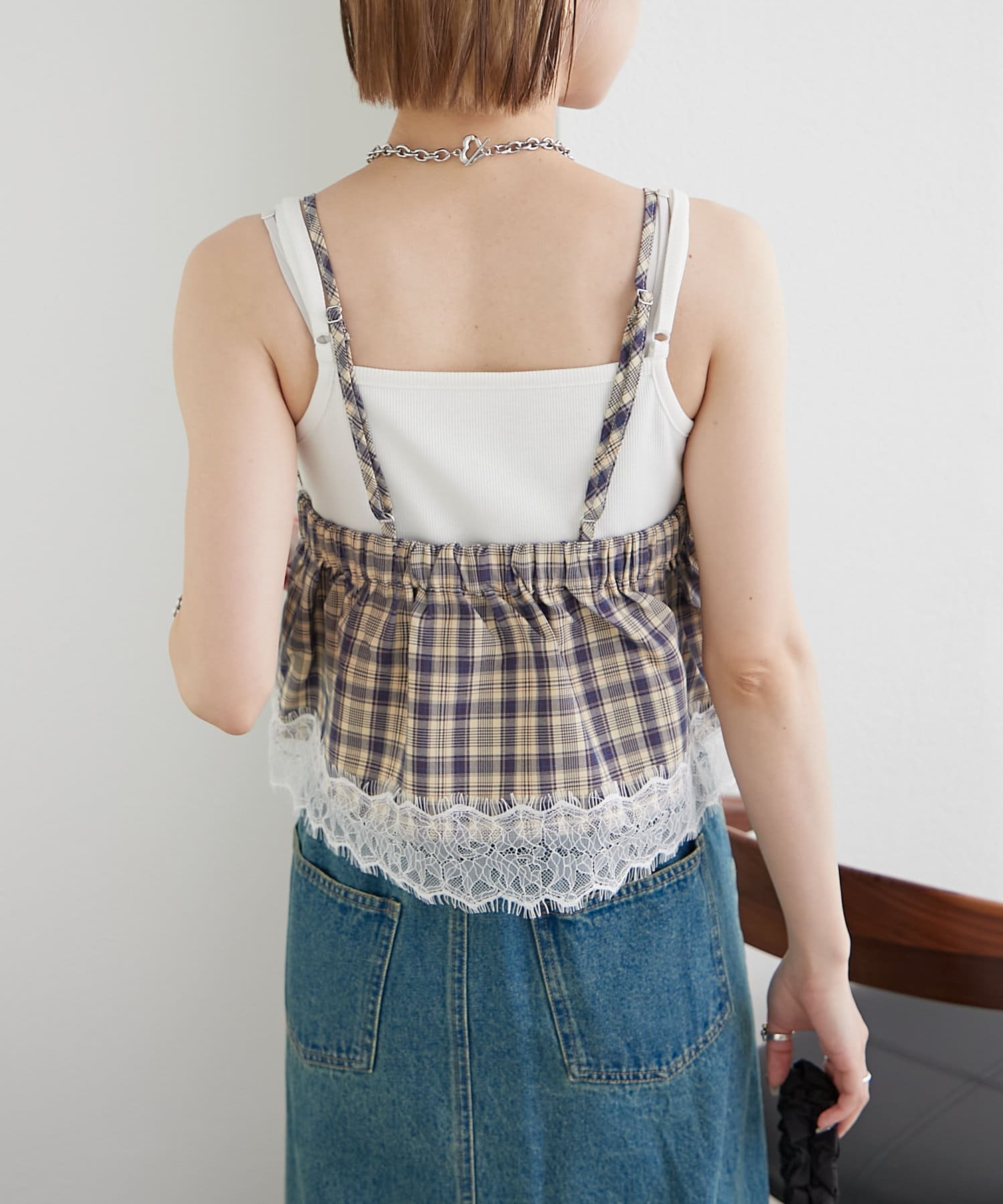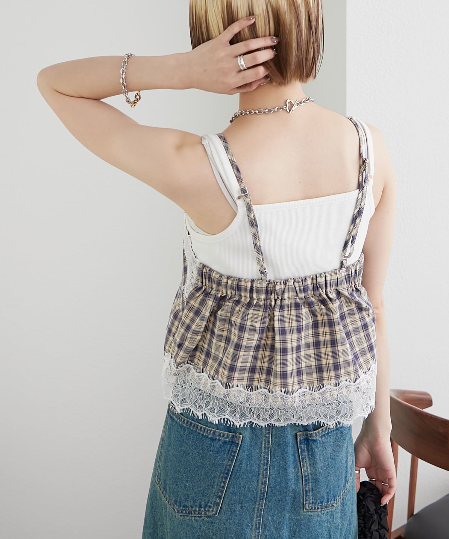 • w closet(ダブルクローゼット) チェックレースキャミ