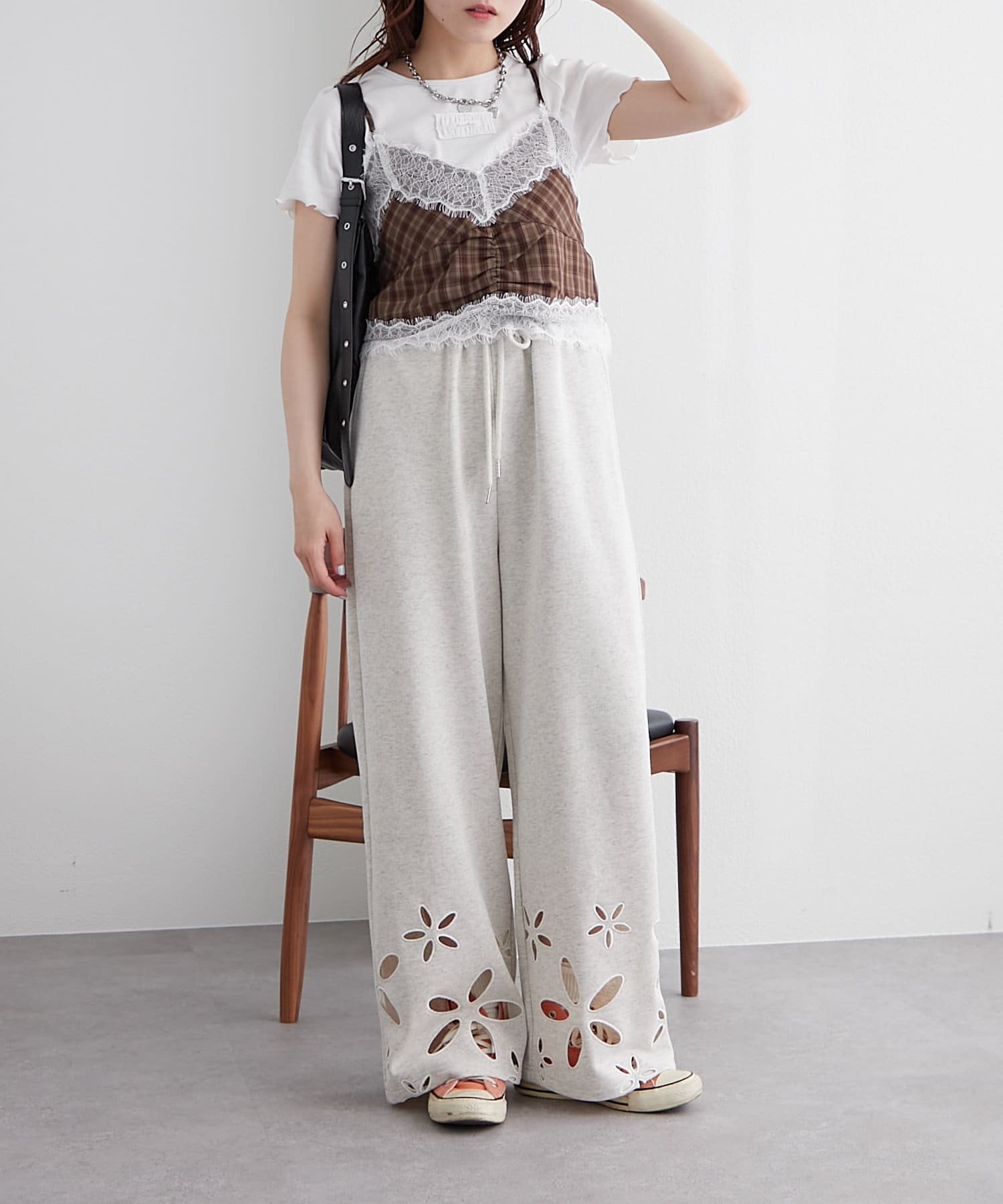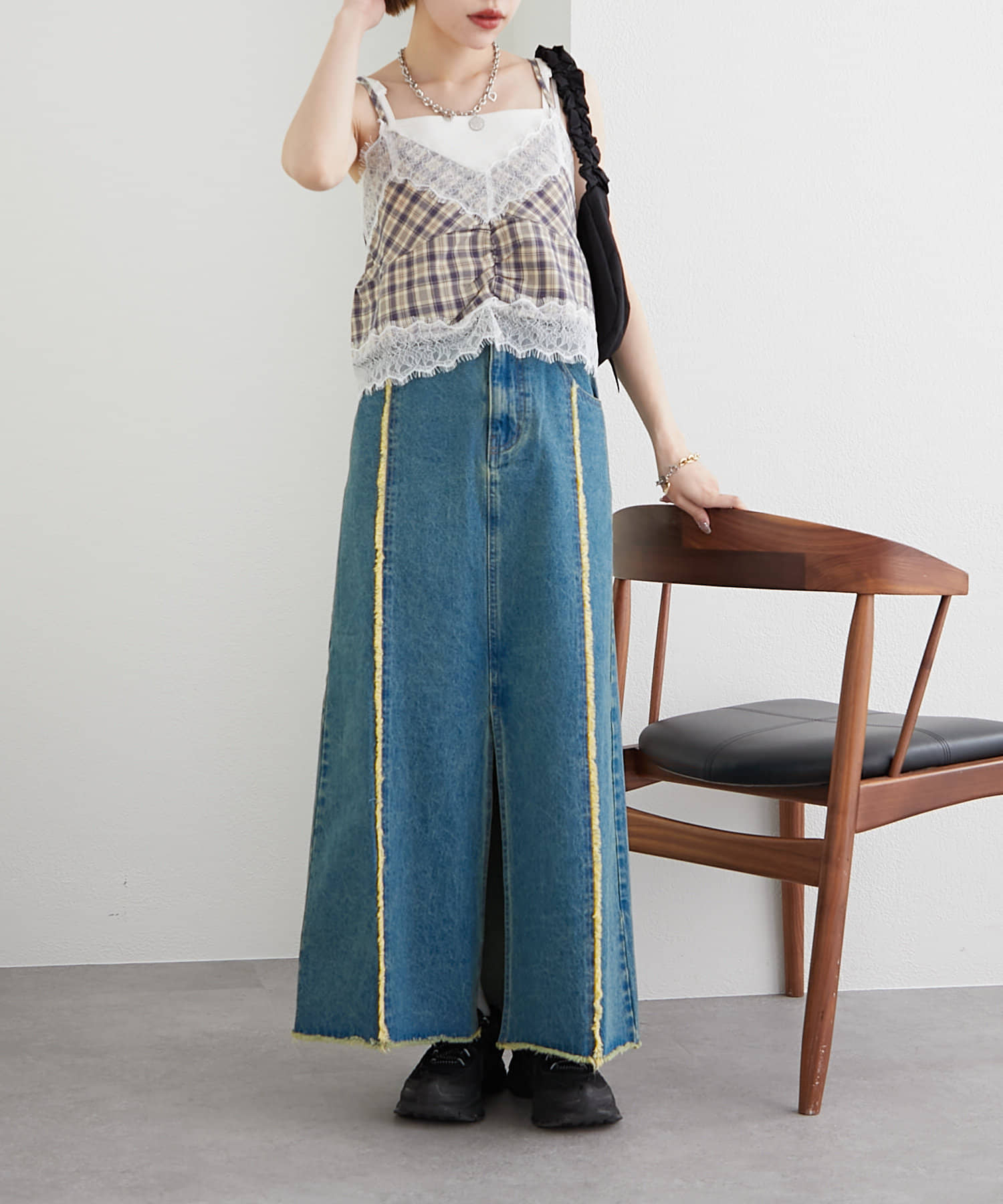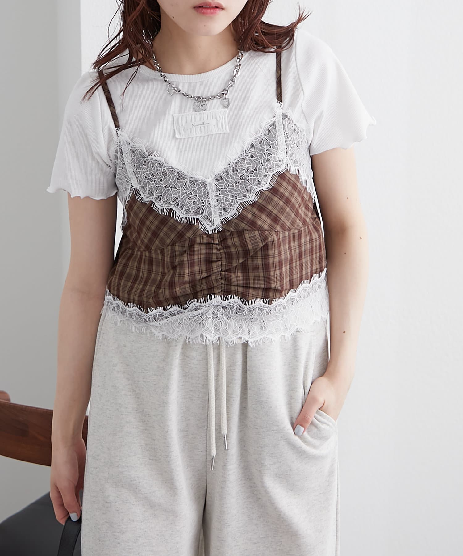 • w closet(ダブルクローゼット) チェックレースキャミ