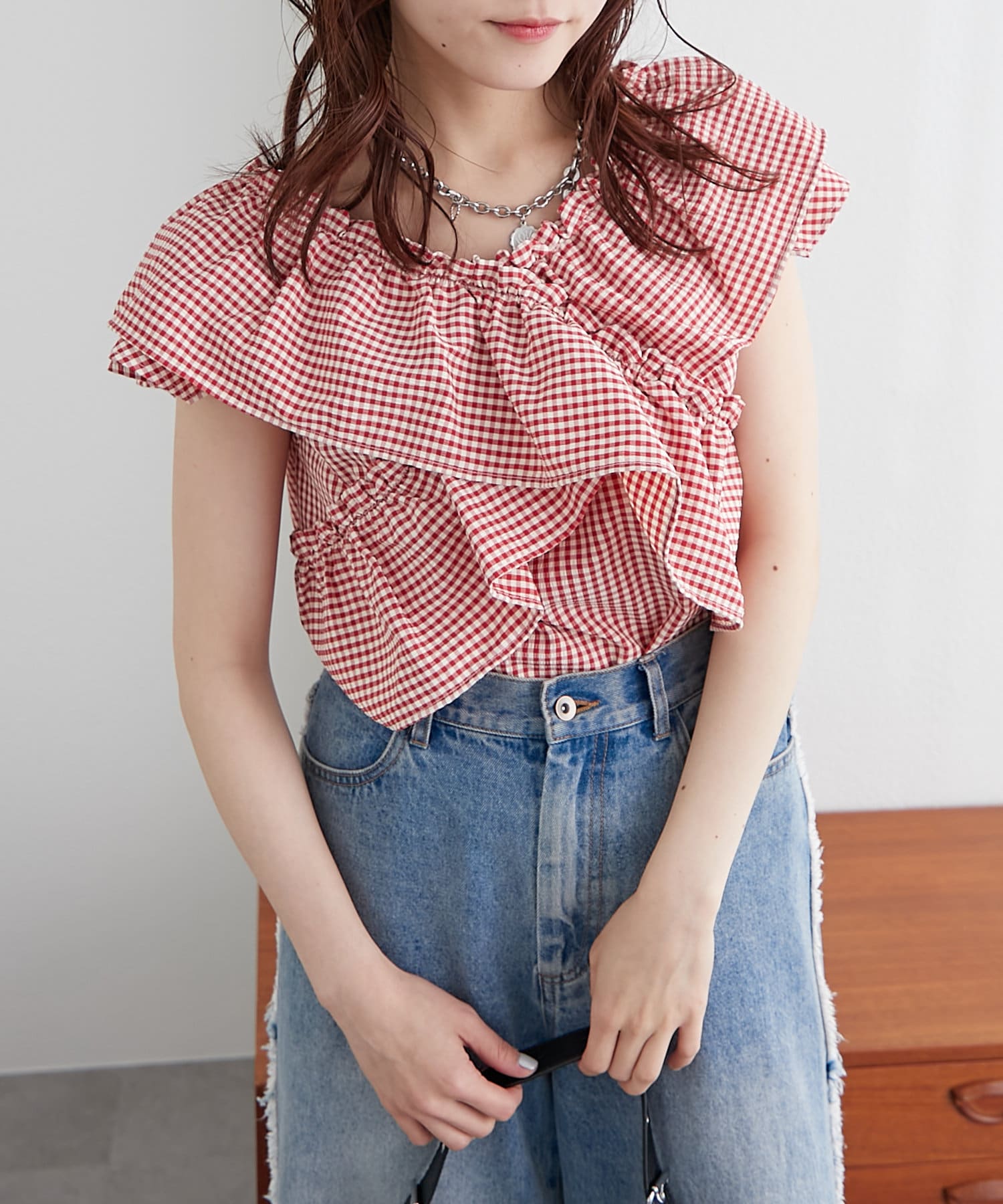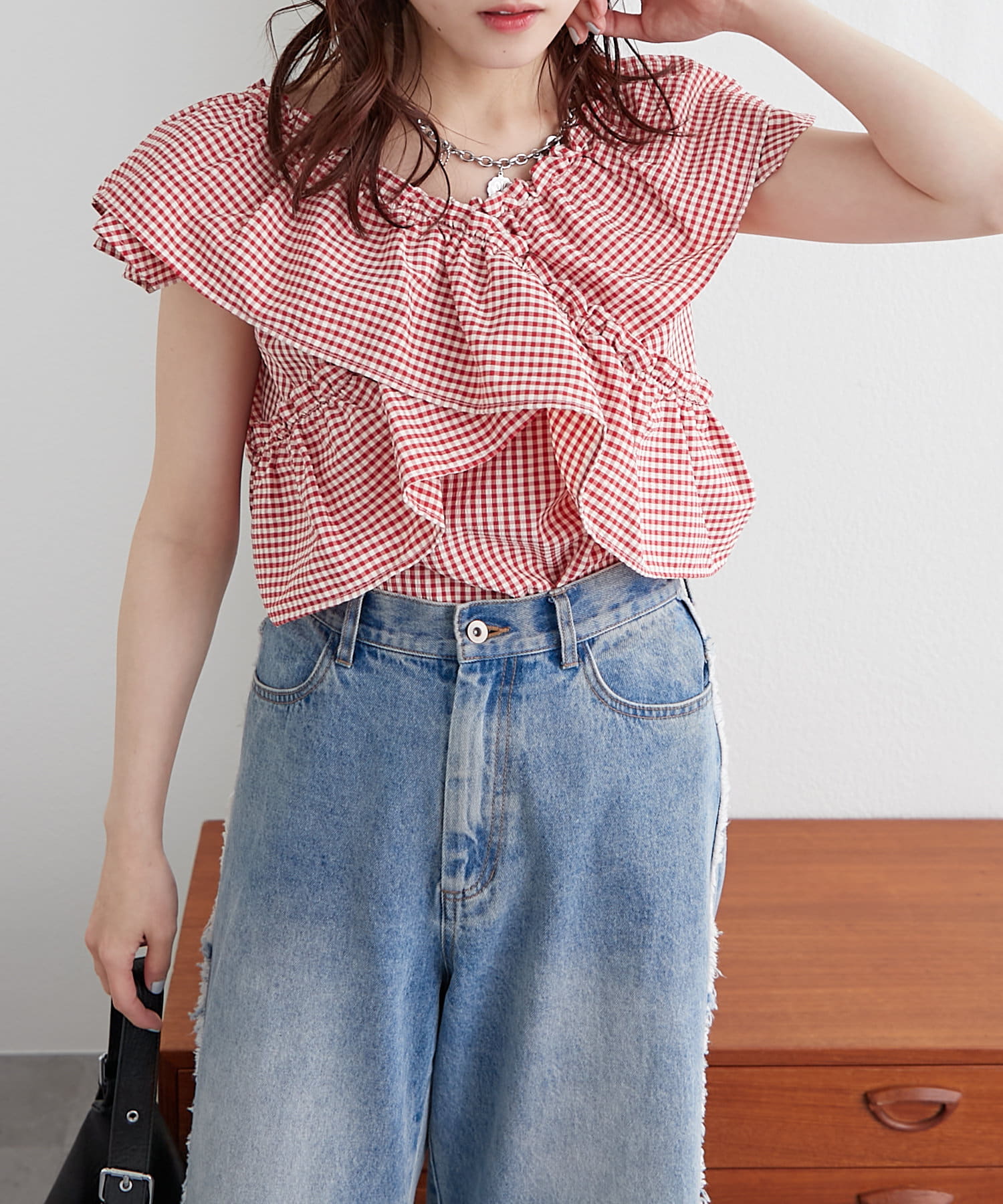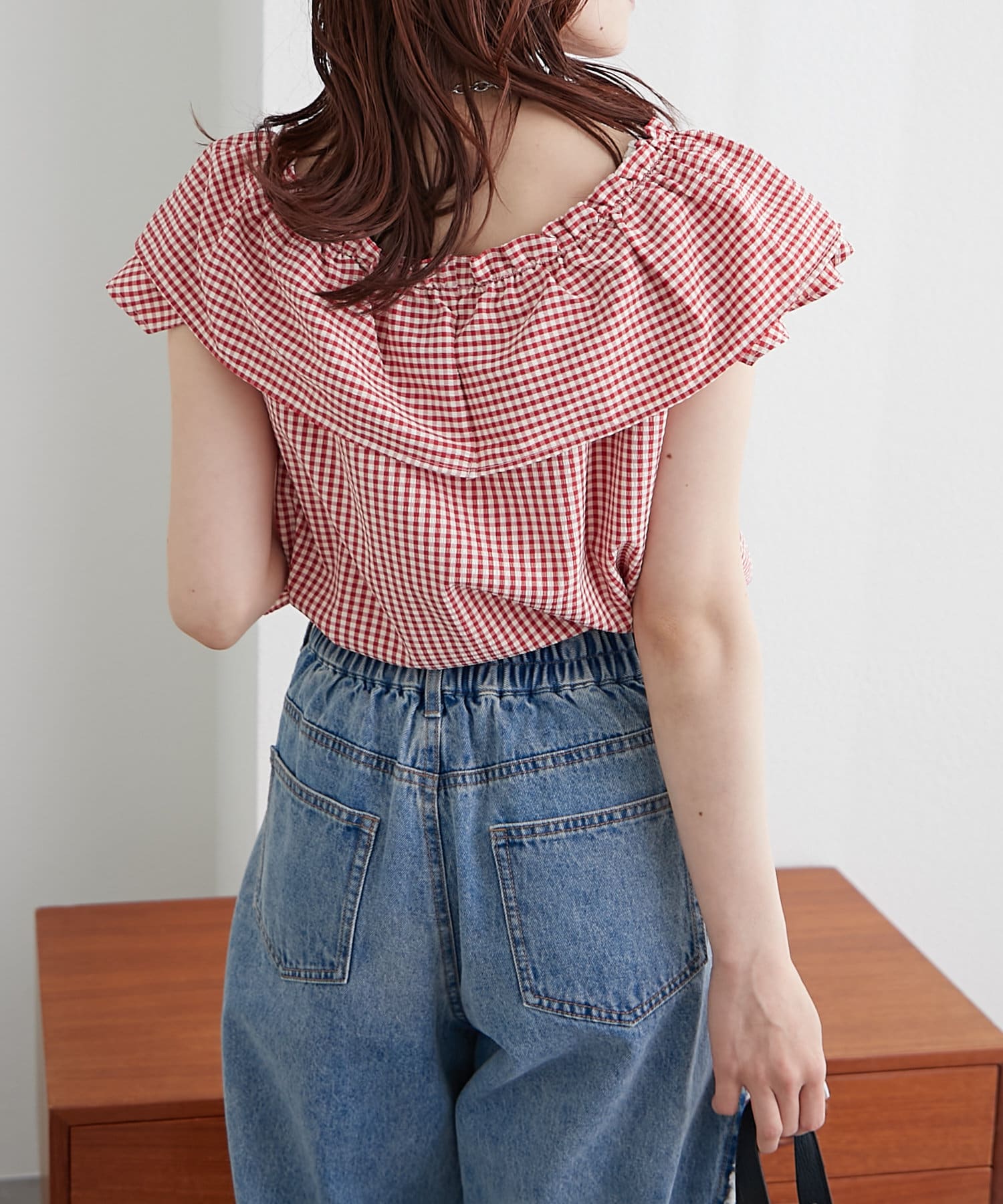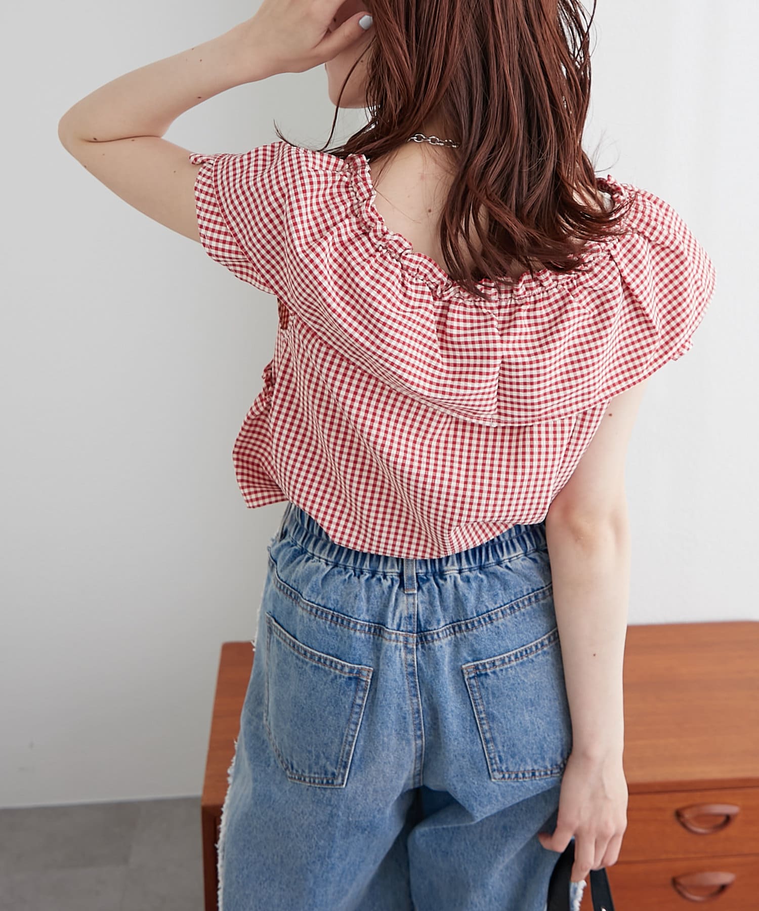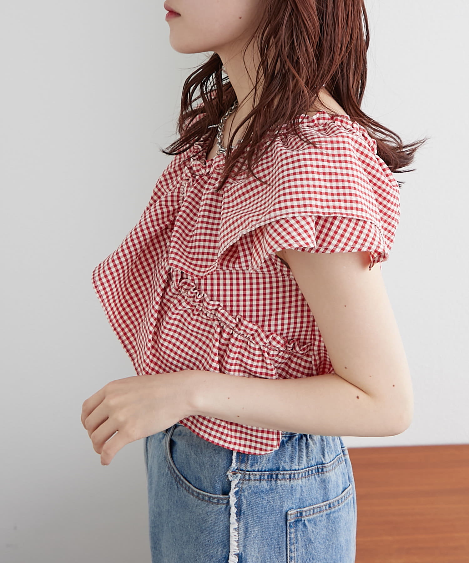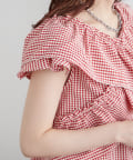 ・ぽこぽことしたサッカー生地×ギンガムチェックが可愛い♡