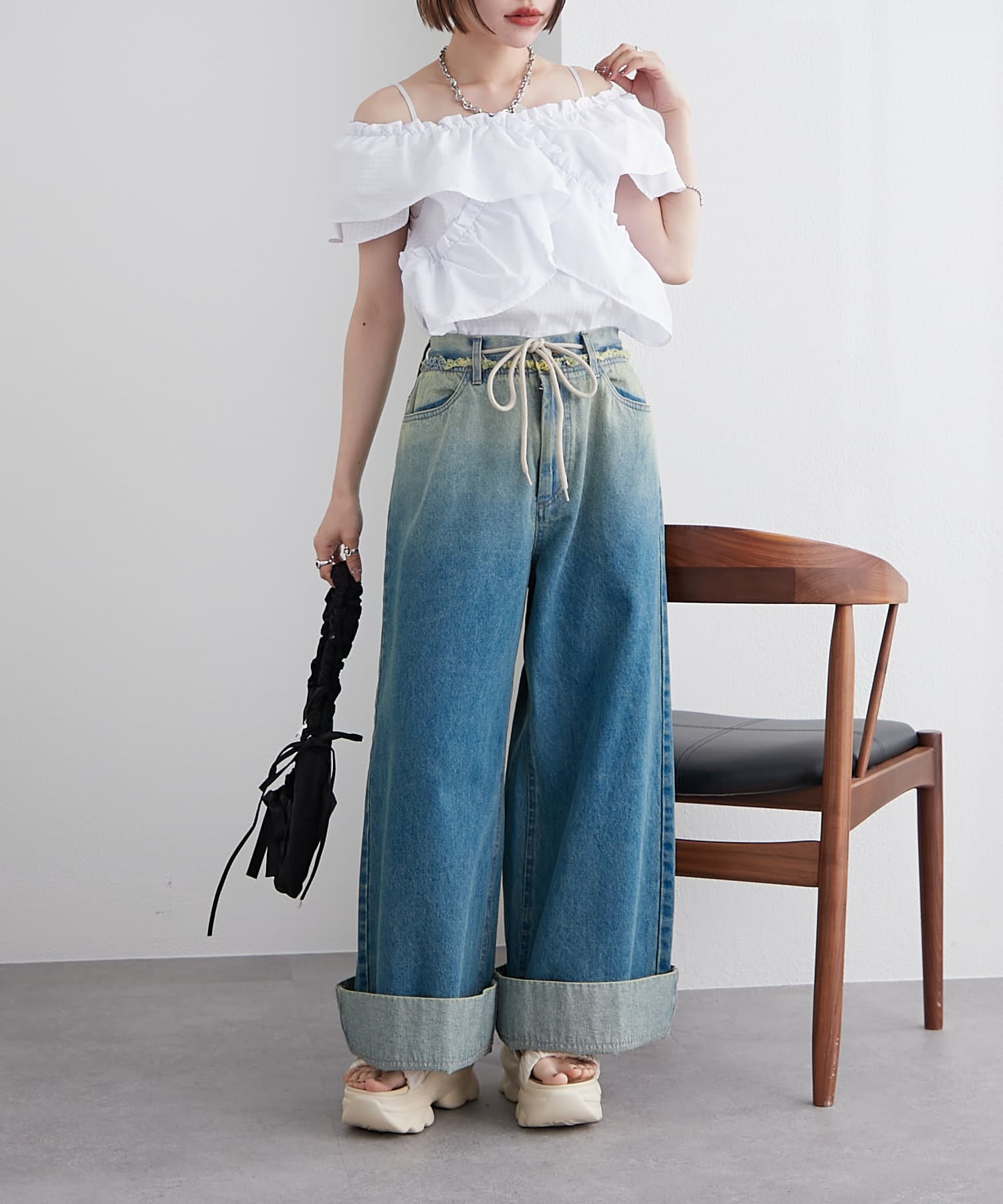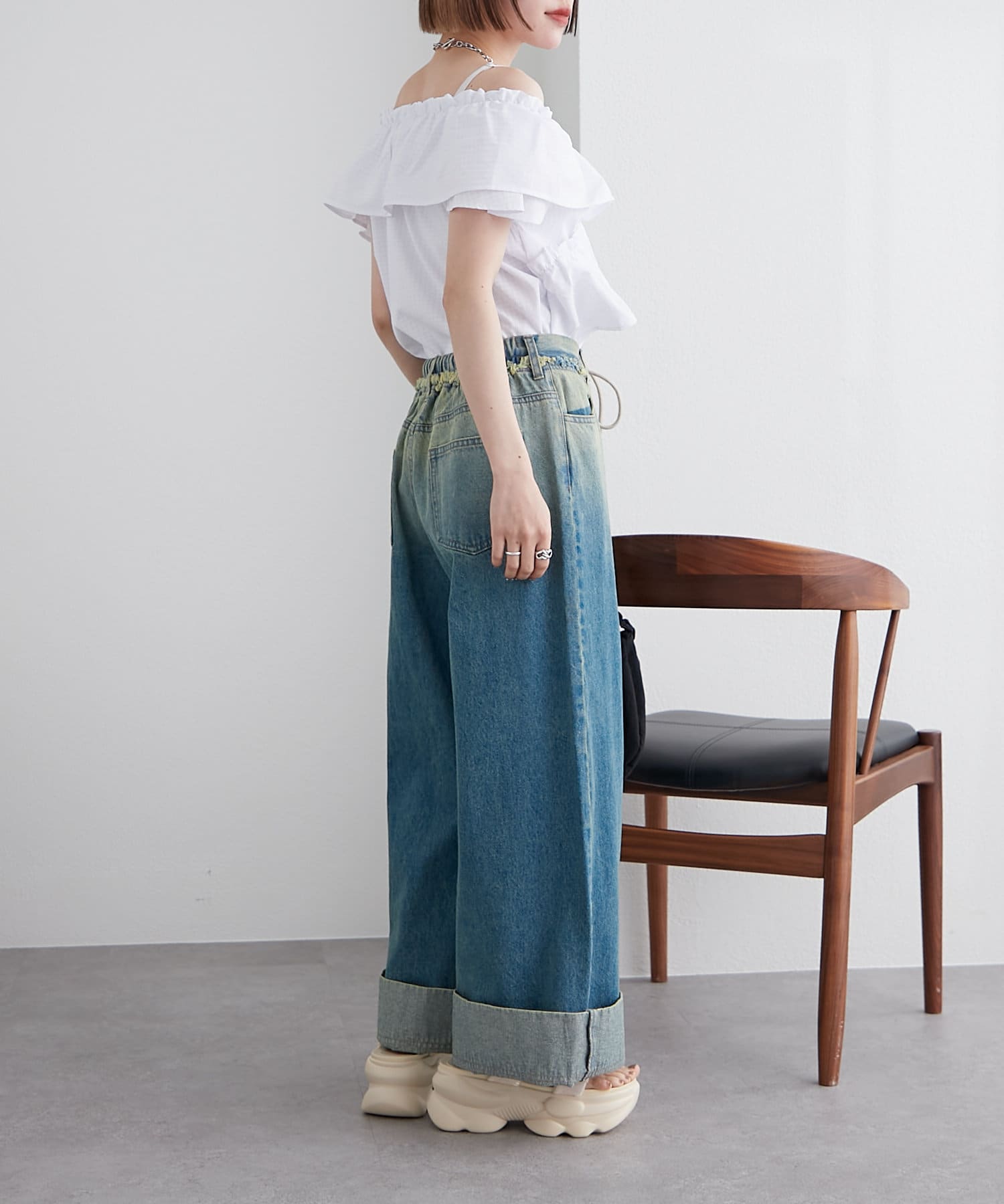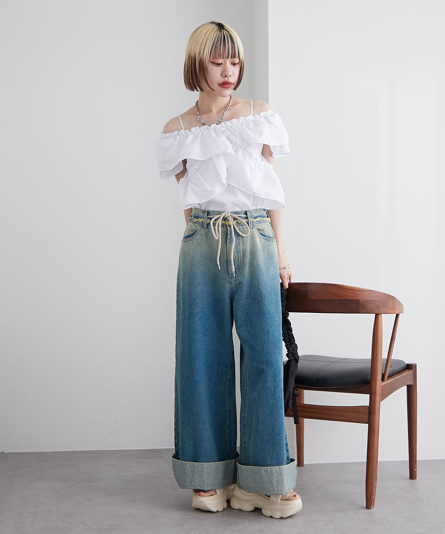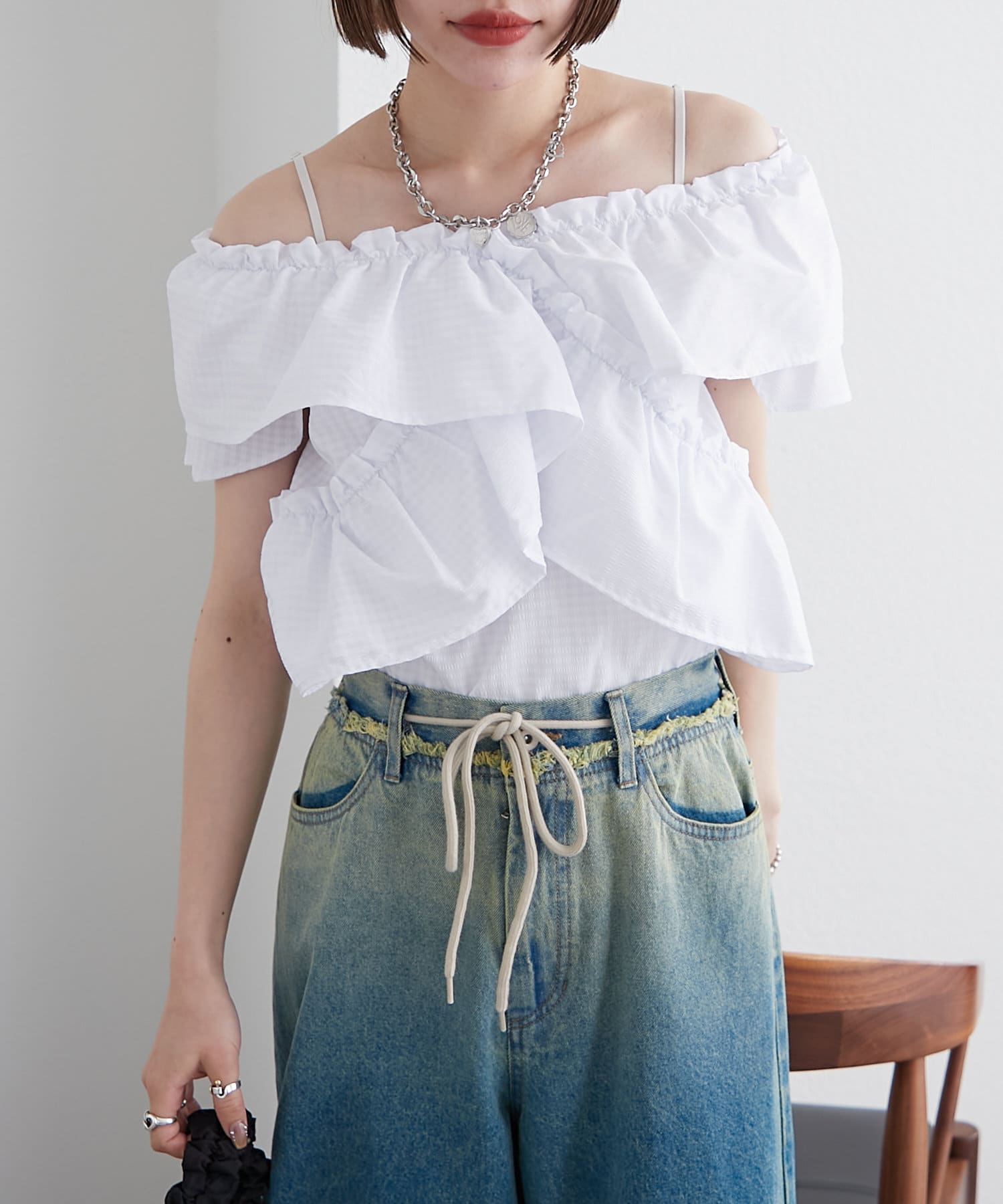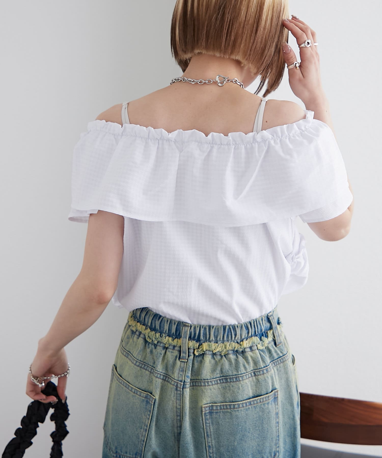 ・肩をおろしてオフショルダーにして程よい肌見せ