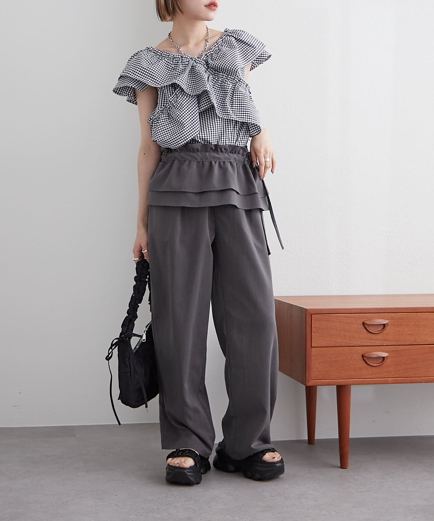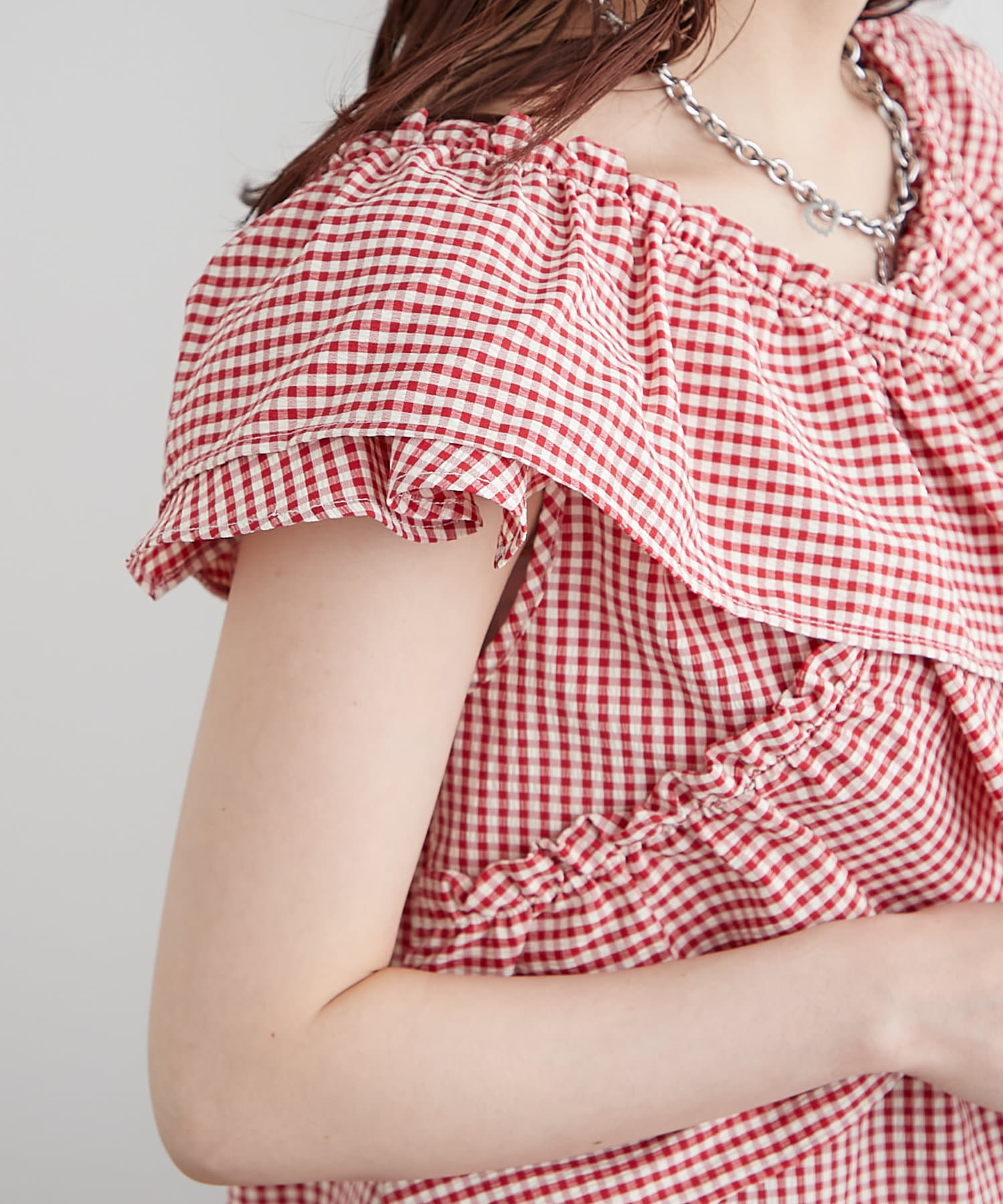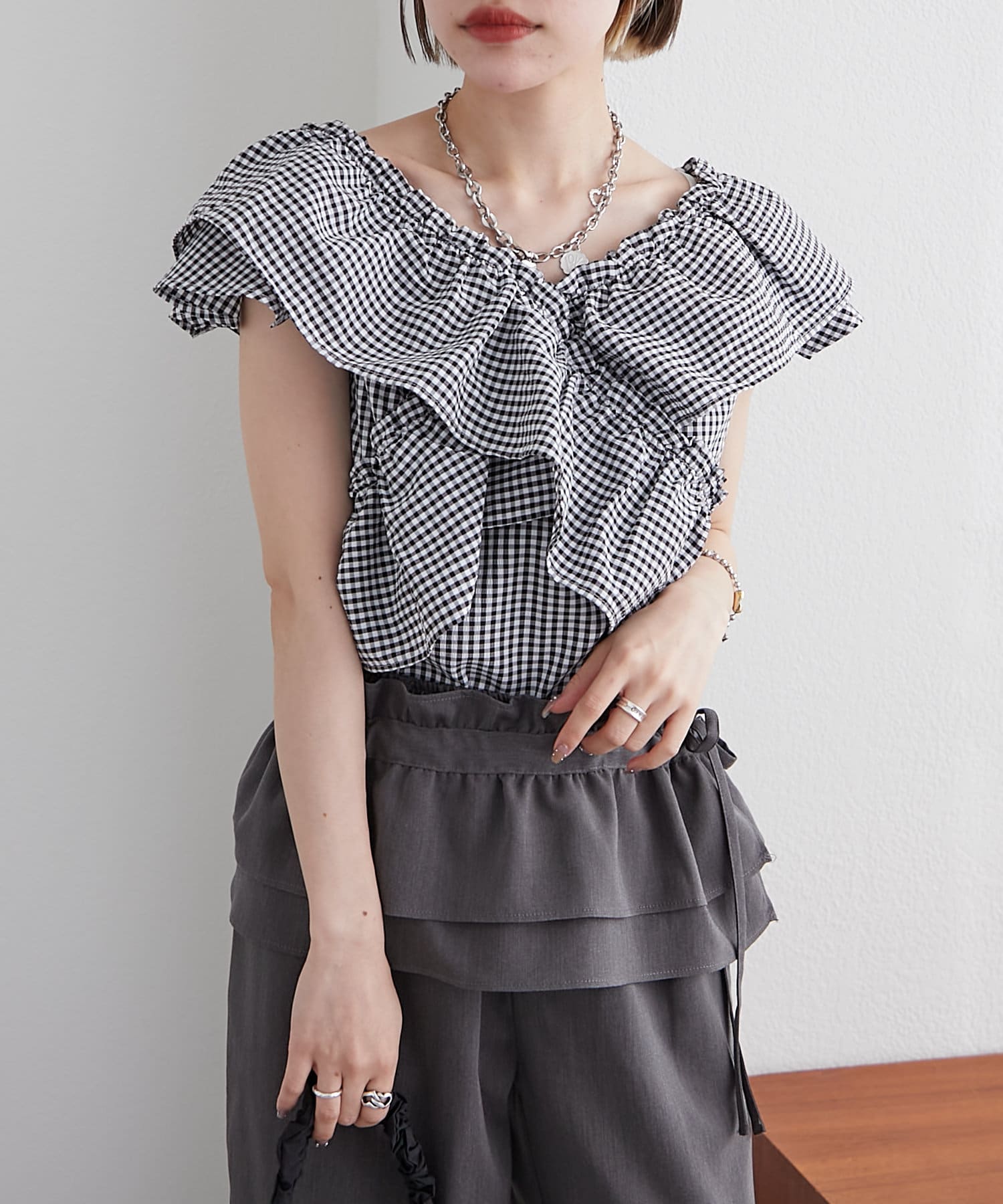 ・ギャザーが寄ったフリフリしたカシュクールデザイン