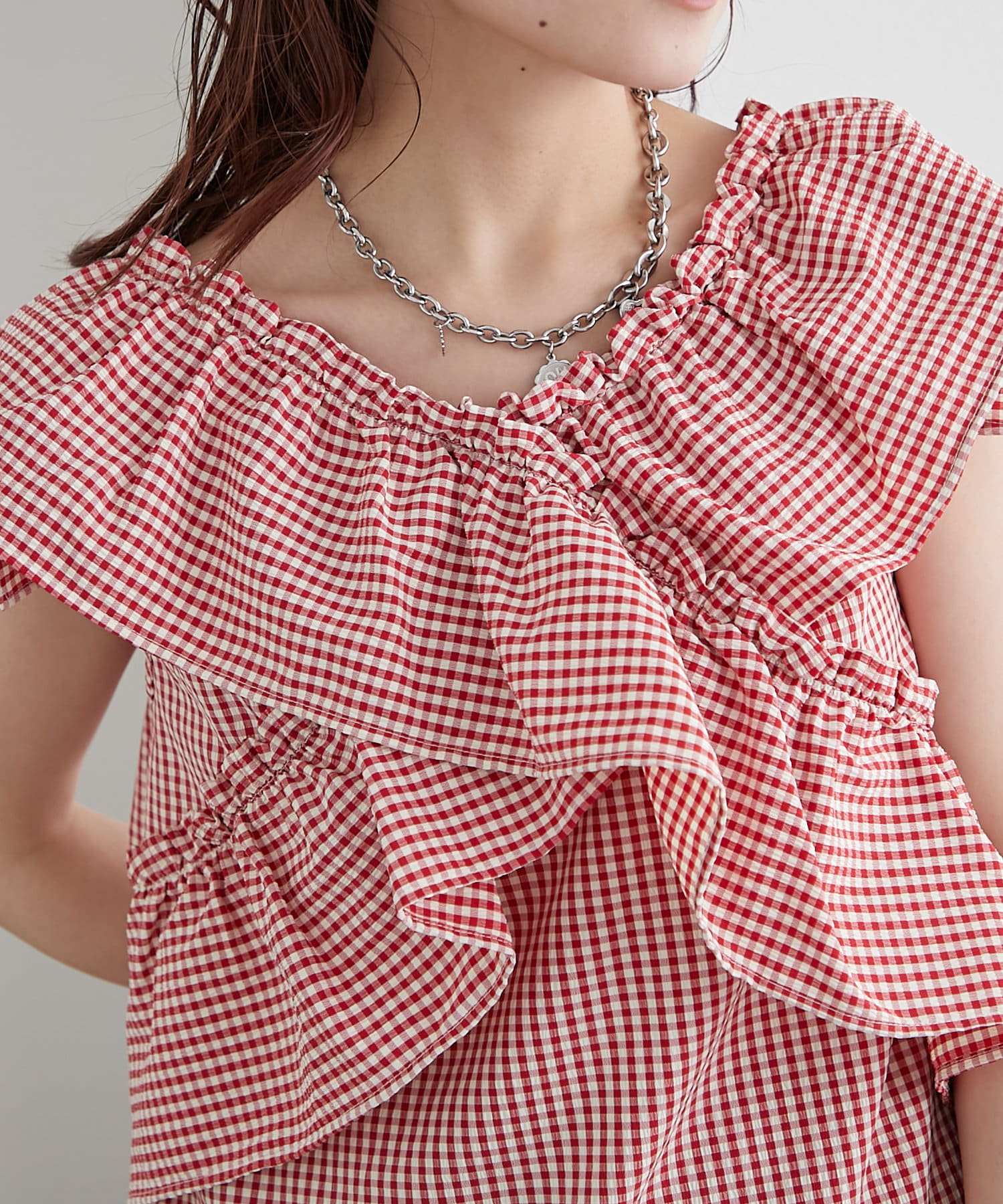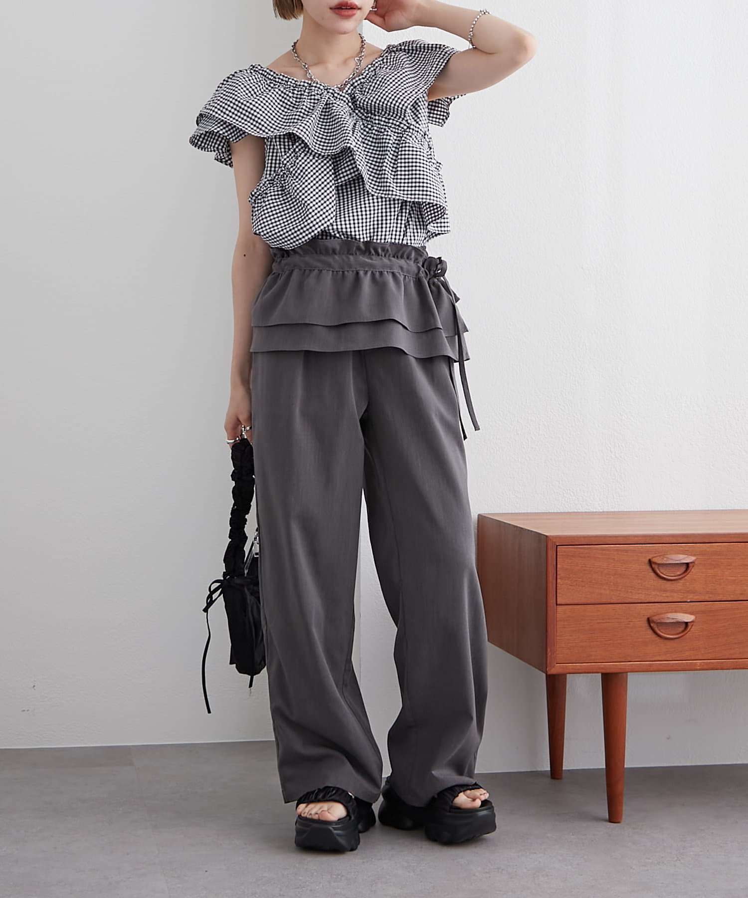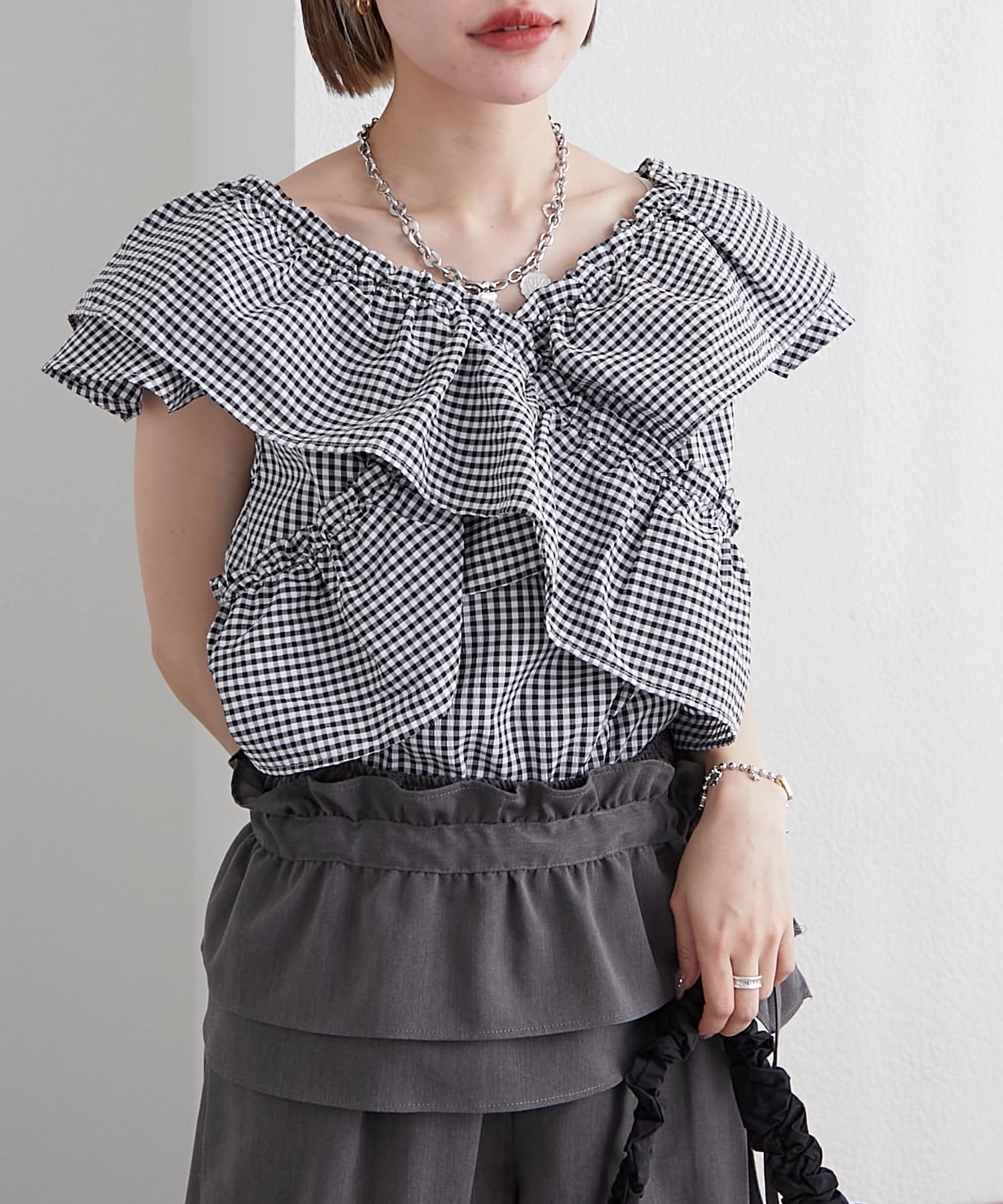 ・ギャザーが寄ったフリフリしたカシュクールデザイン