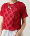 ・透かし編みに、ぽこぽことしたお花がポイントのカーディガン