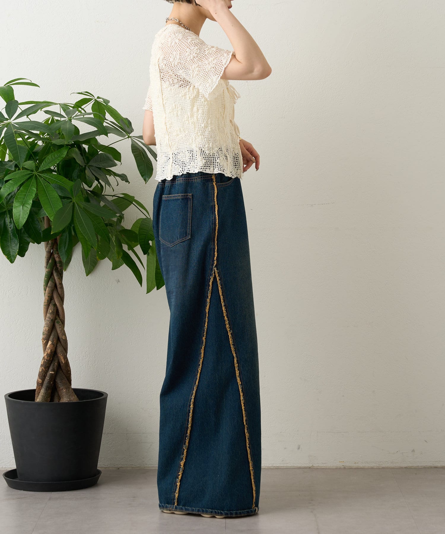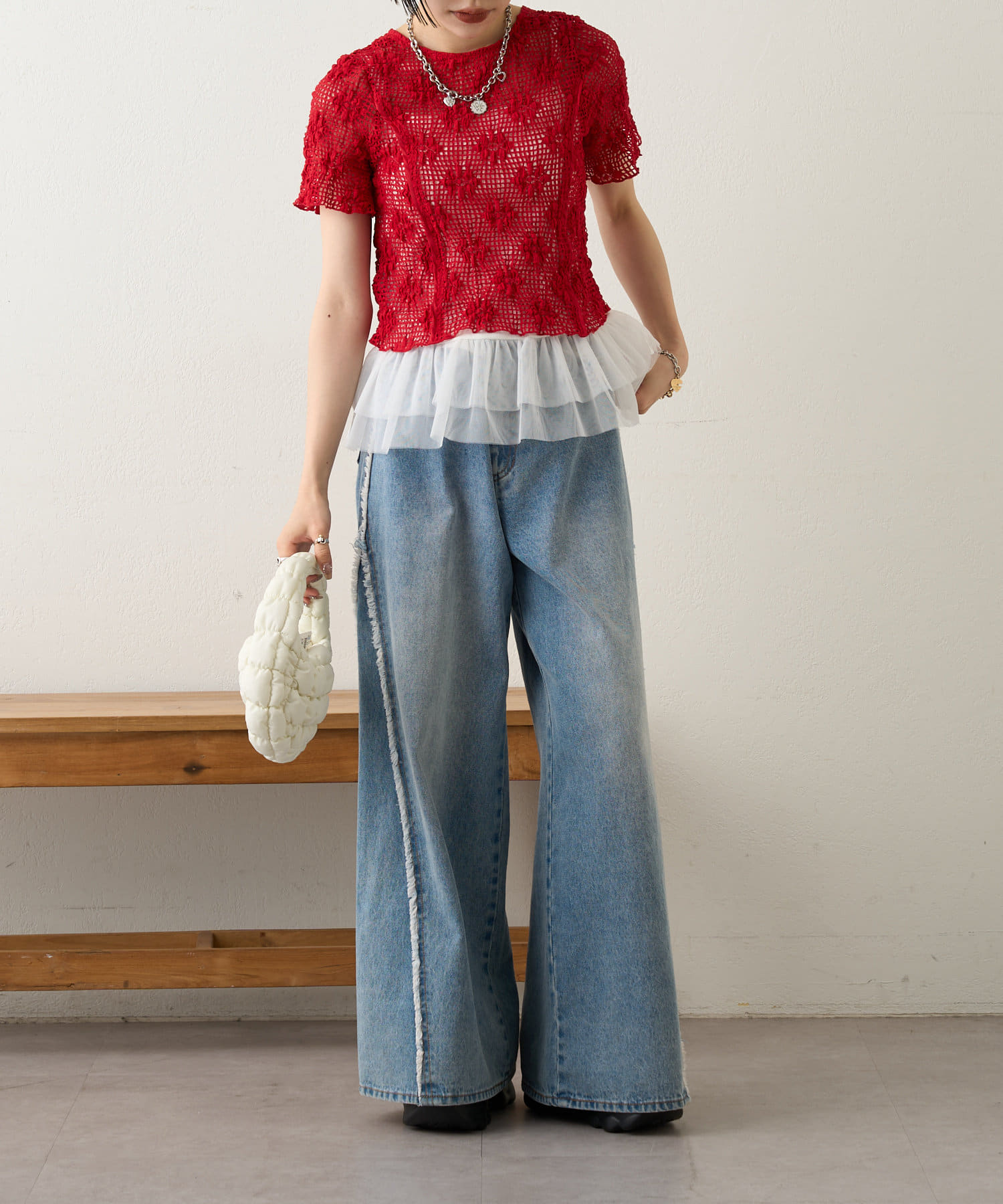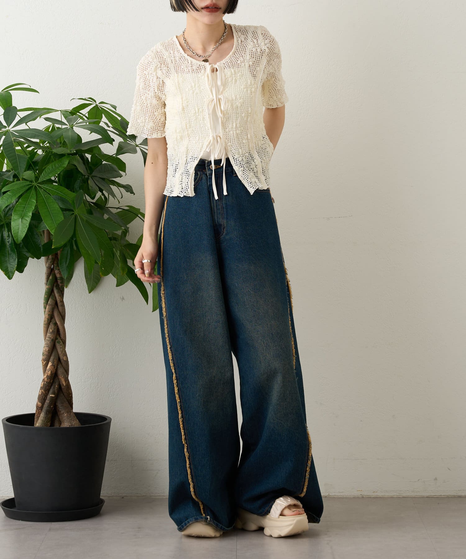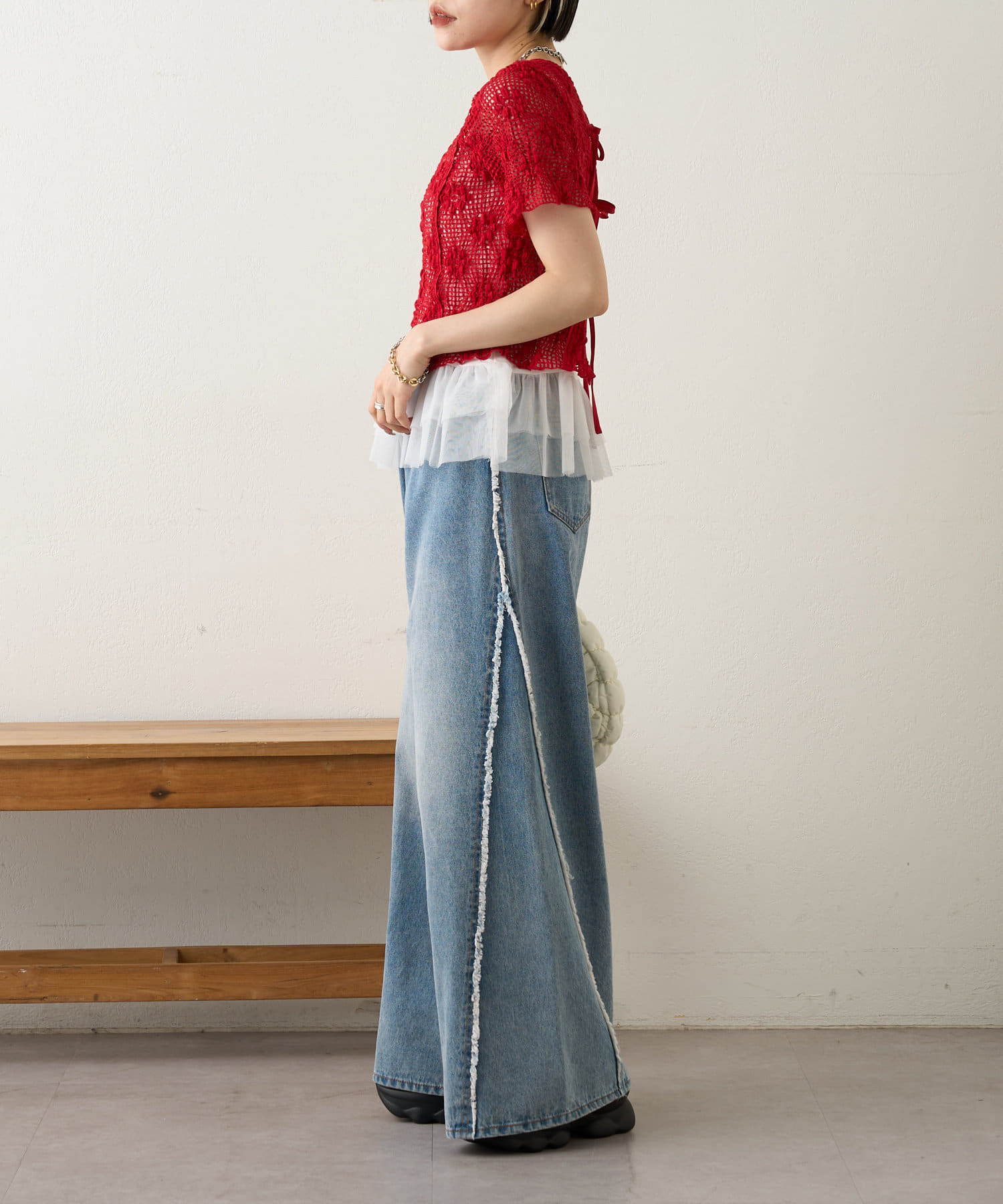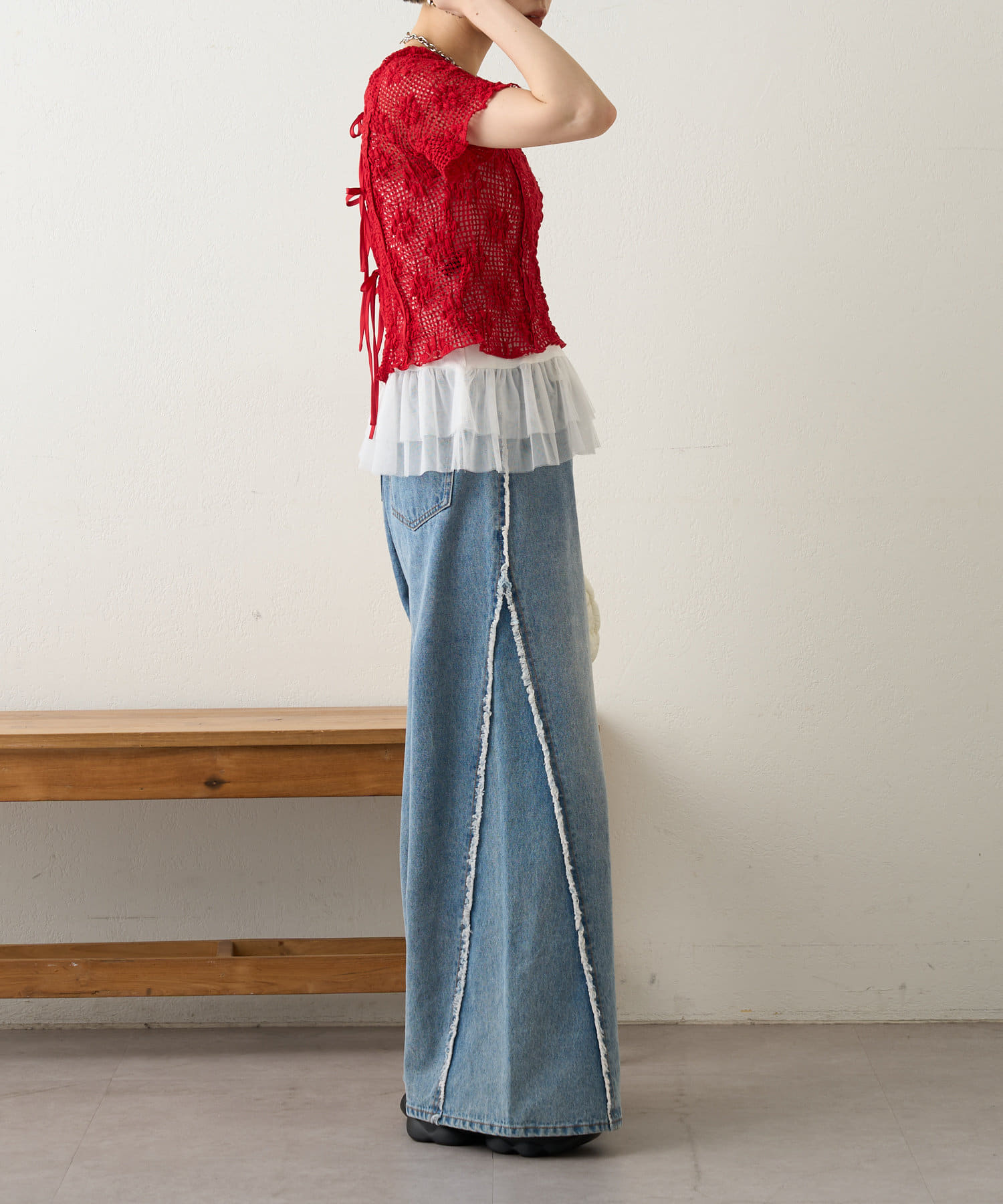 ・キャミソールと合わせて程よい肌見せでヘルシーな印象に