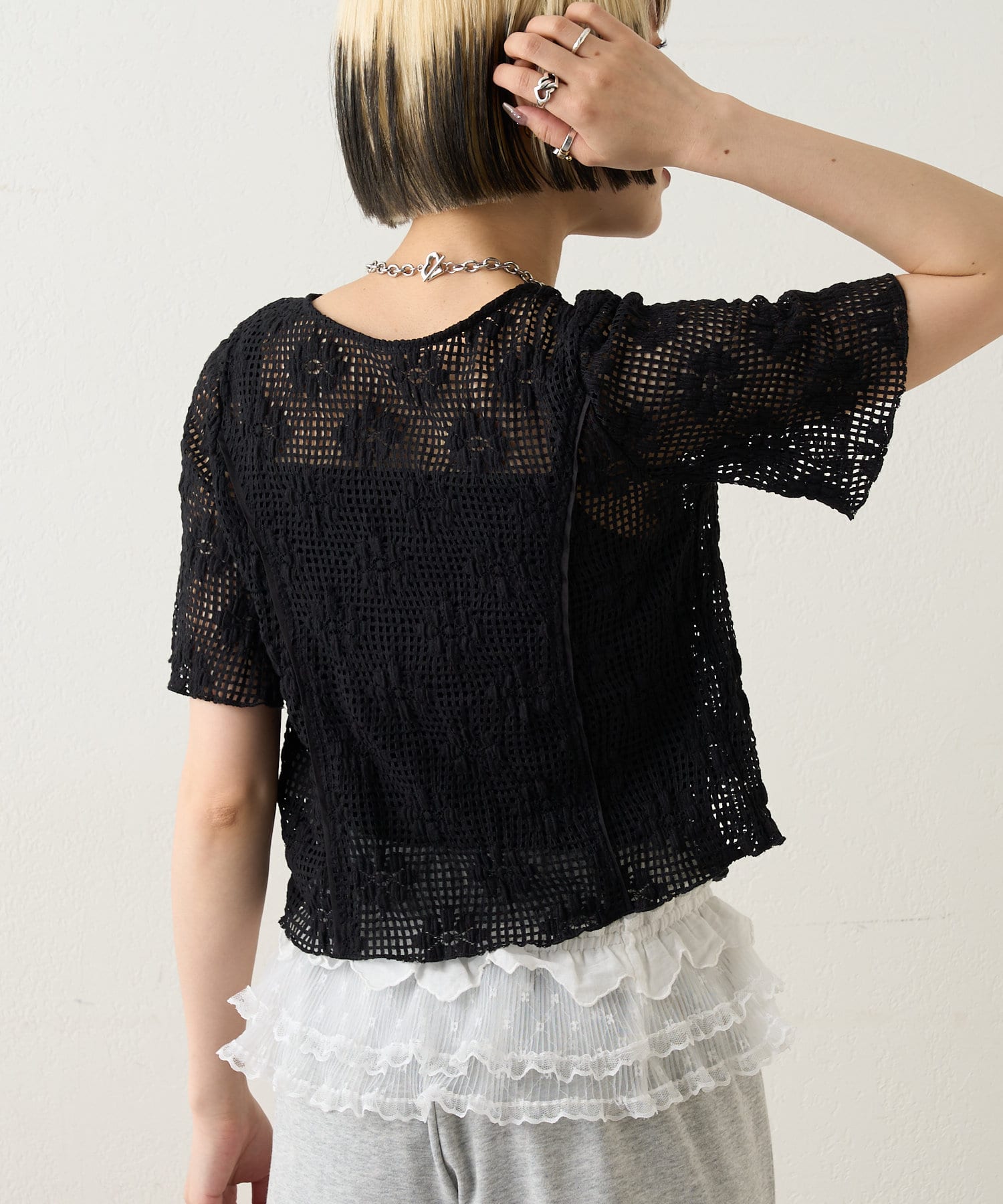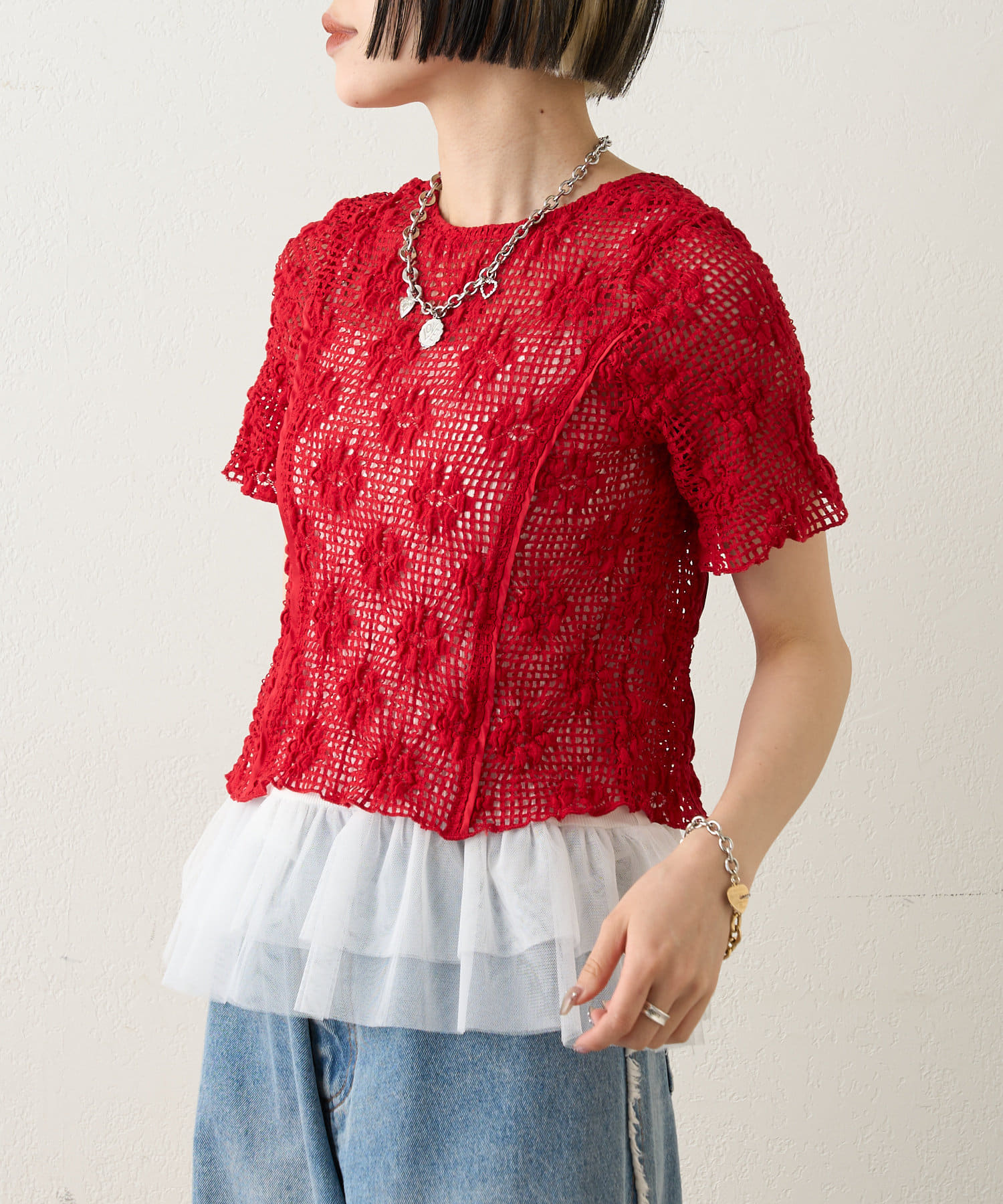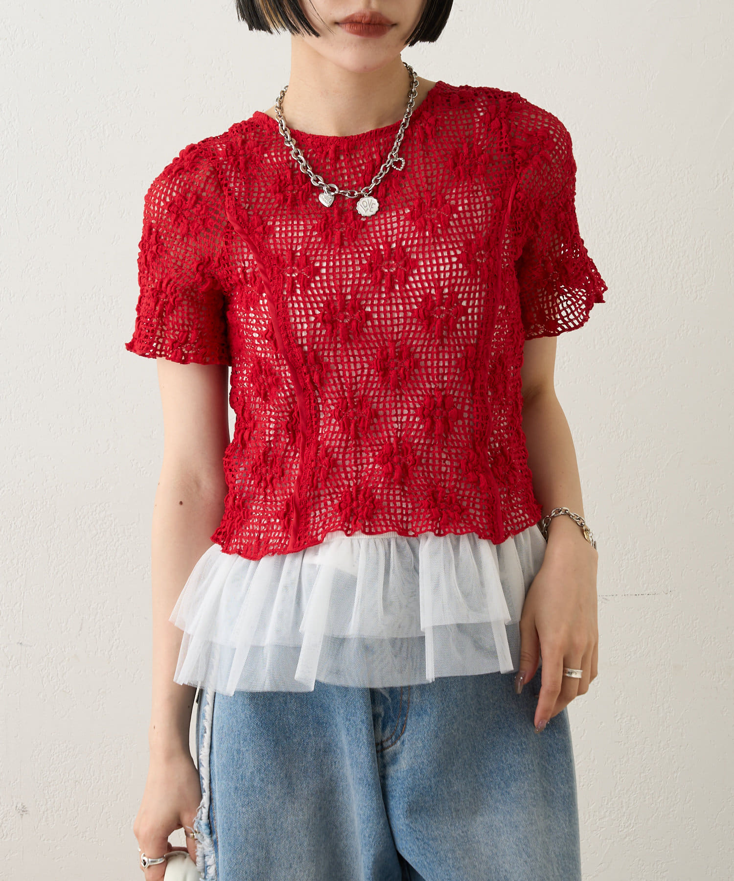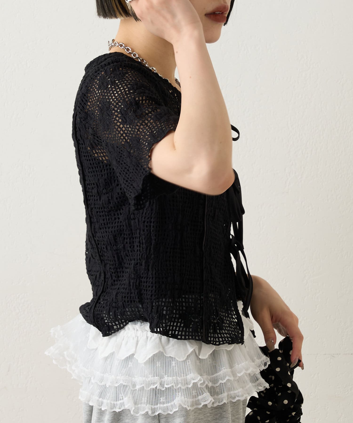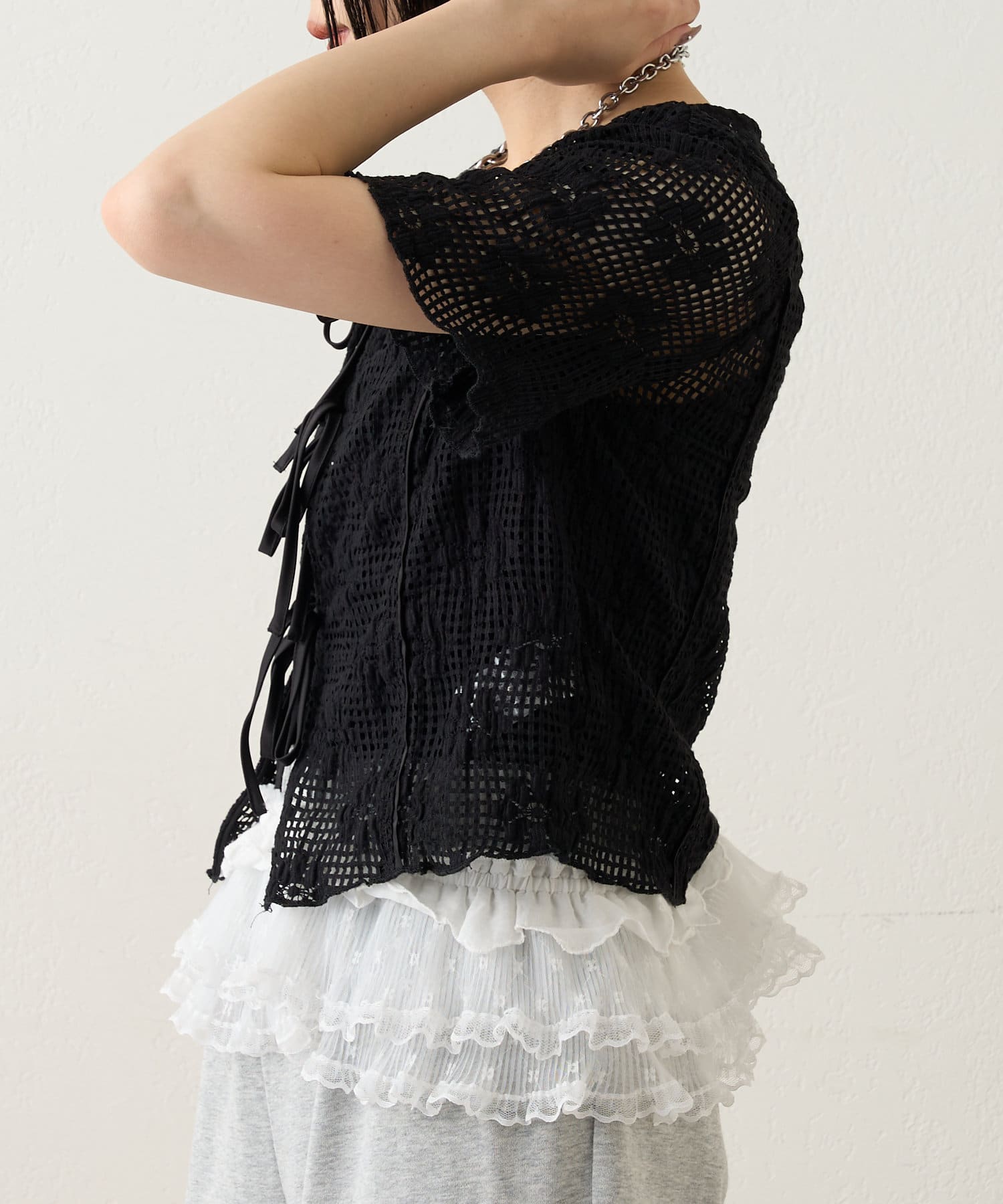 ・透かし編みに、ぽこぽことしたお花がポイントのカーディガン