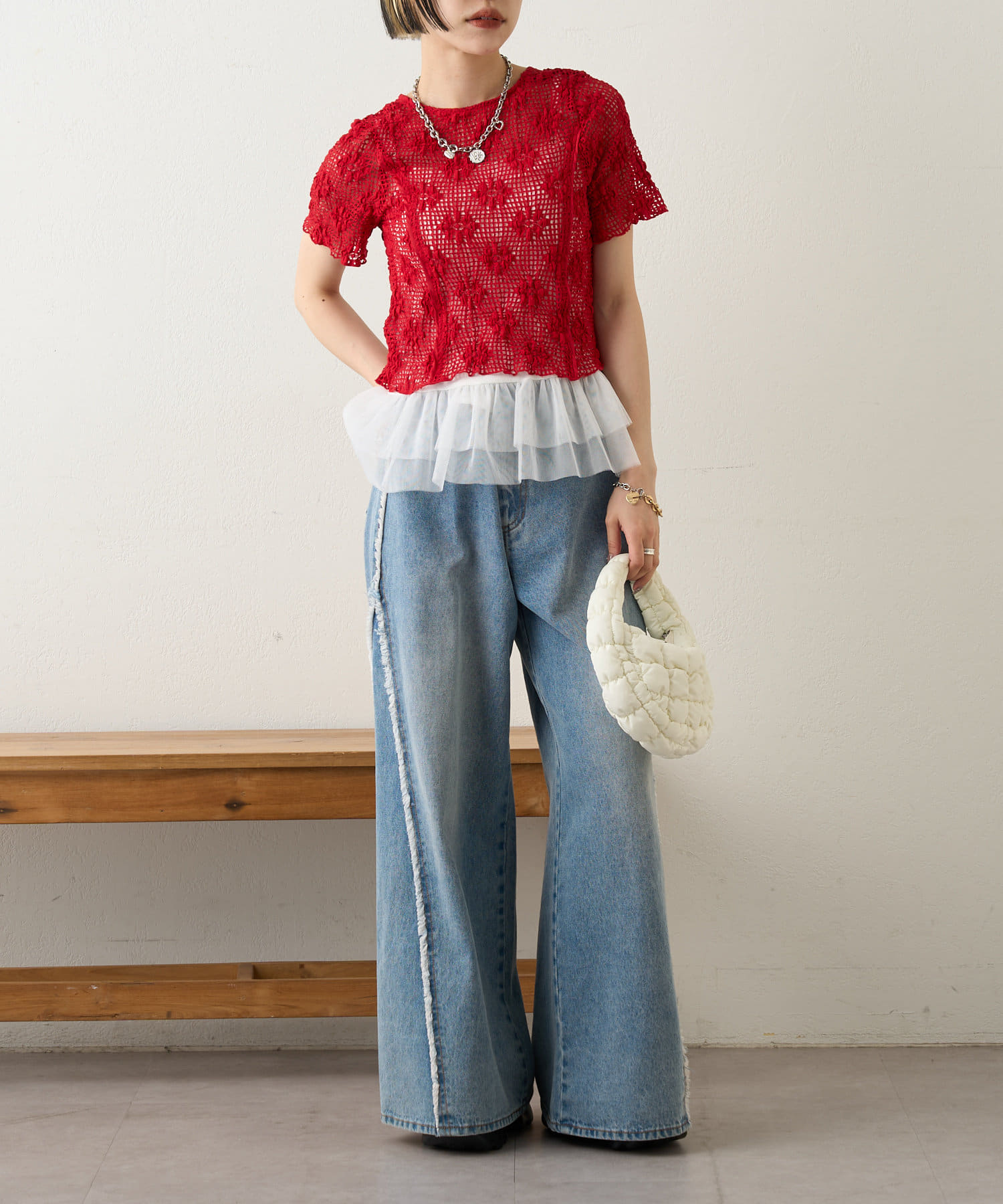 ・フリルキャミワンピと合わせてガーリーで可愛いコーデに♡