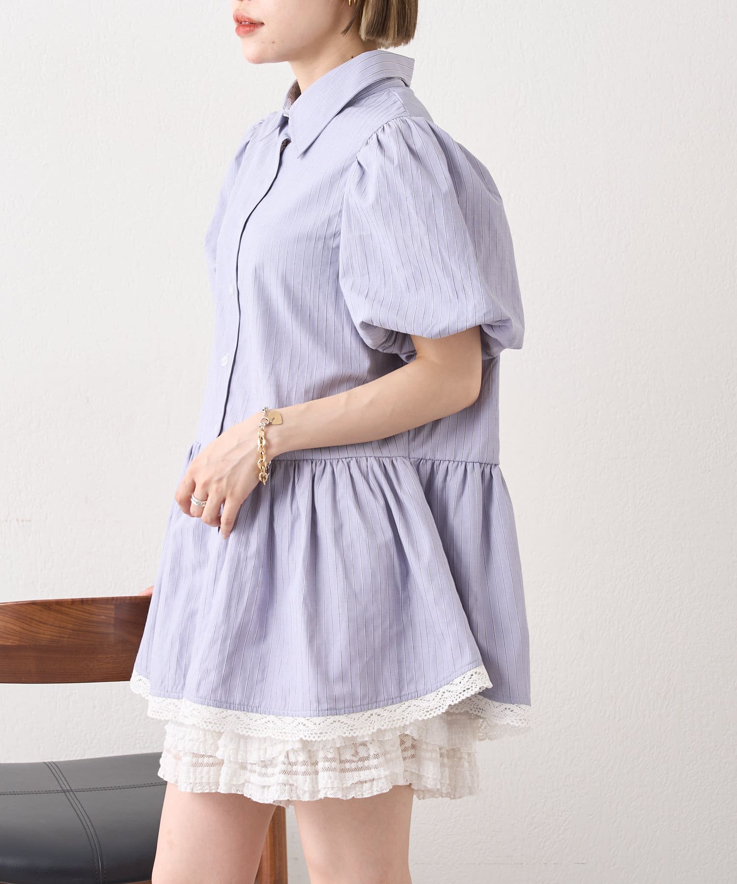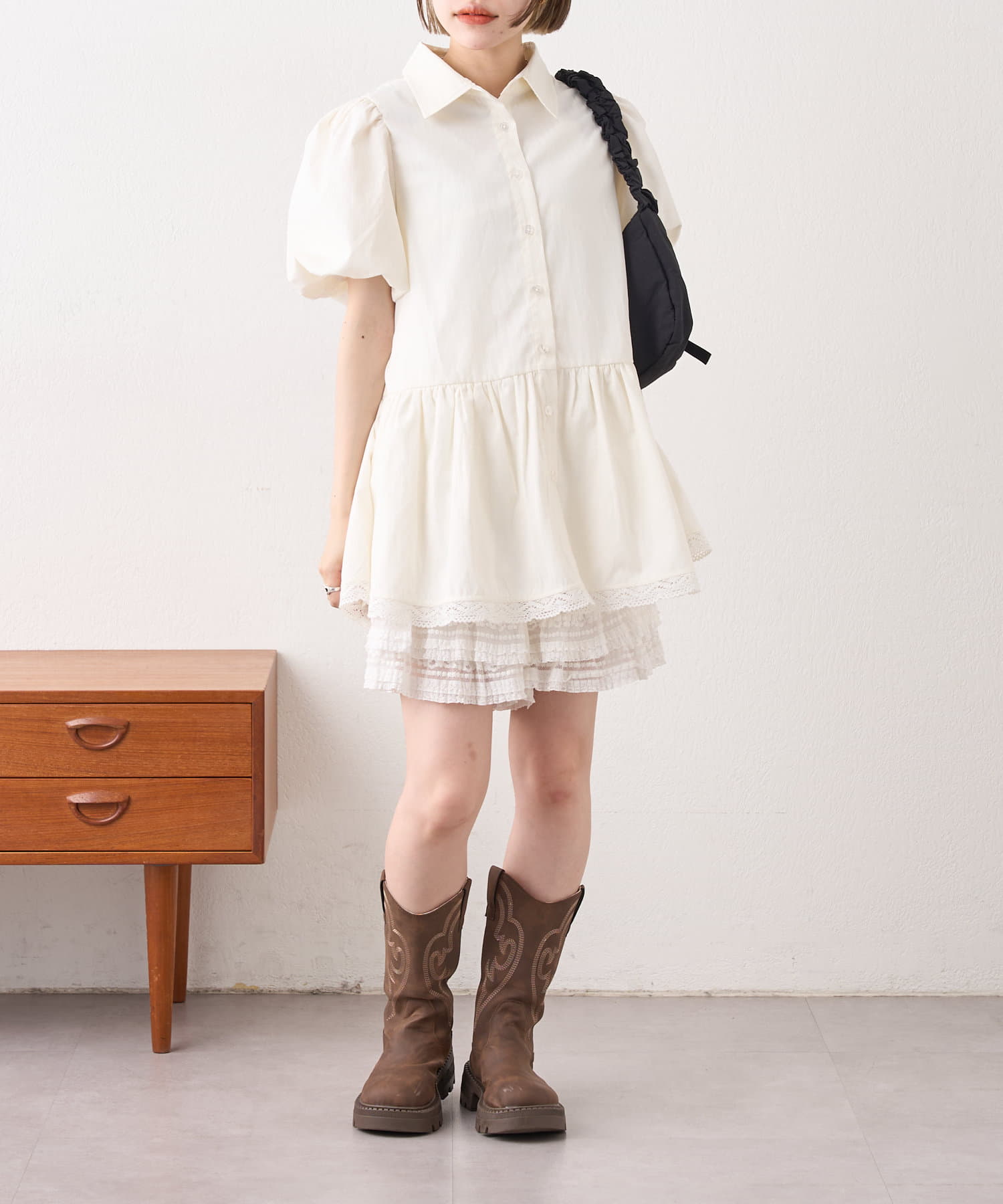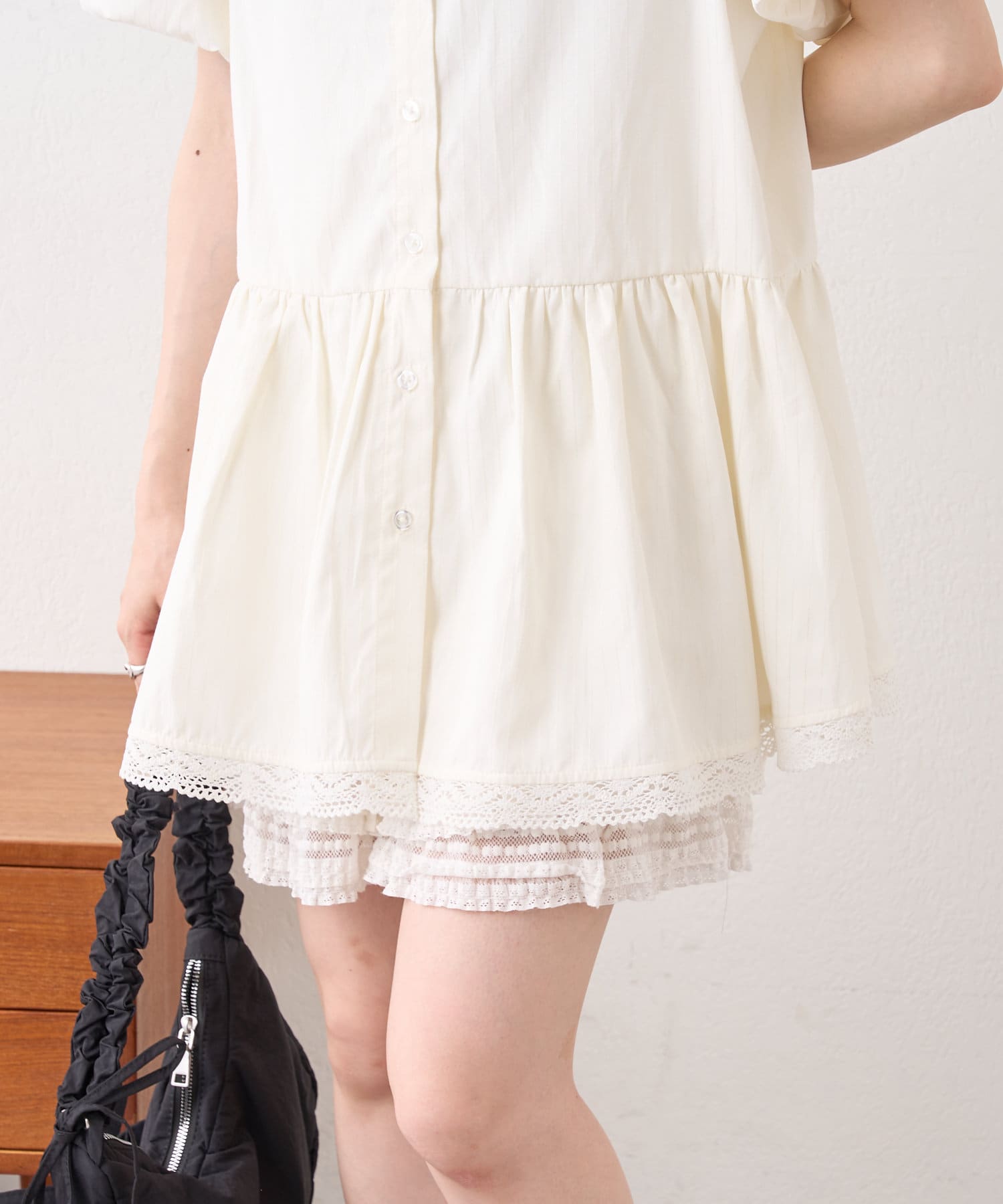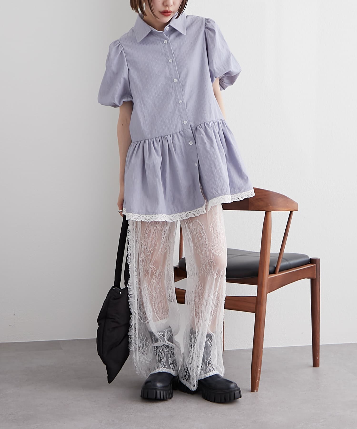 ・裾のレースがコーディネートにガーリーな雰囲気をプラス