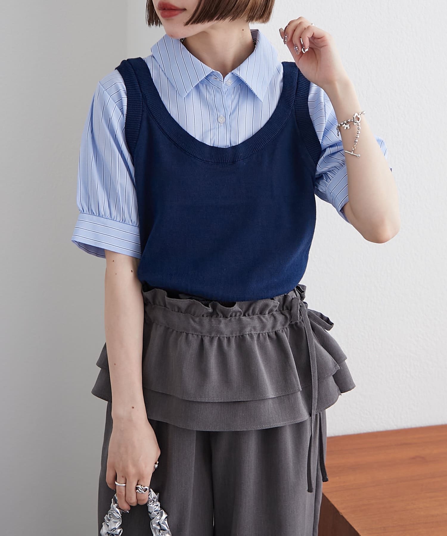 【w closet】半袖ドッキングベストシャツ