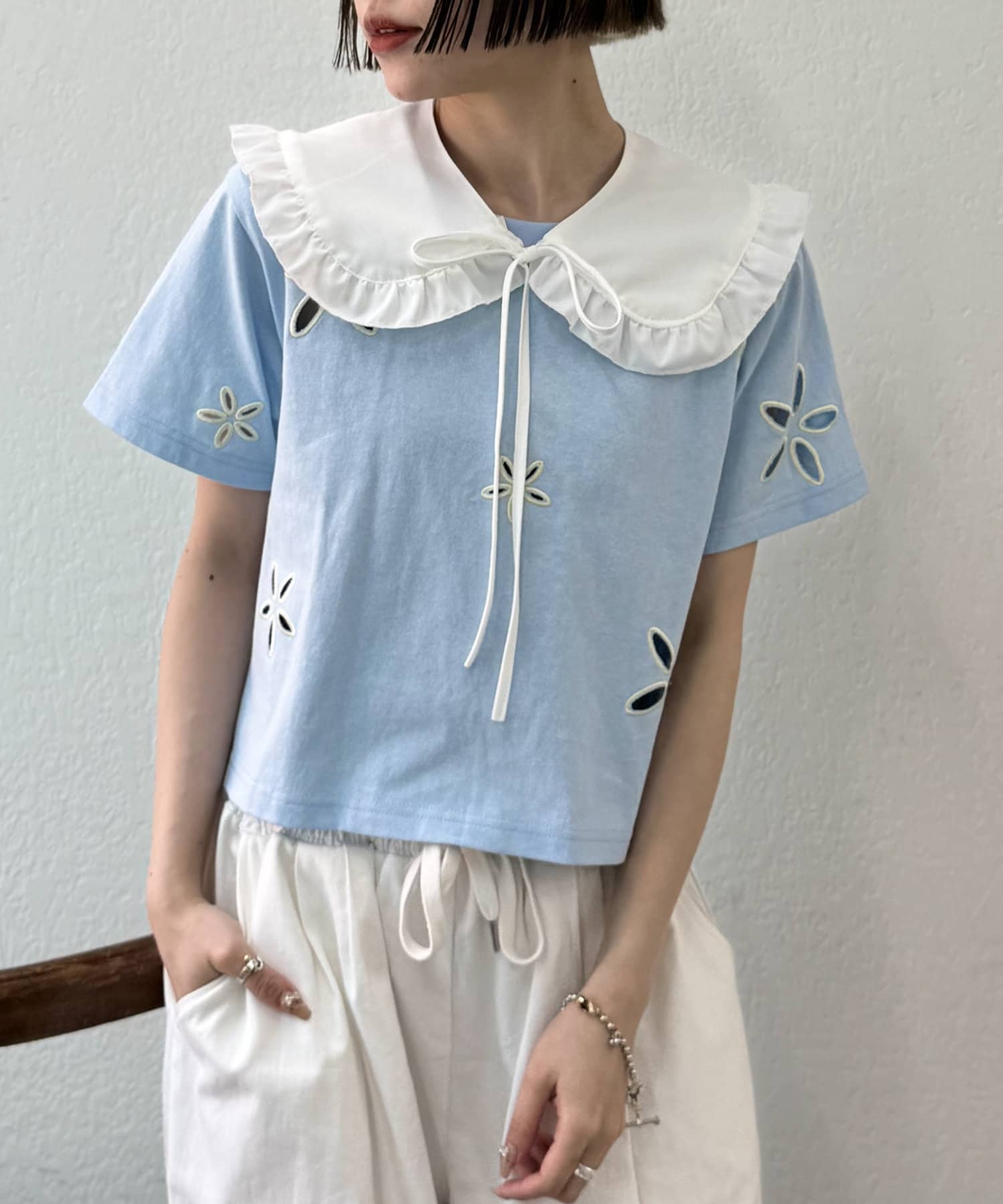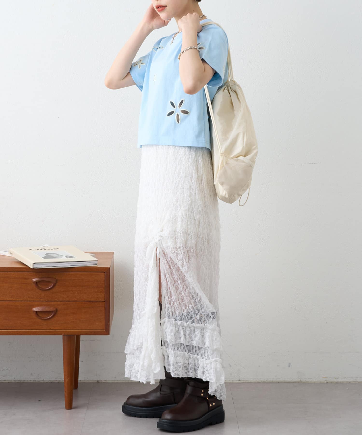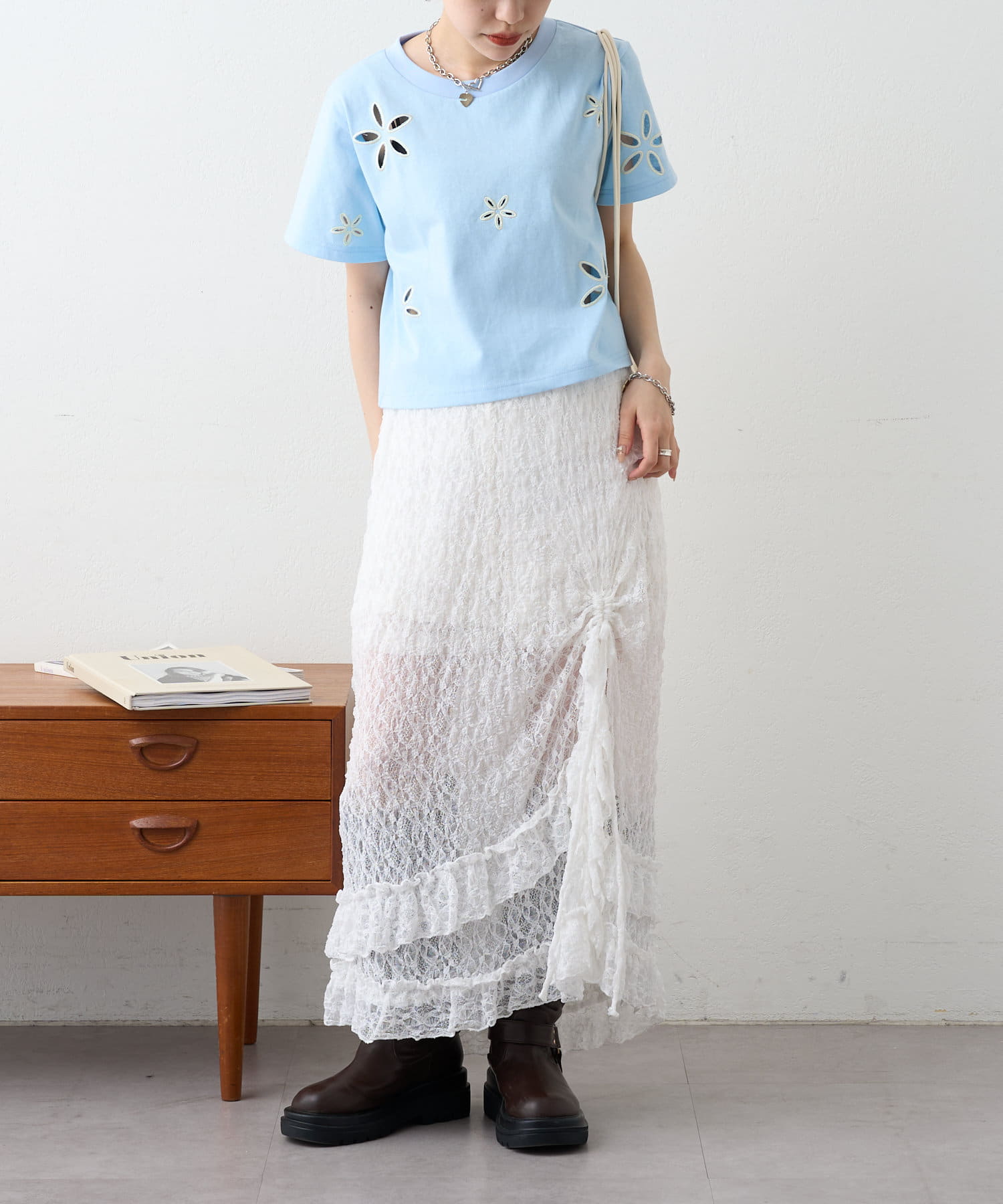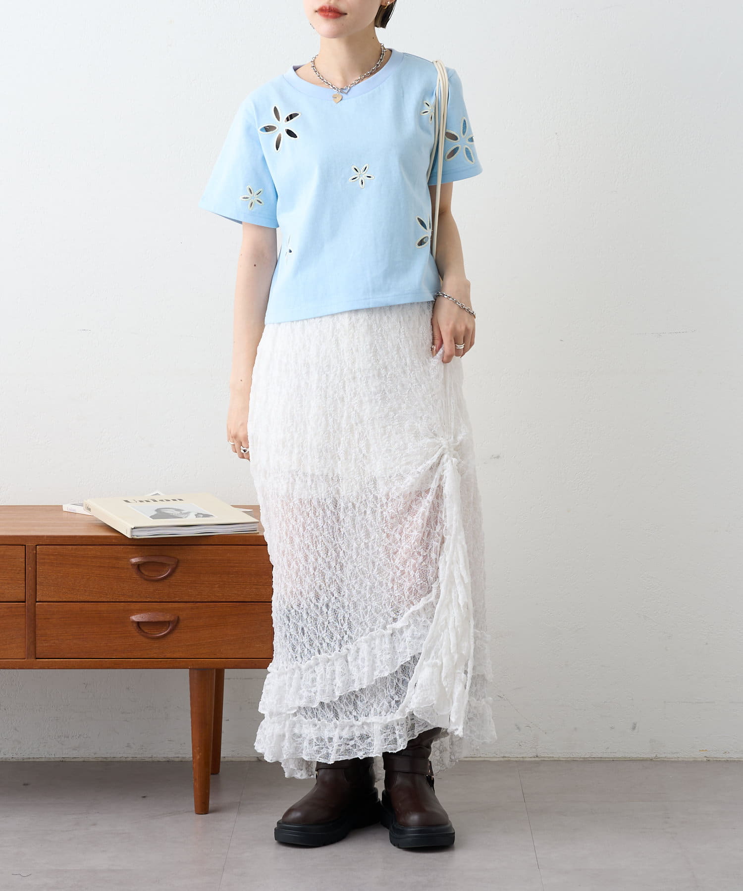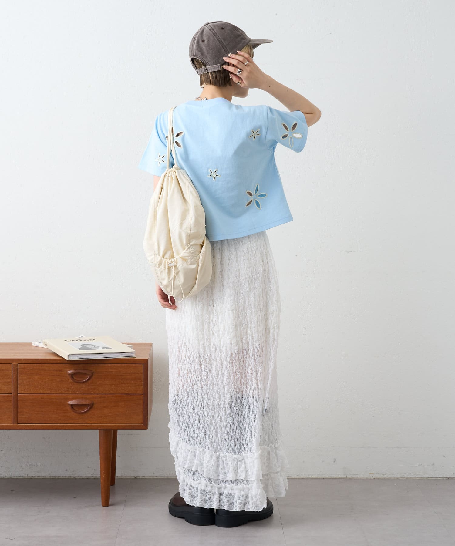 全体にフラワーカットアウトが施されたTシャツが登場!