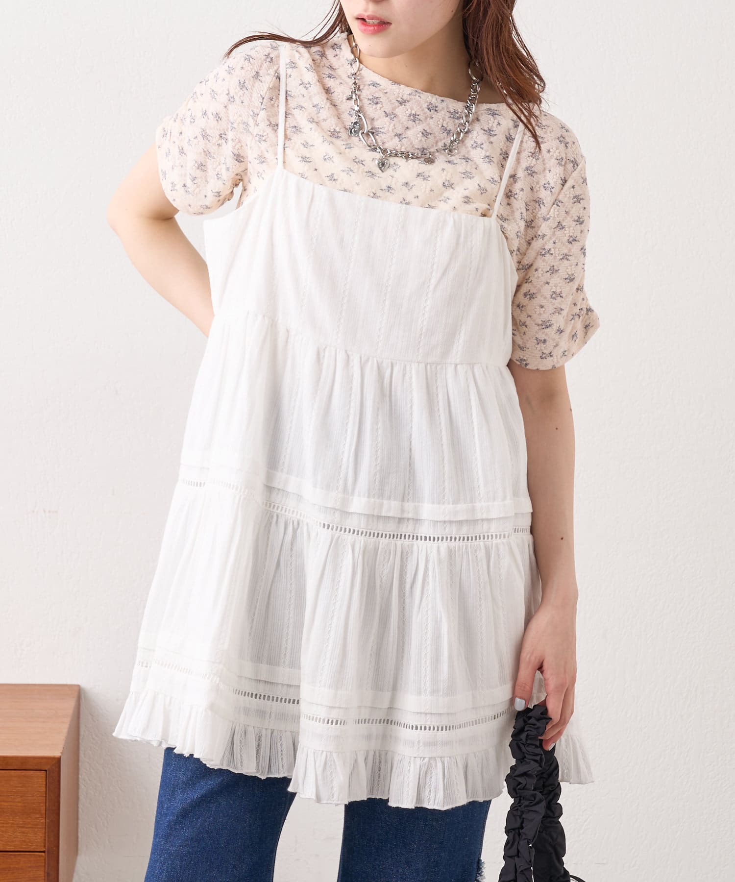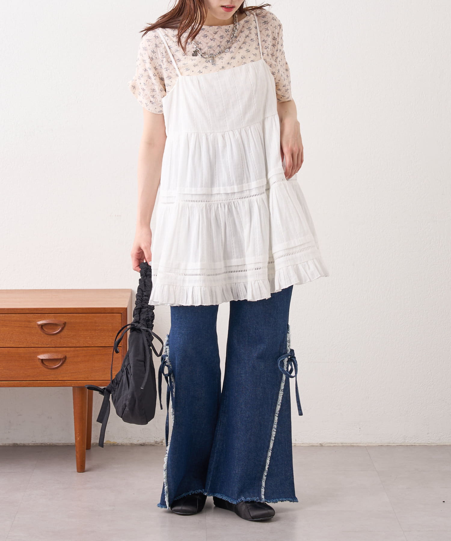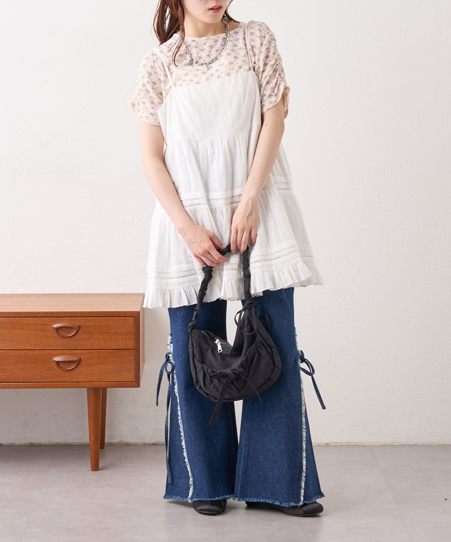 ・クロップド丈のインナーを合わせて一枚で着ても◎