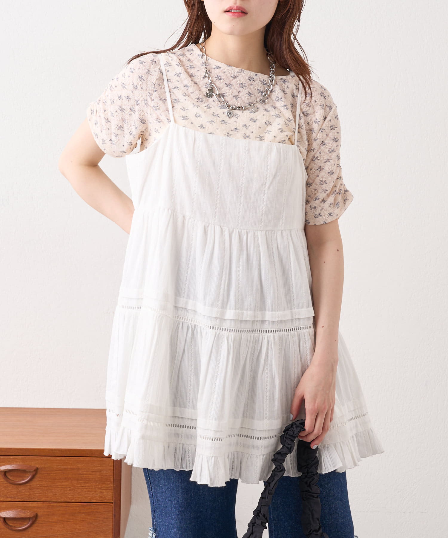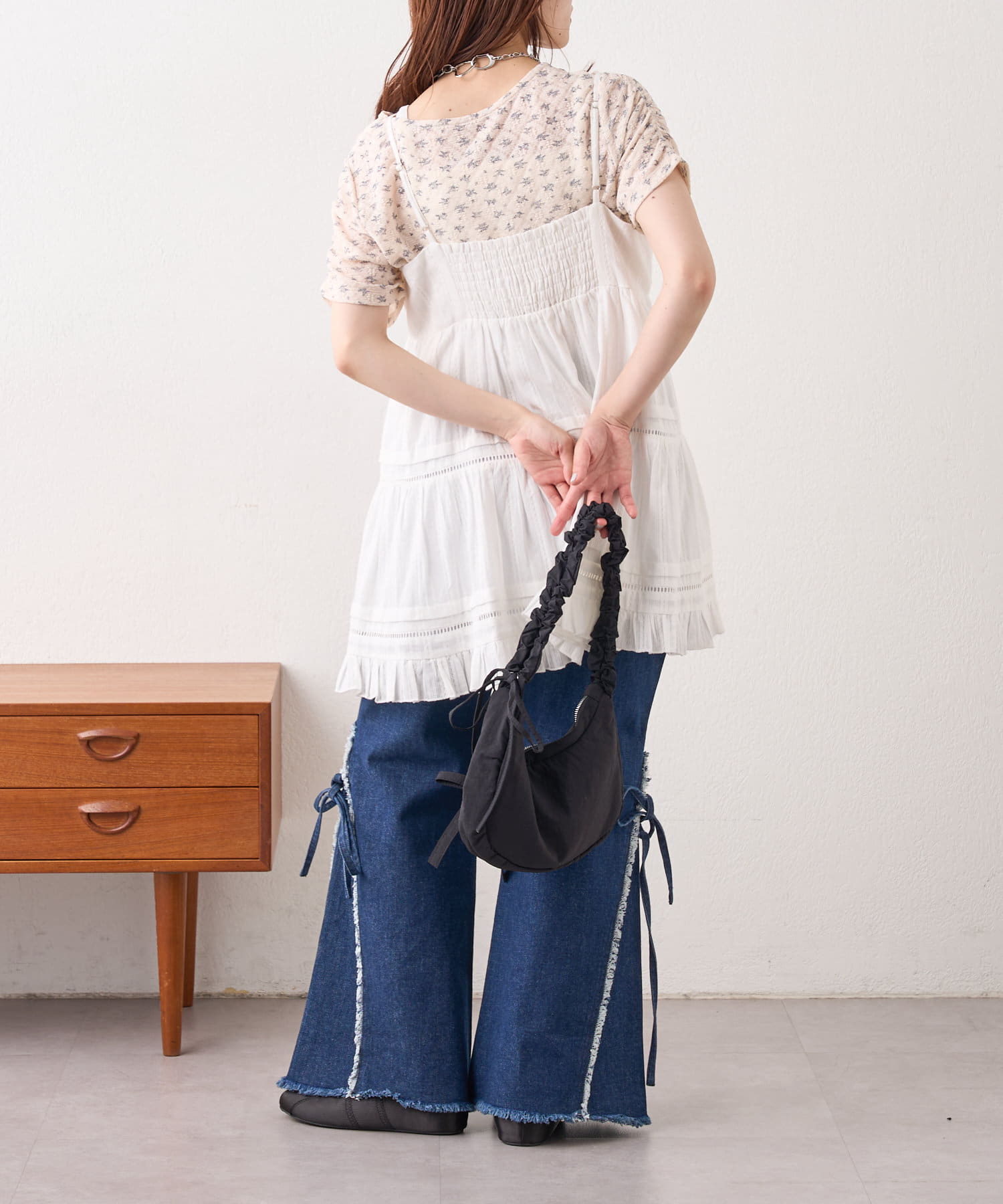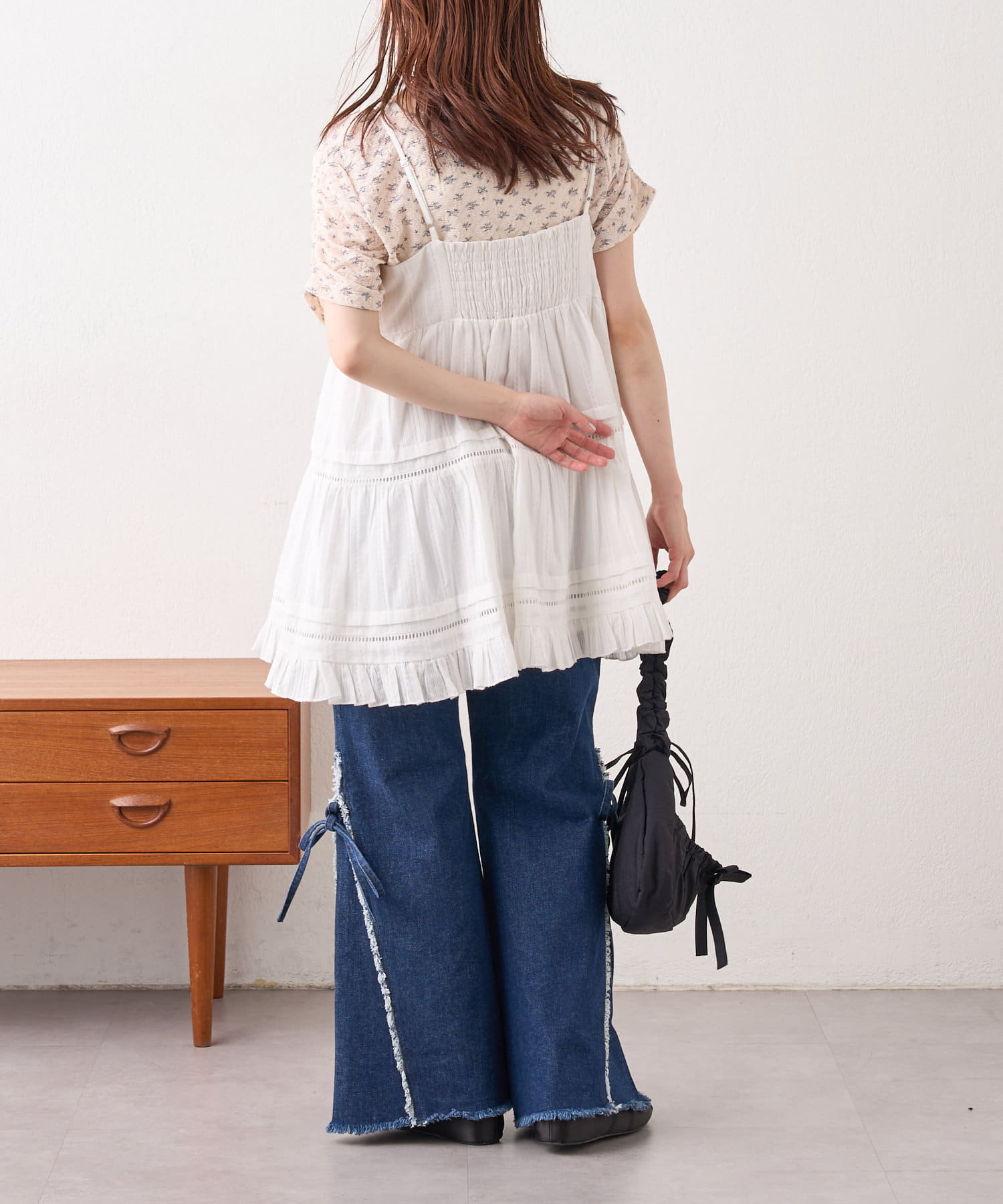 ・クロップド丈のインナーを合わせて一枚で着ても◎