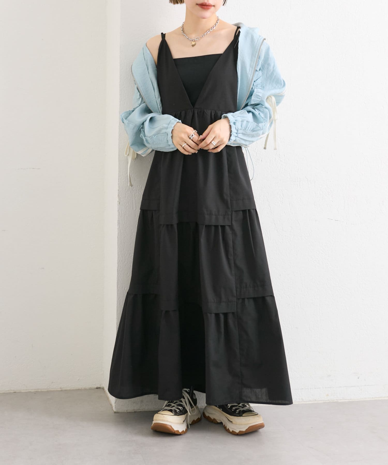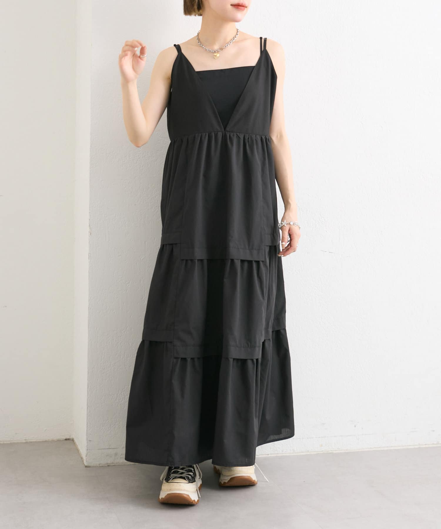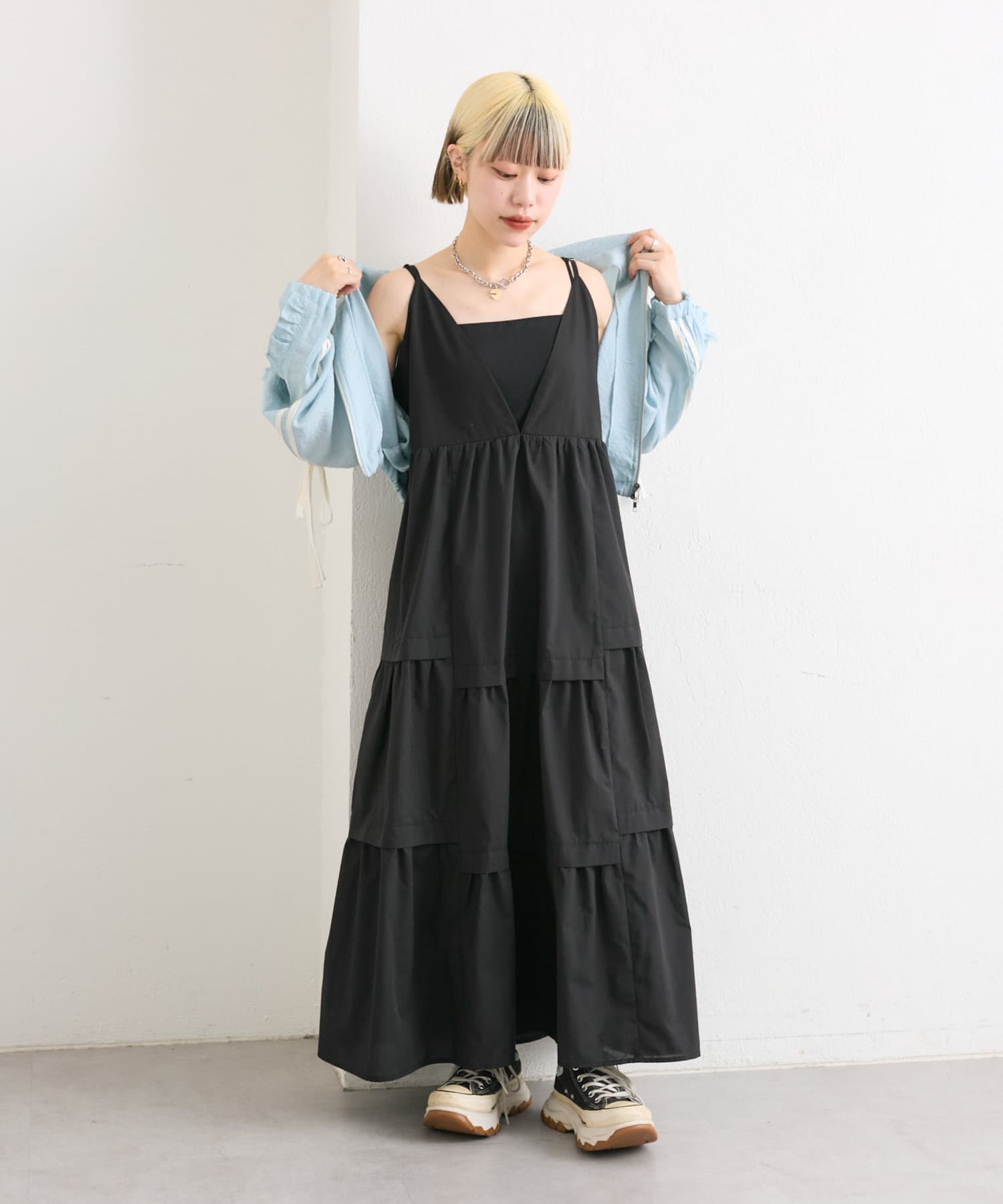 タックデザインがポイントのギャザーたっぷりキャミワンピース♡