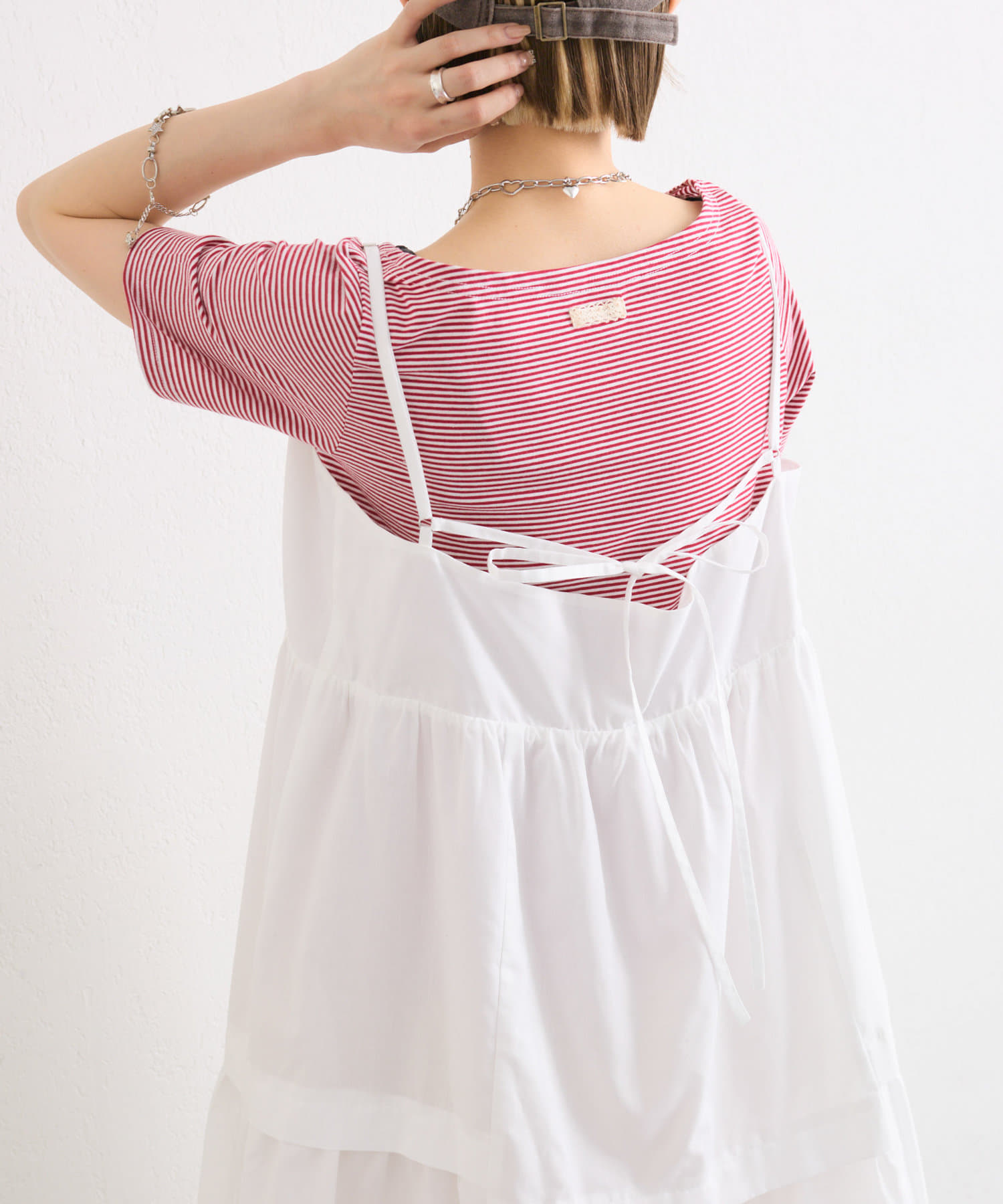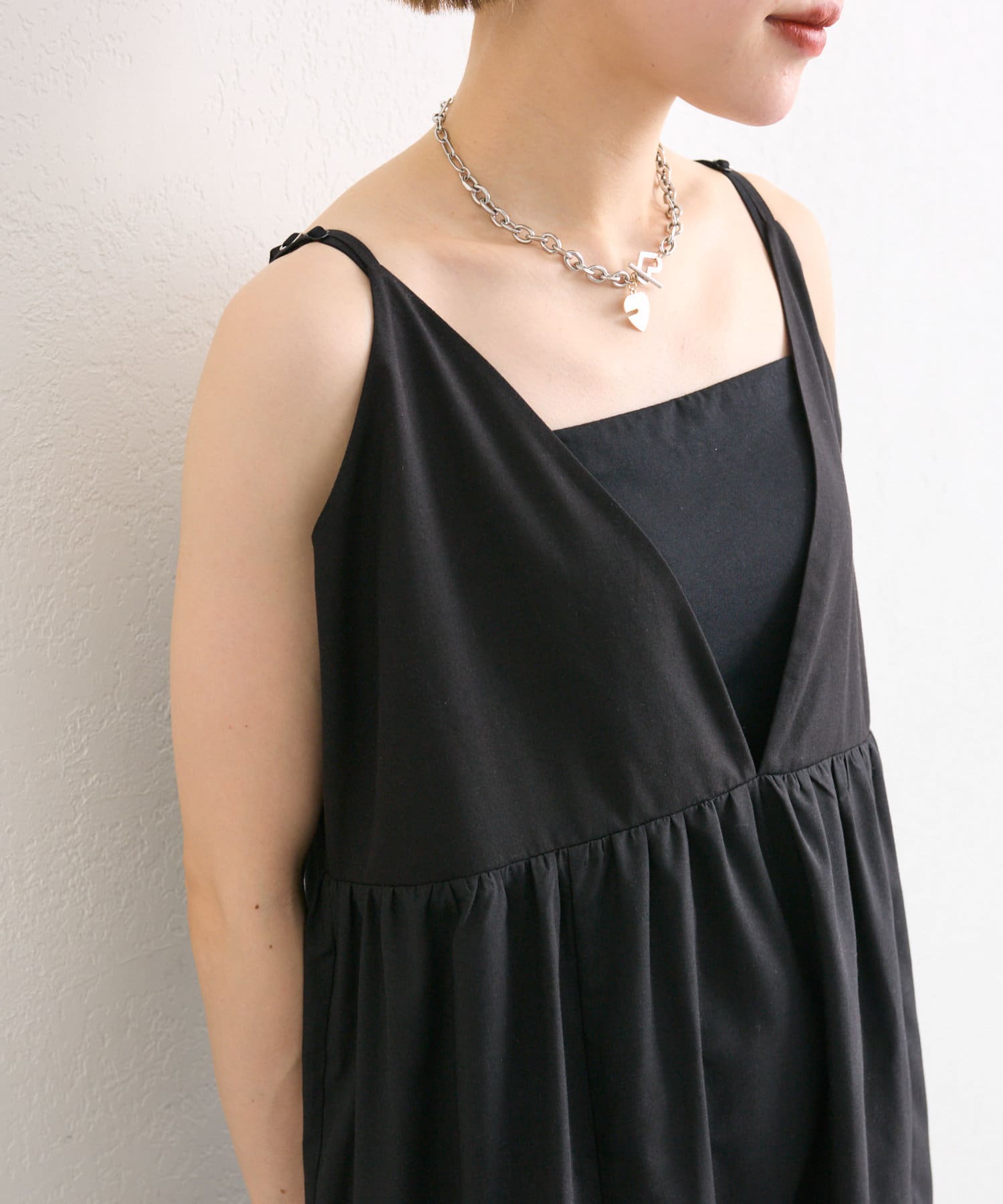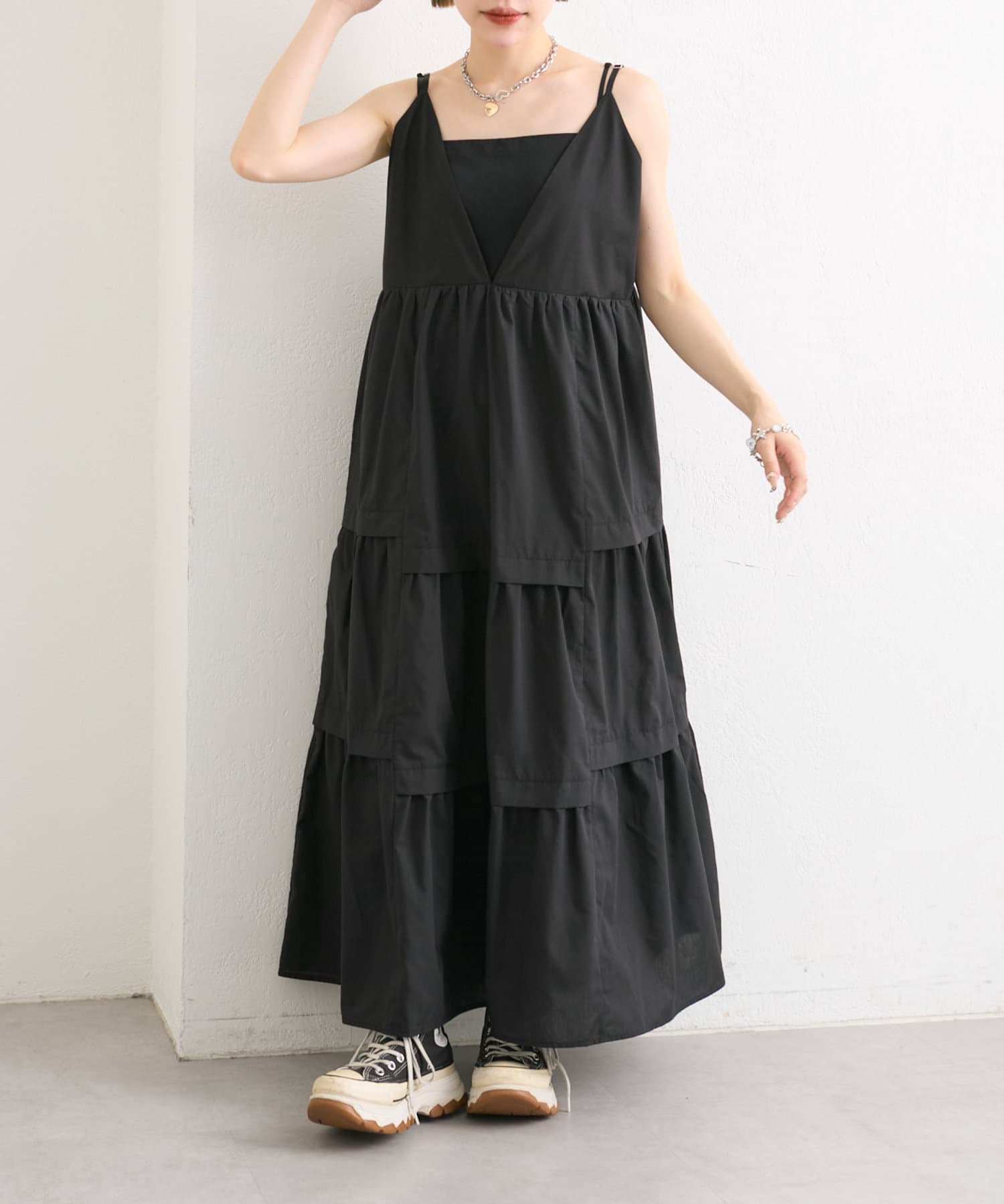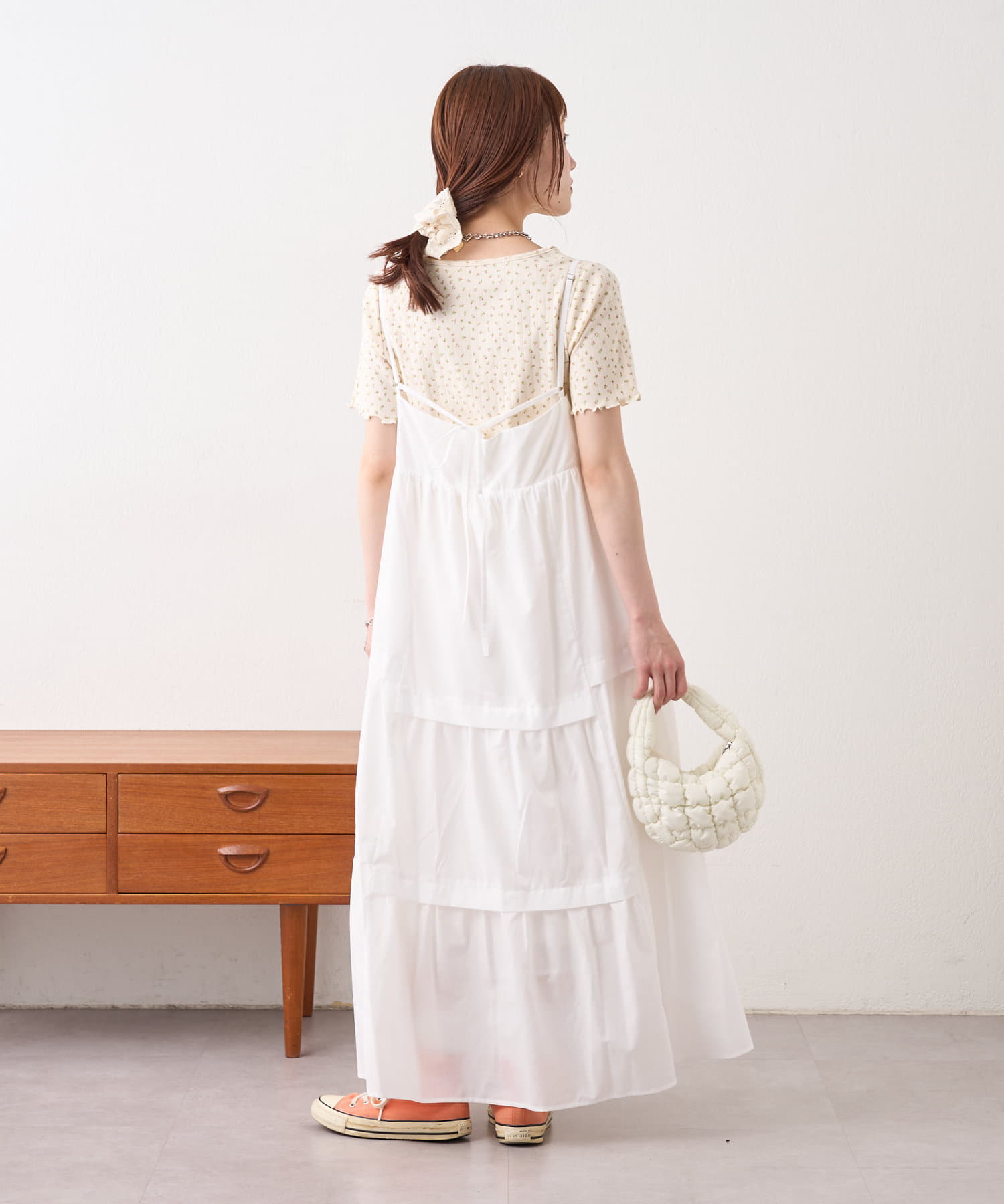 タックデザインがポイントのギャザーたっぷりキャミワンピース♡