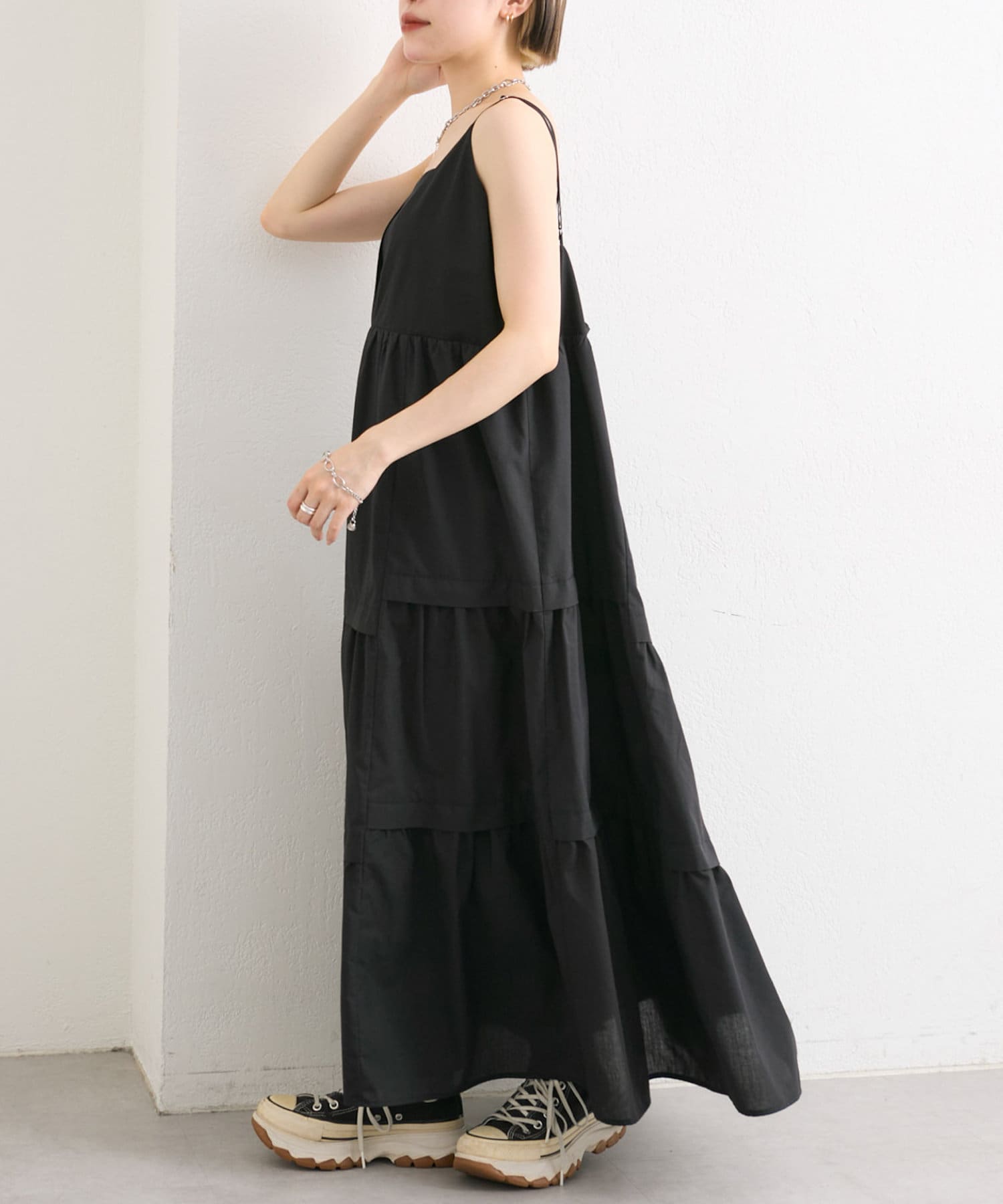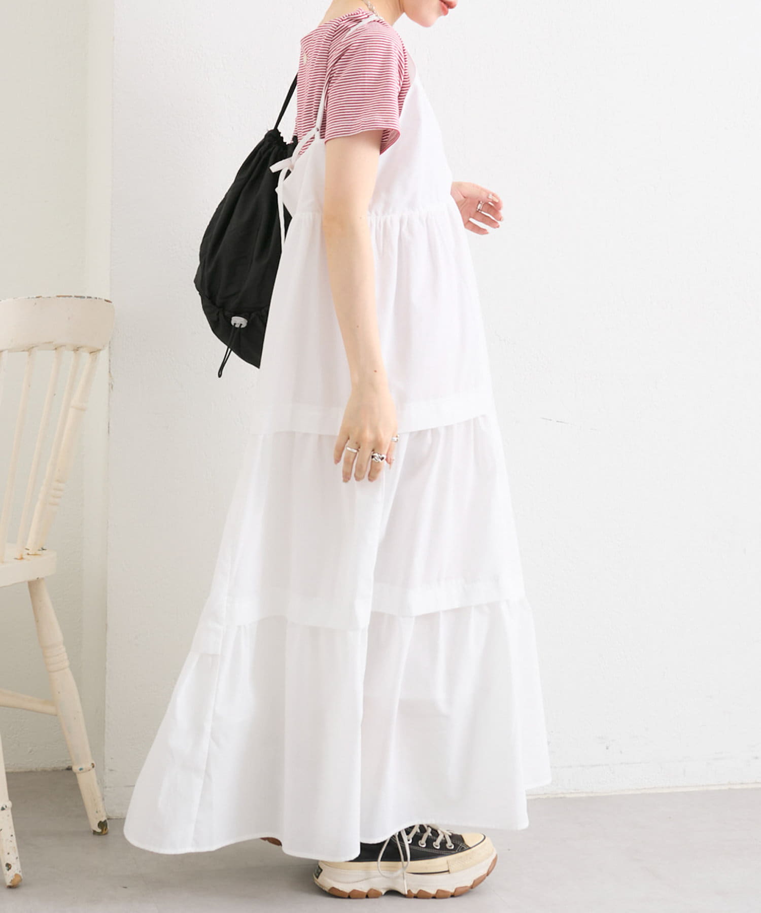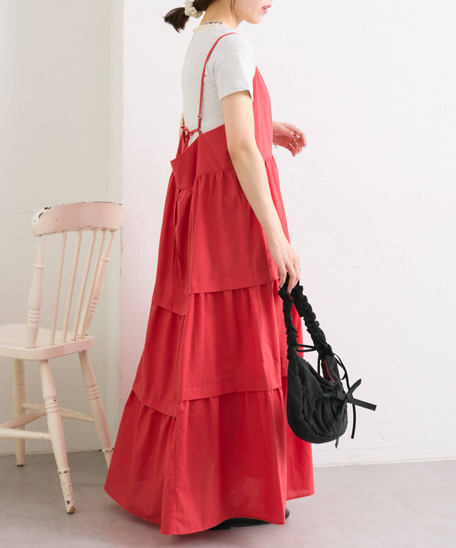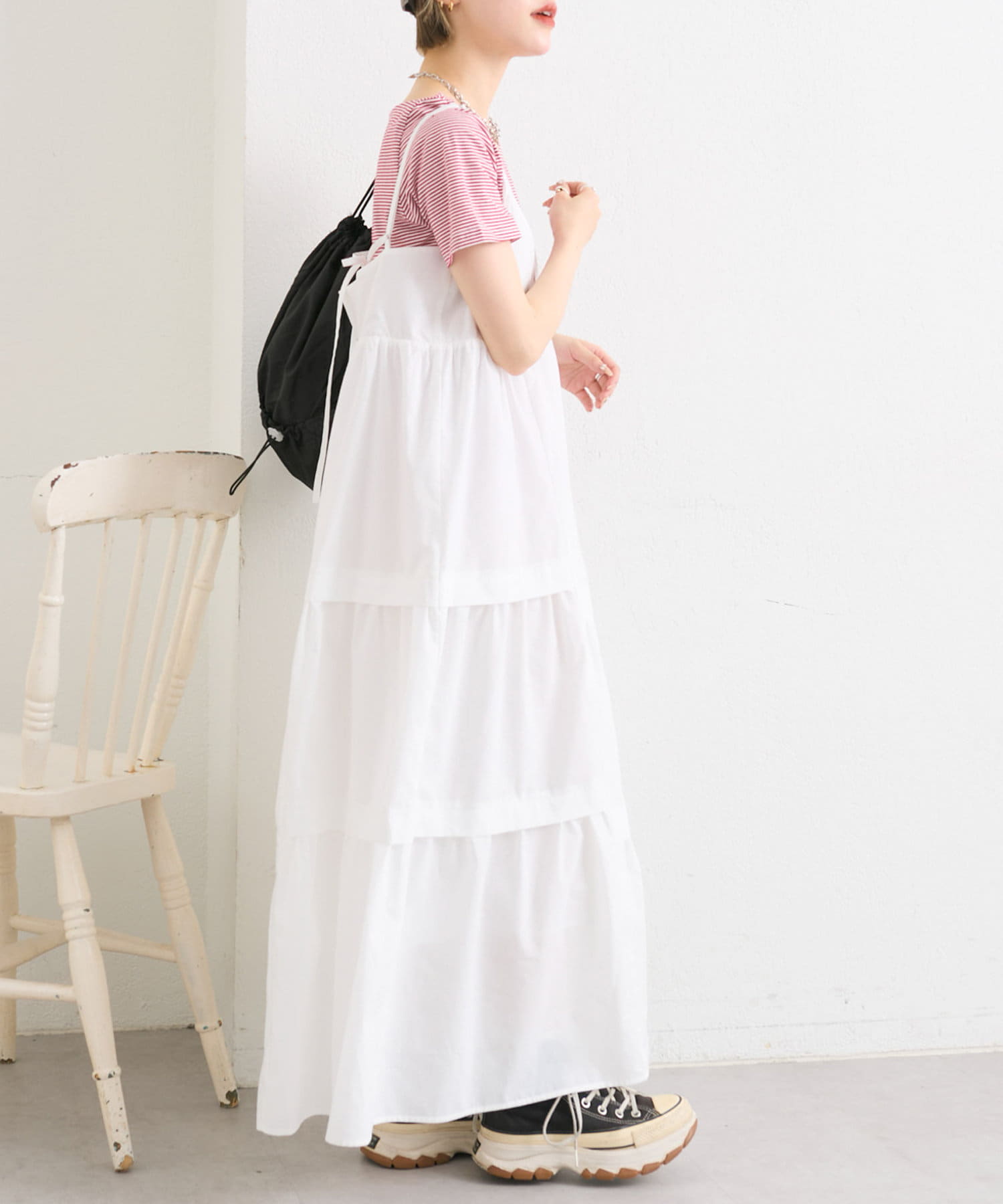 ・Aラインに広がるシルエットで一枚でもお出かけスタイルが完成する便利なキャミワンピース
