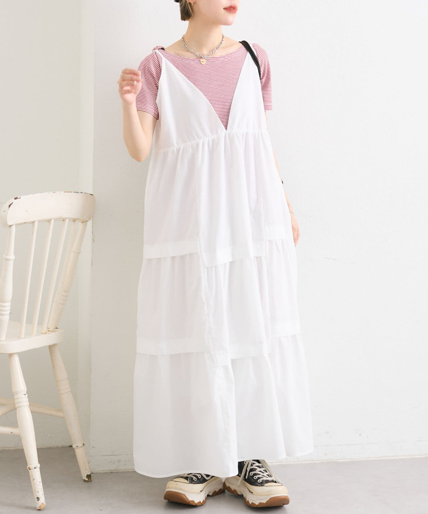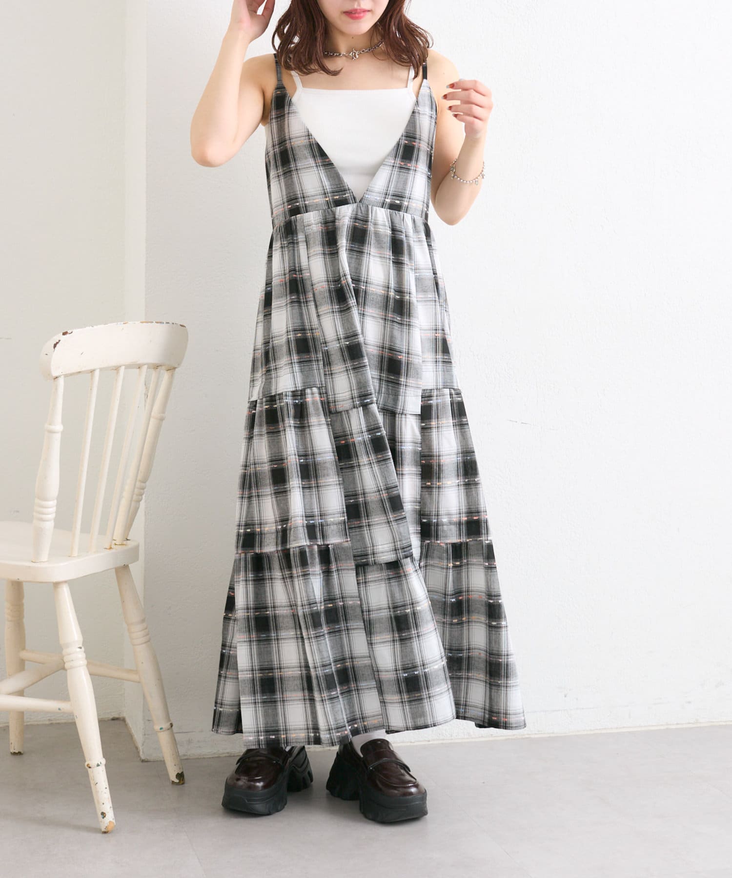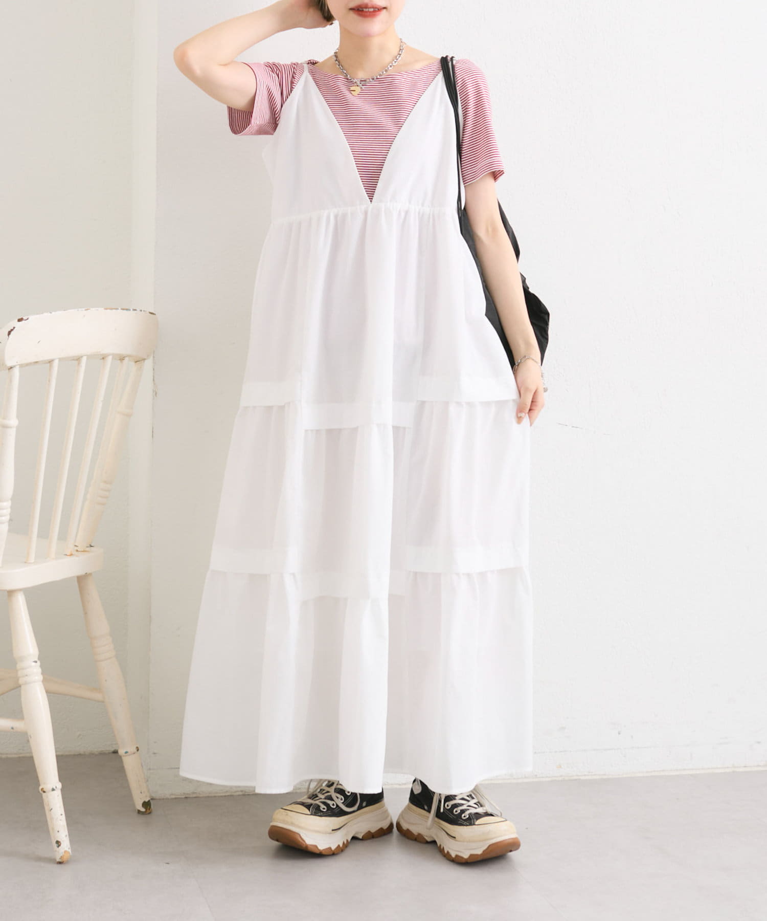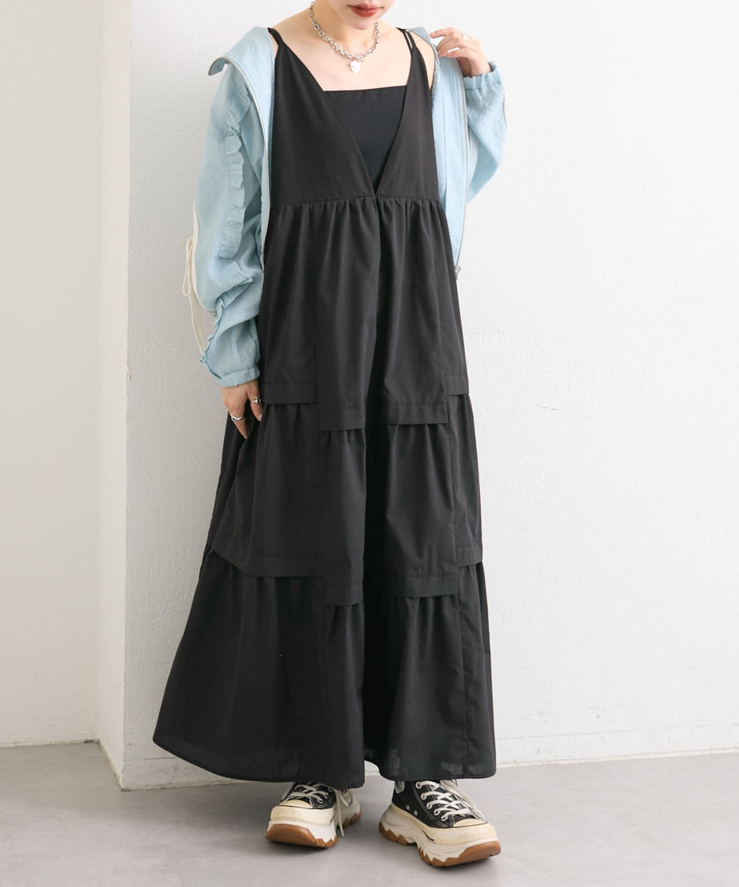 ・Aラインに広がるシルエットで一枚でもお出かけスタイルが完成する便利なキャミワンピース
