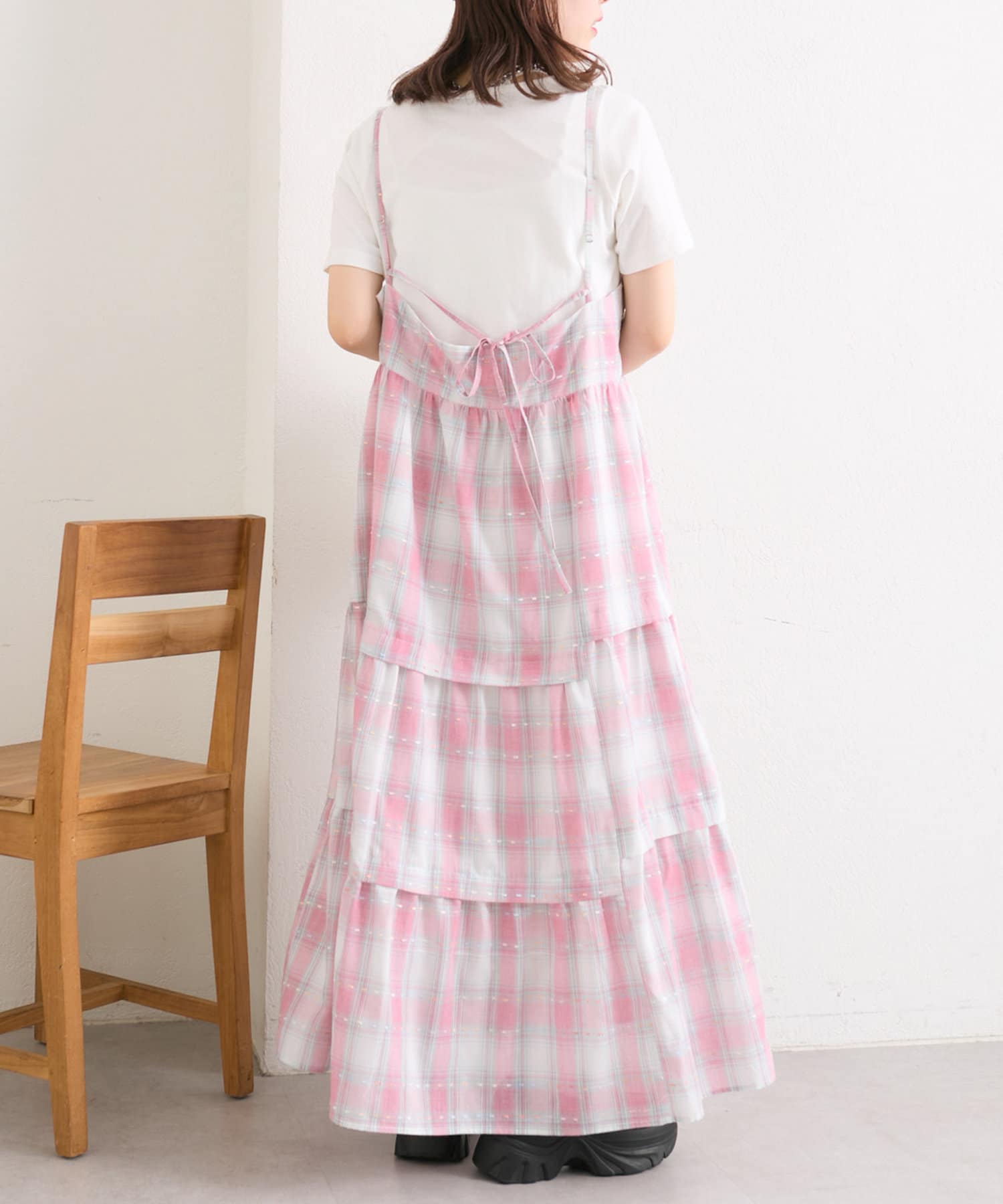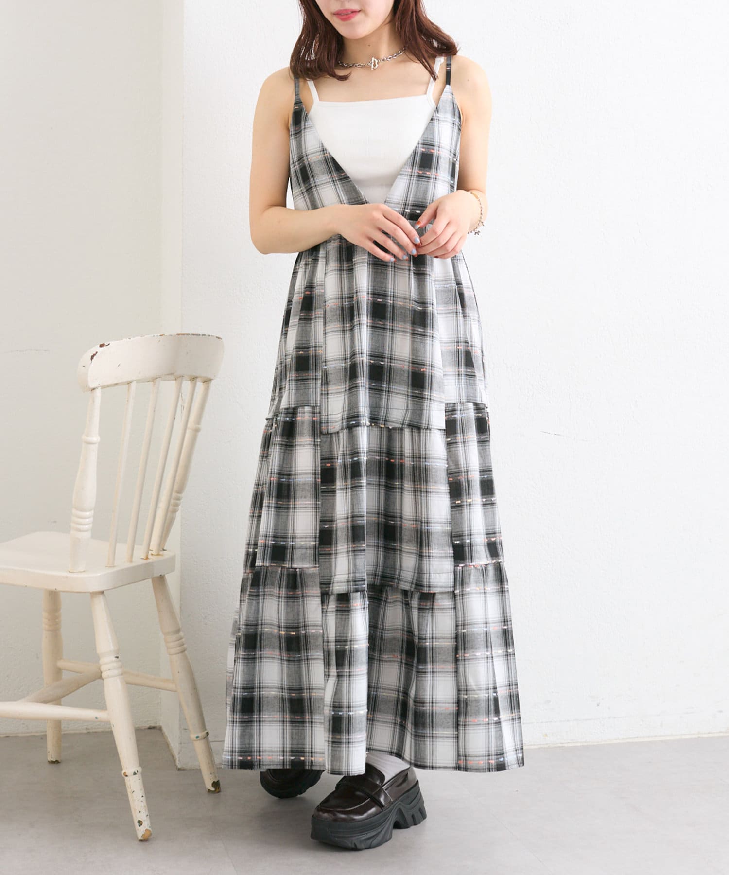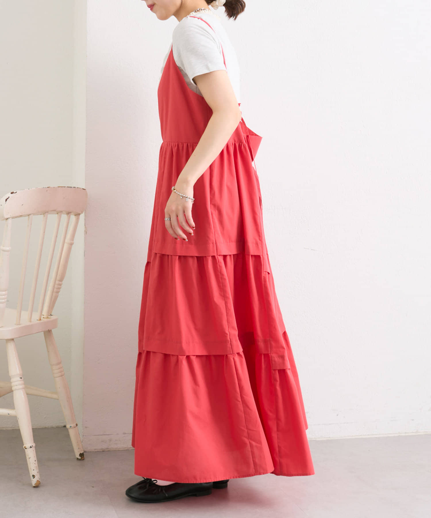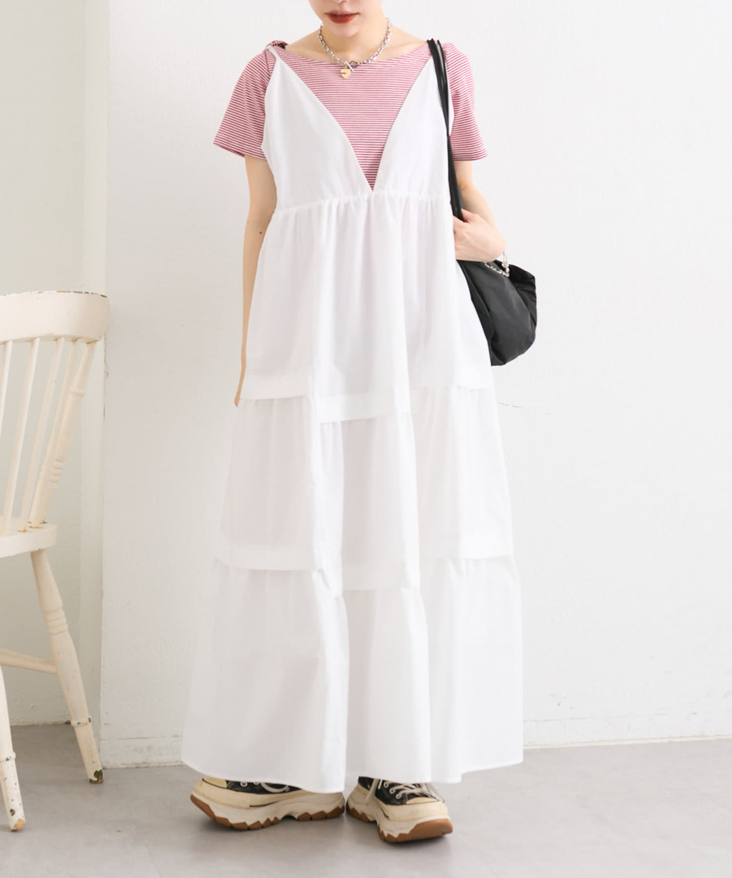 ・Aラインに広がるシルエットで一枚でもお出かけスタイルが完成する便利なキャミワンピース