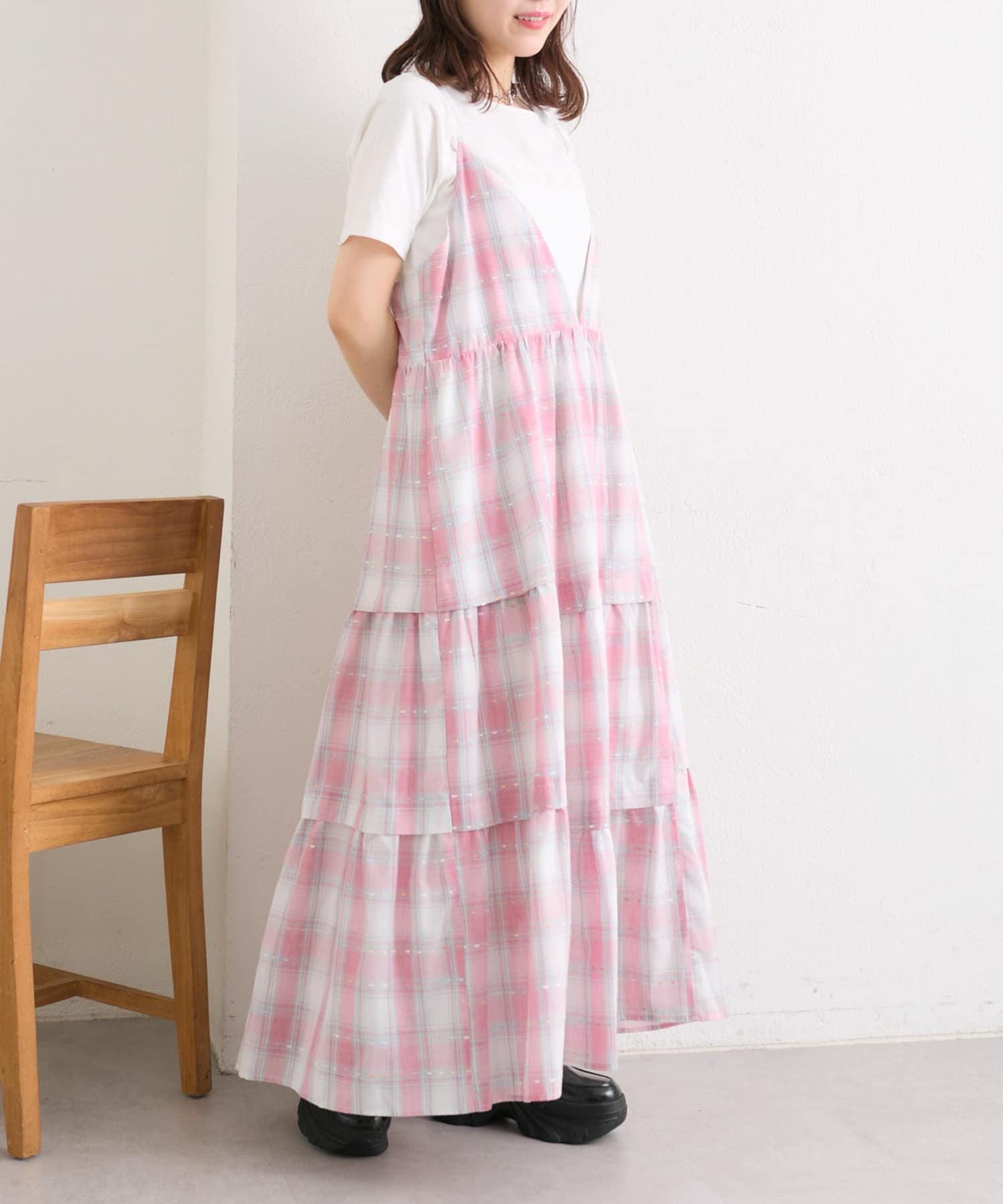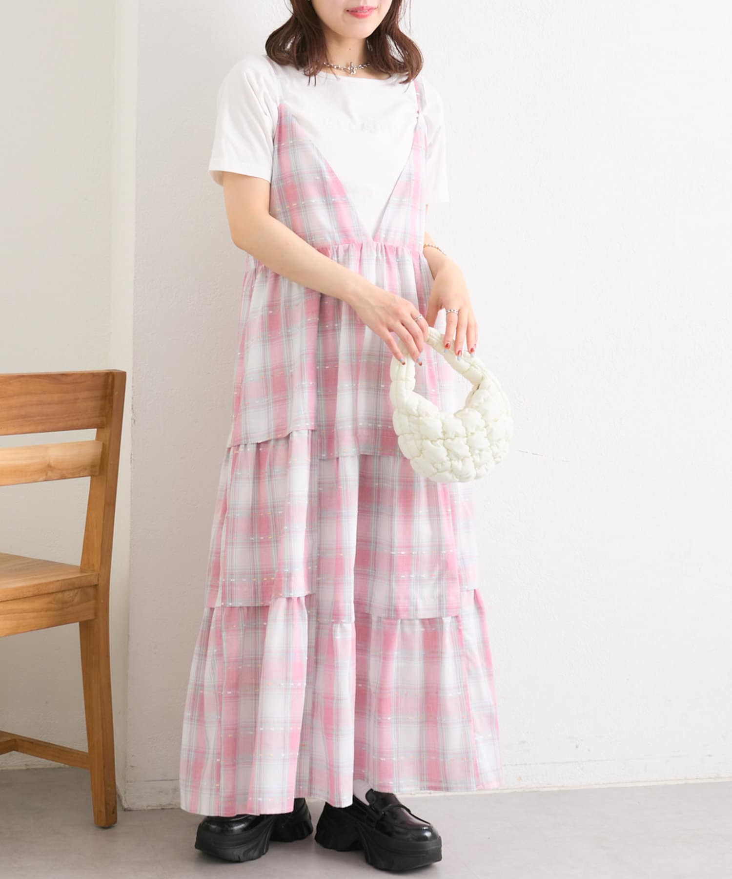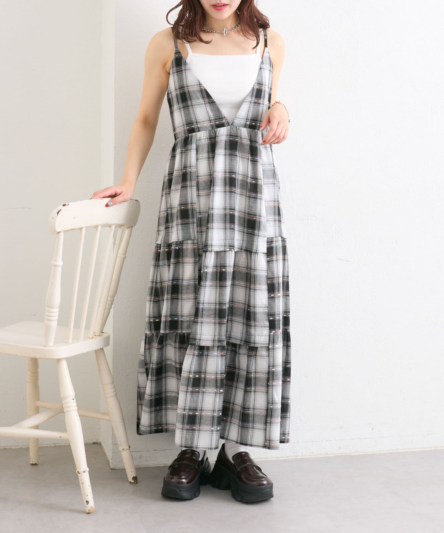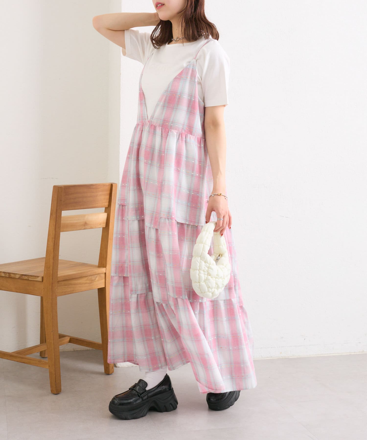 ・Aラインに広がるシルエットで一枚でもお出かけスタイルが完成する便利なキャミワンピース