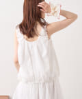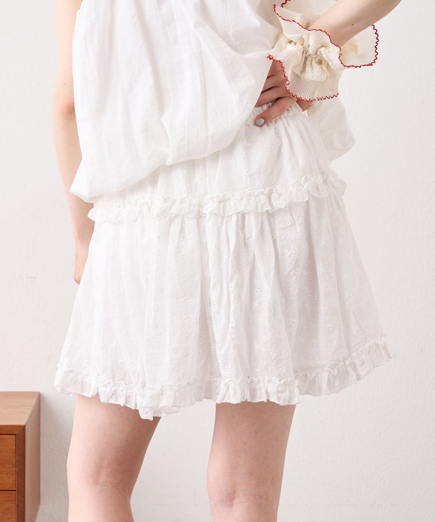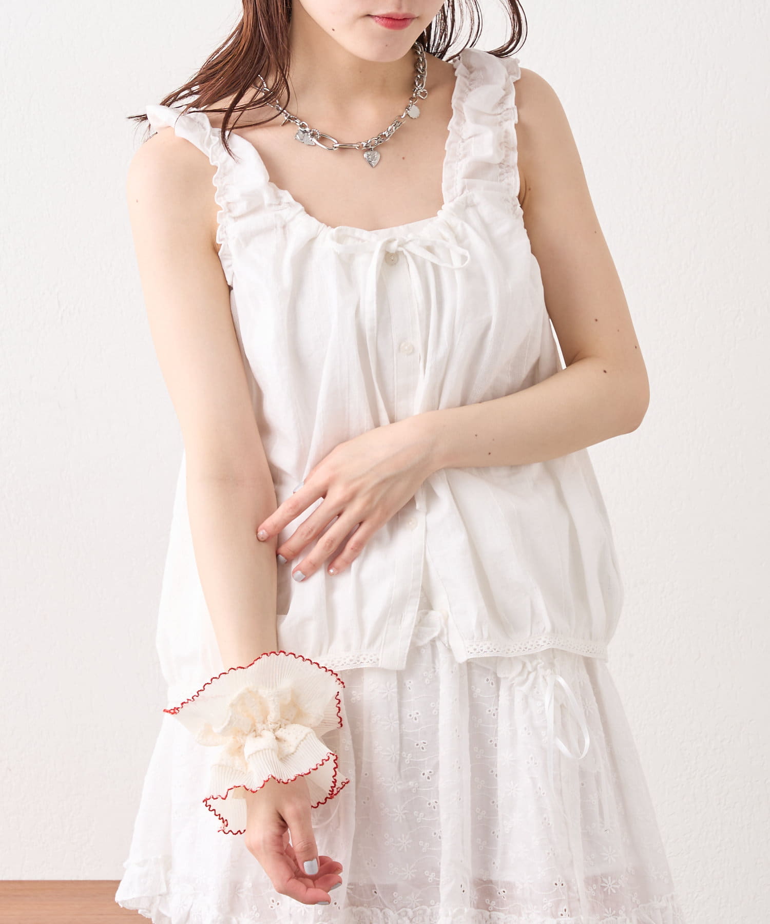 ・シアー感のあるプリーツとレースの組み合わせ!赤色のフリフリラインがポイント!