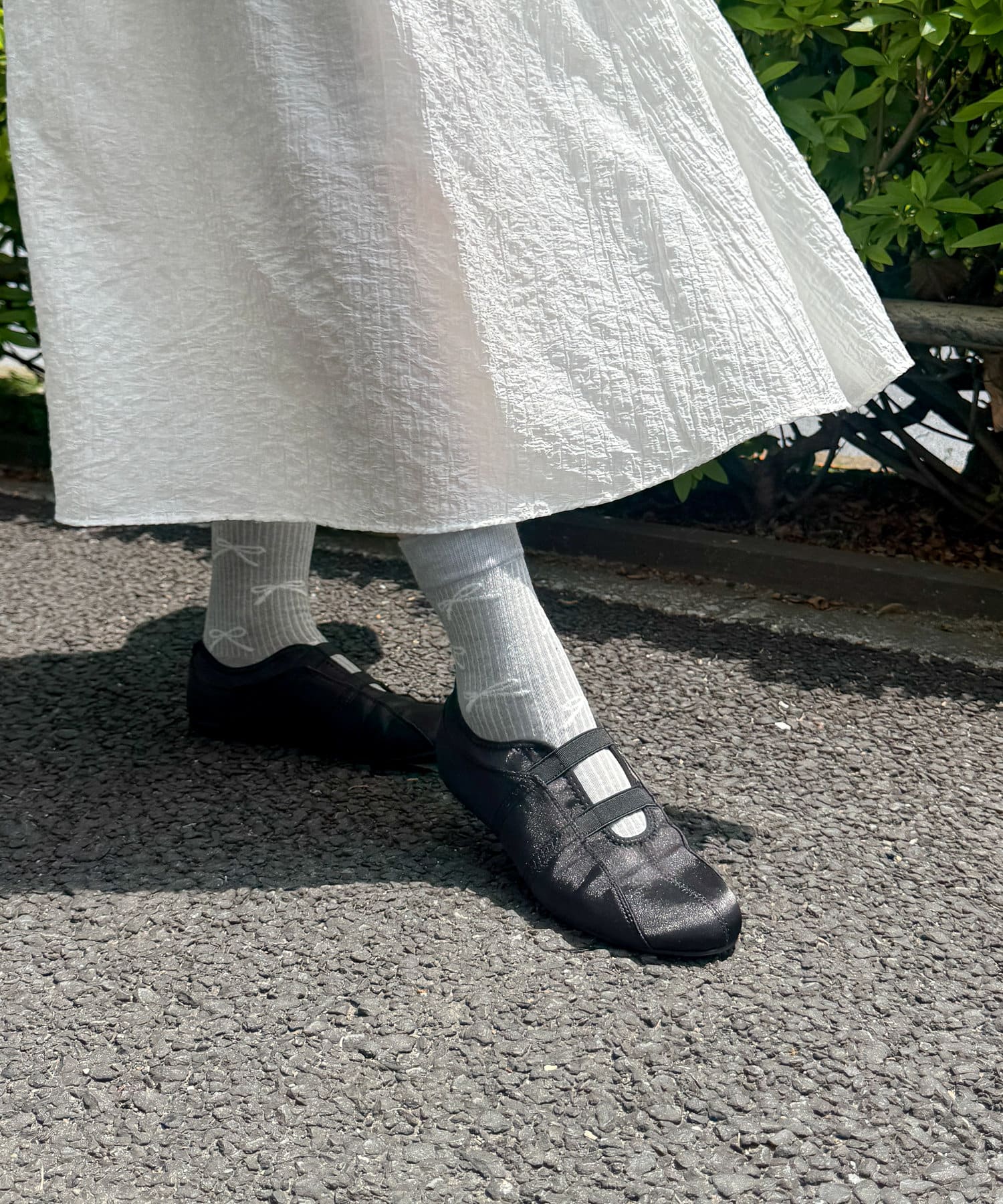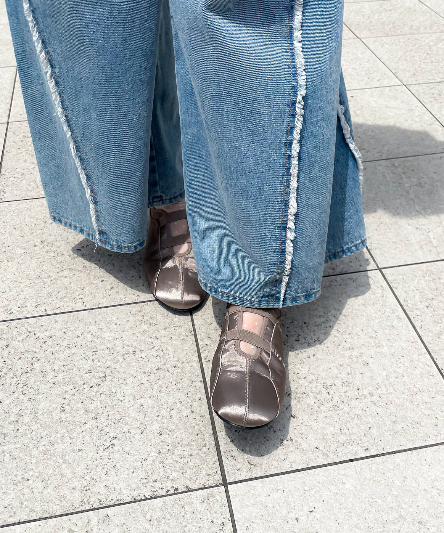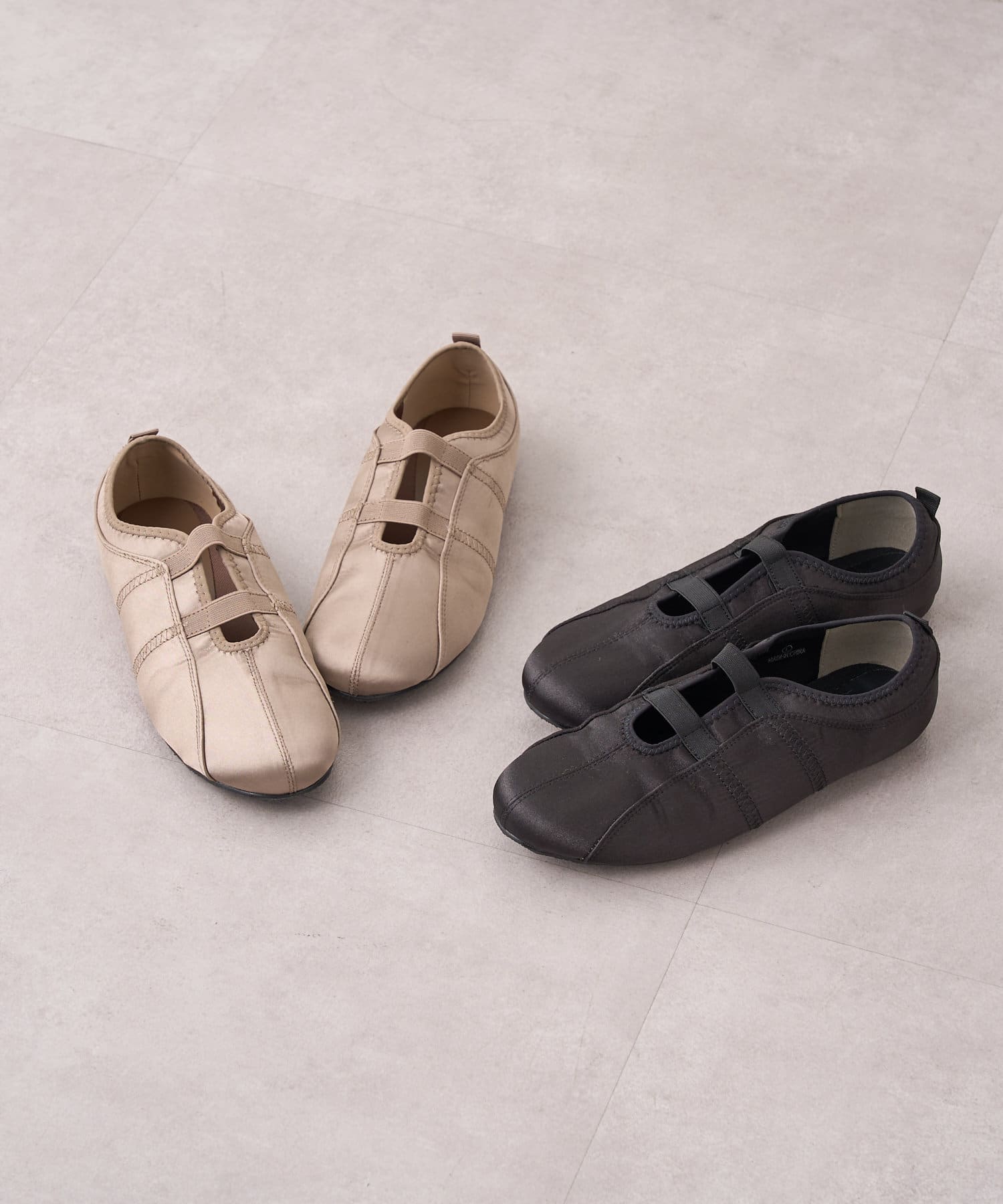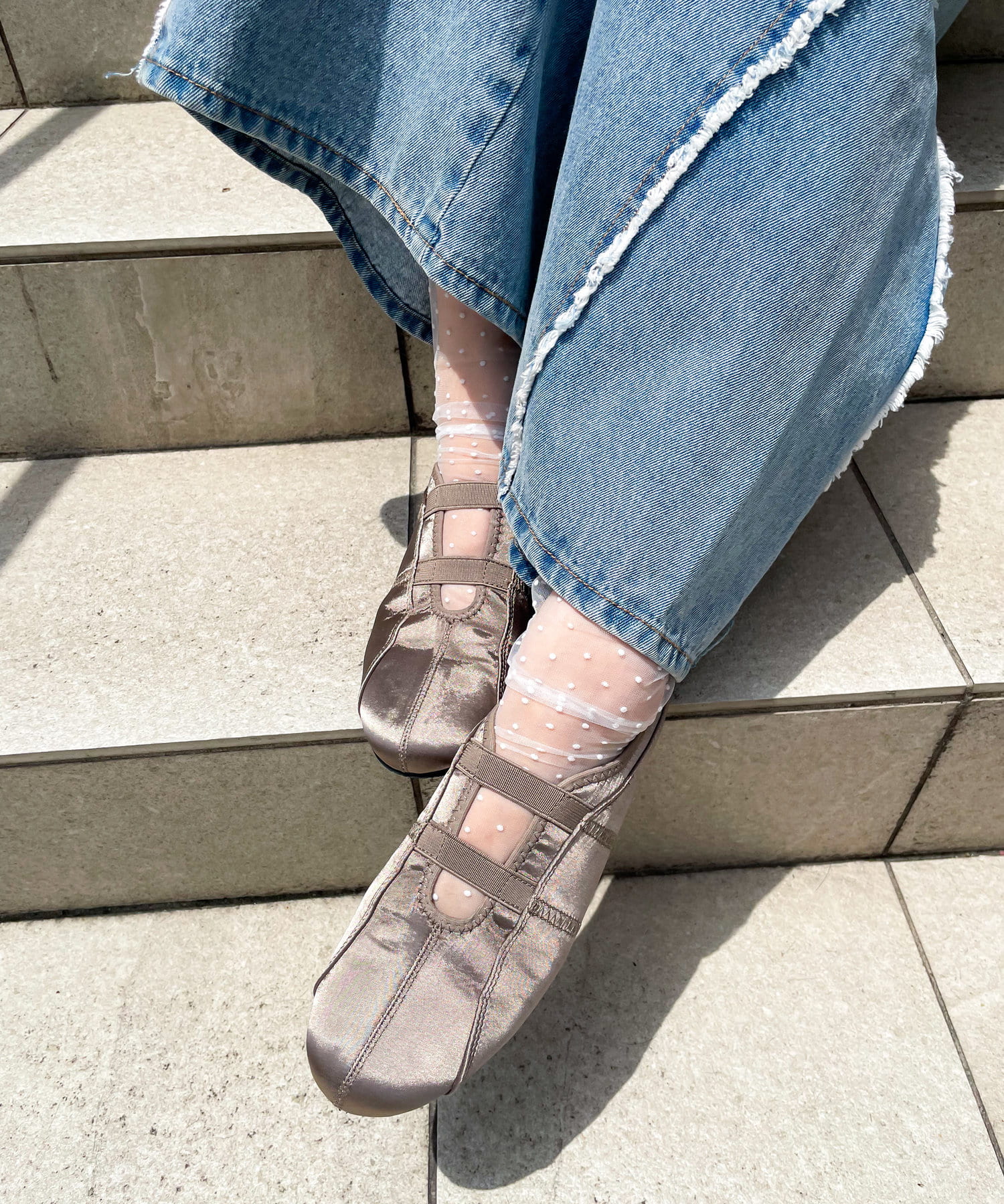 ・光沢と上品さのあるバレエコアなサテンのフラットシューズ