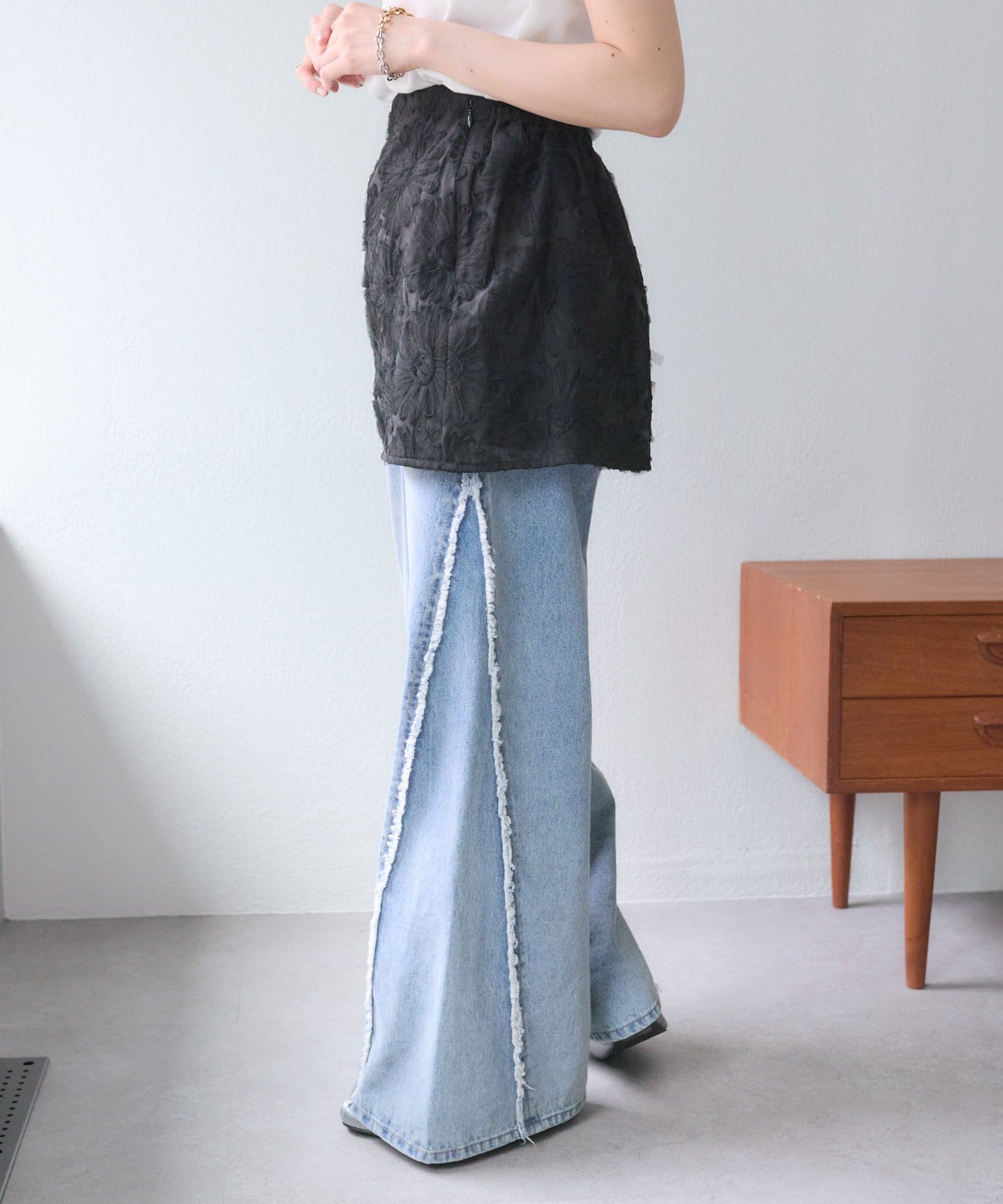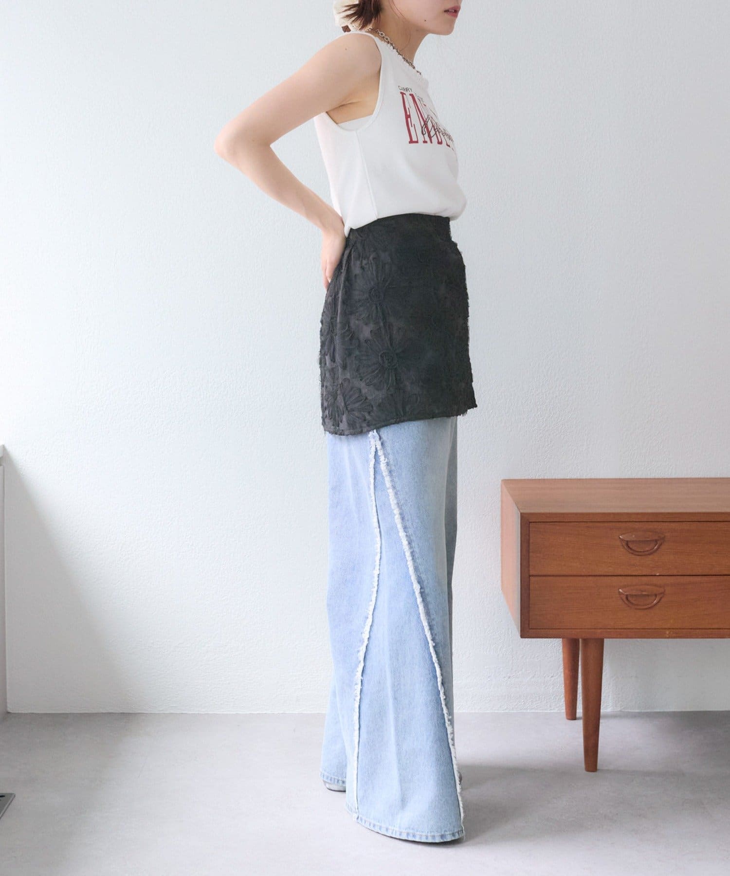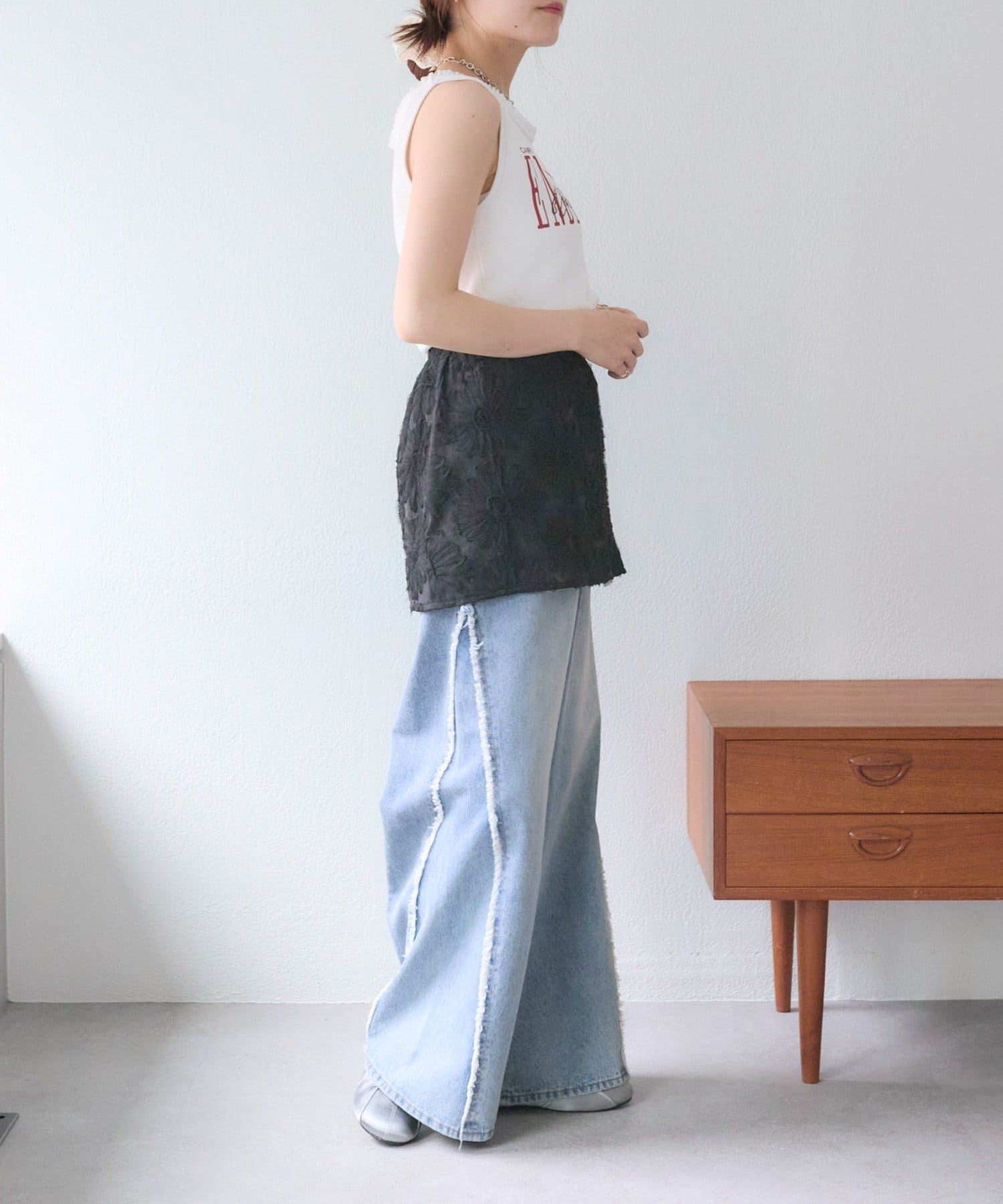 ・短めのトップスと合わせるとスッキリ見えます