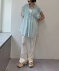 ・透け感もあり軽めの見た目でミニスカートとのレイヤードの相性も◎