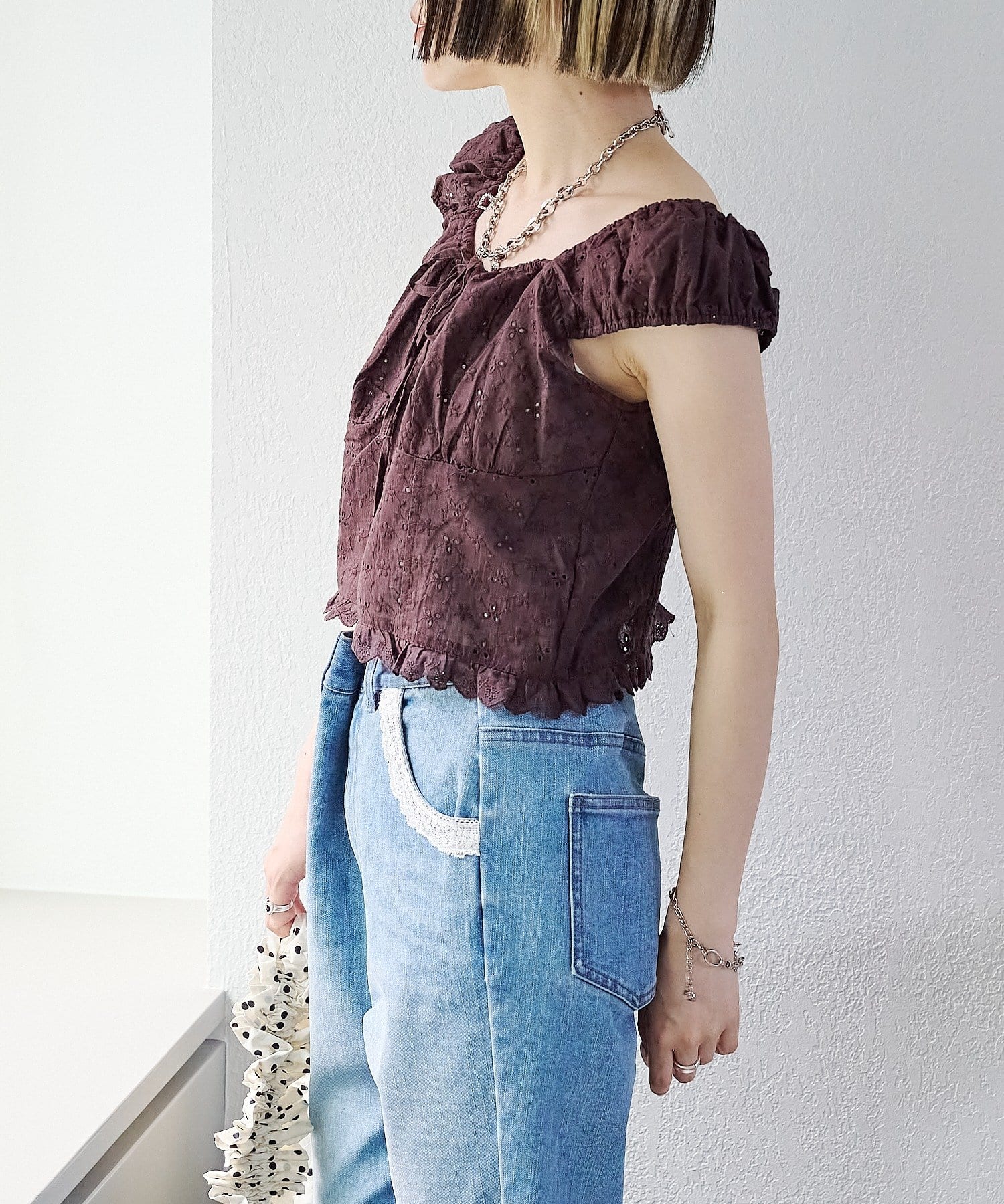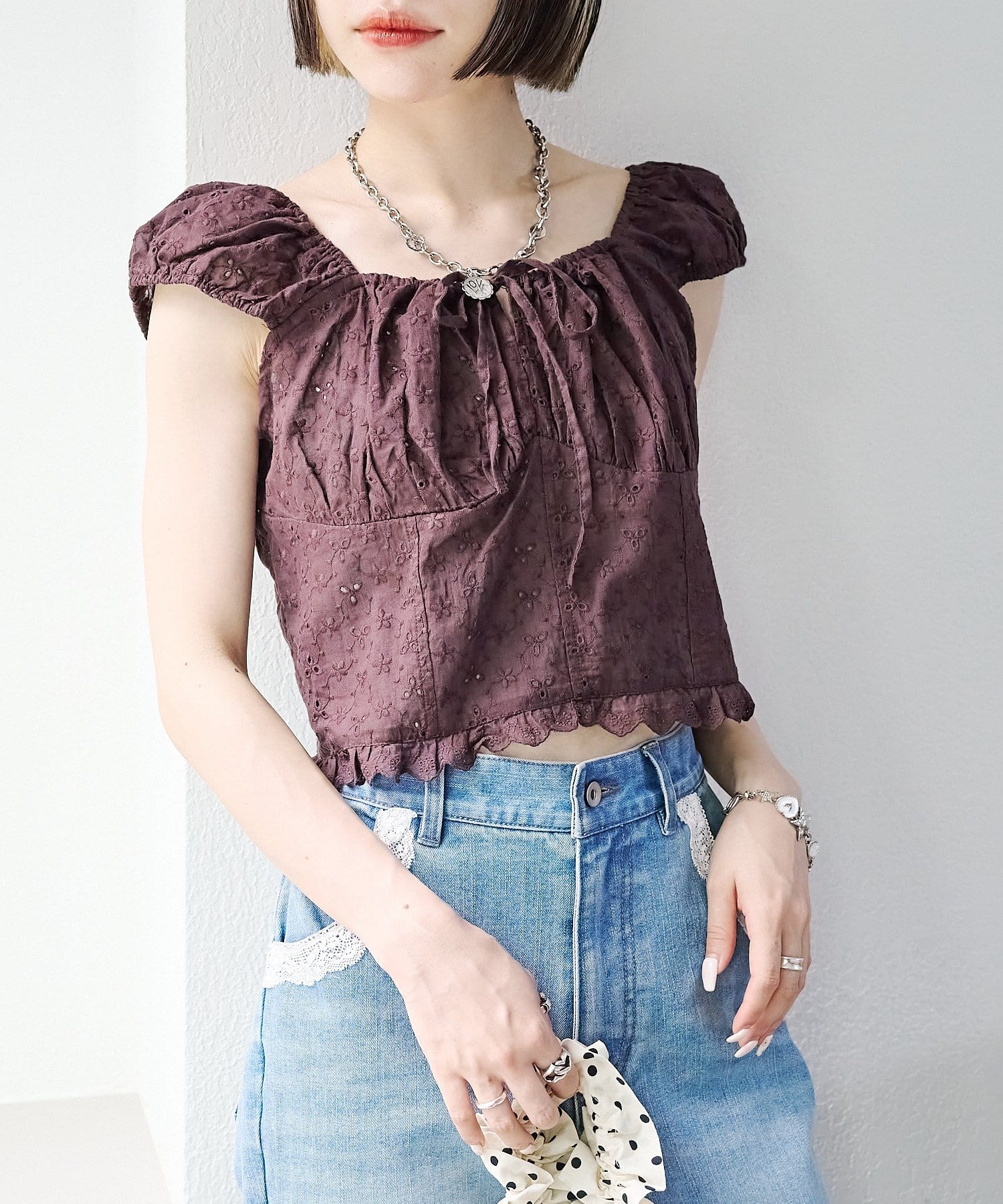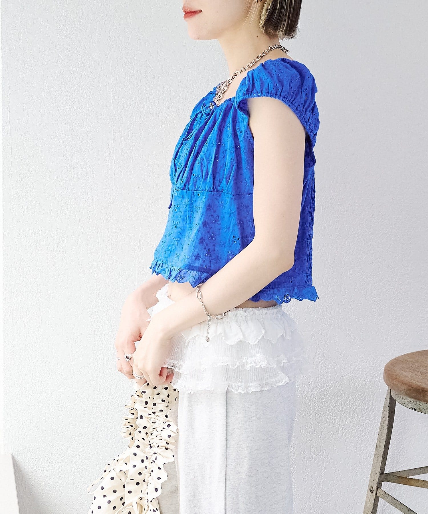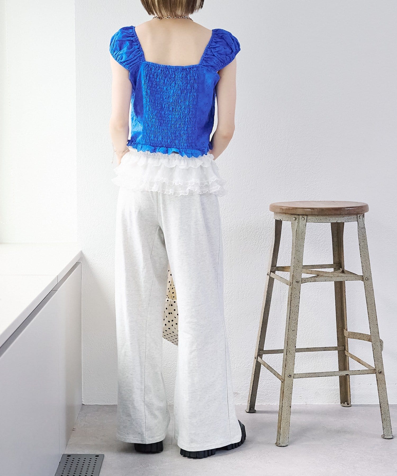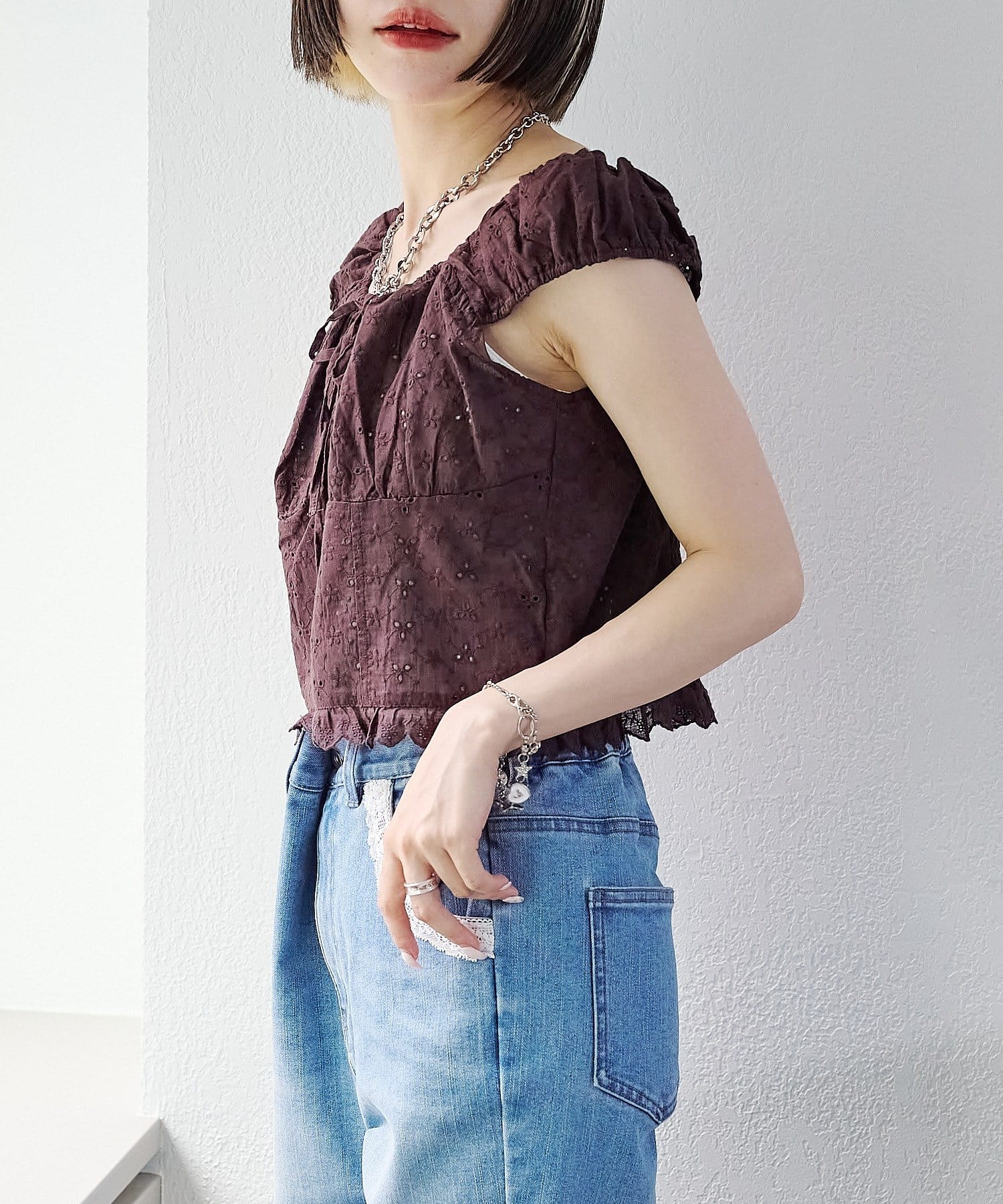• w closet(ダブルクローゼット) シフリーレースパフブラウス