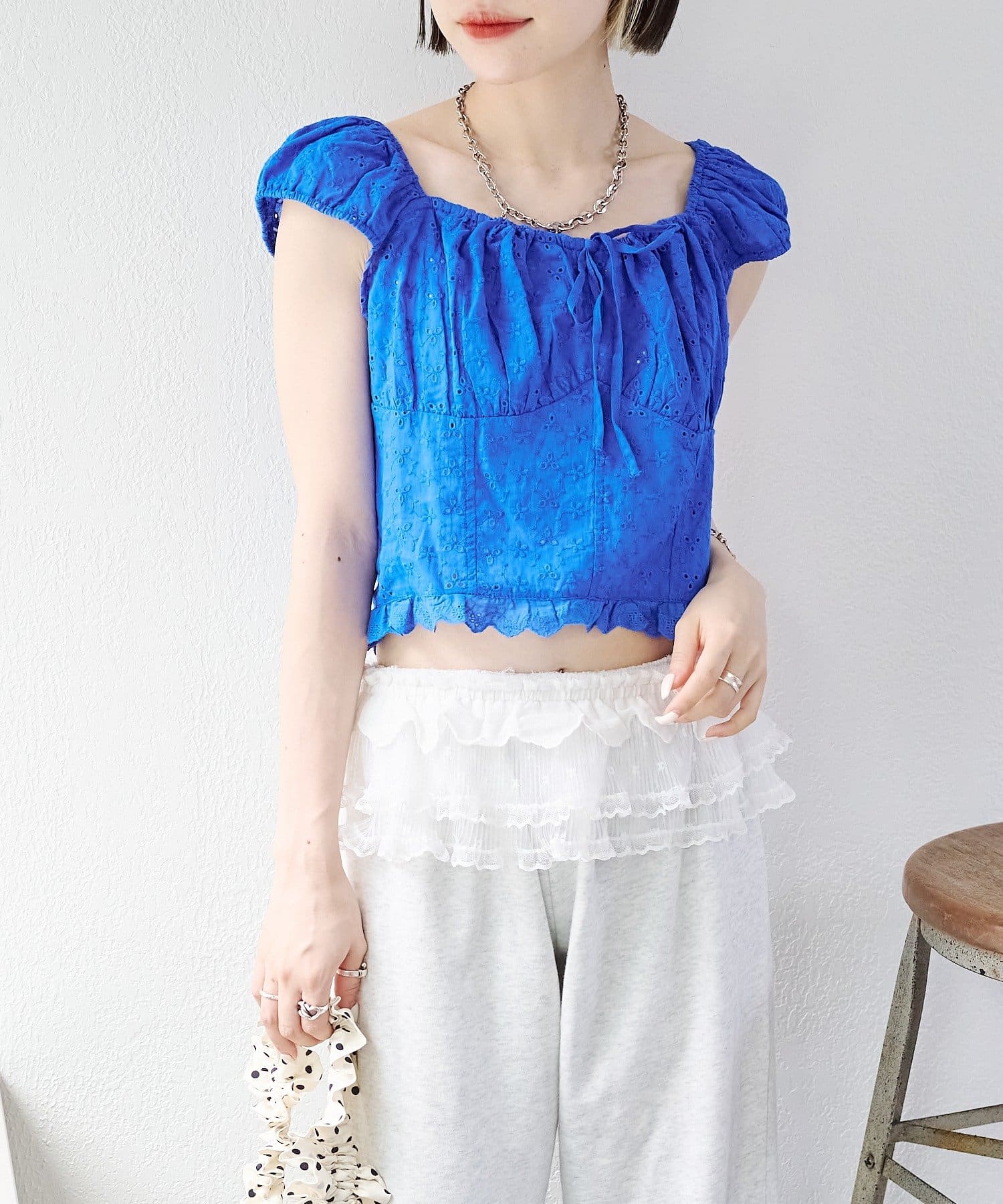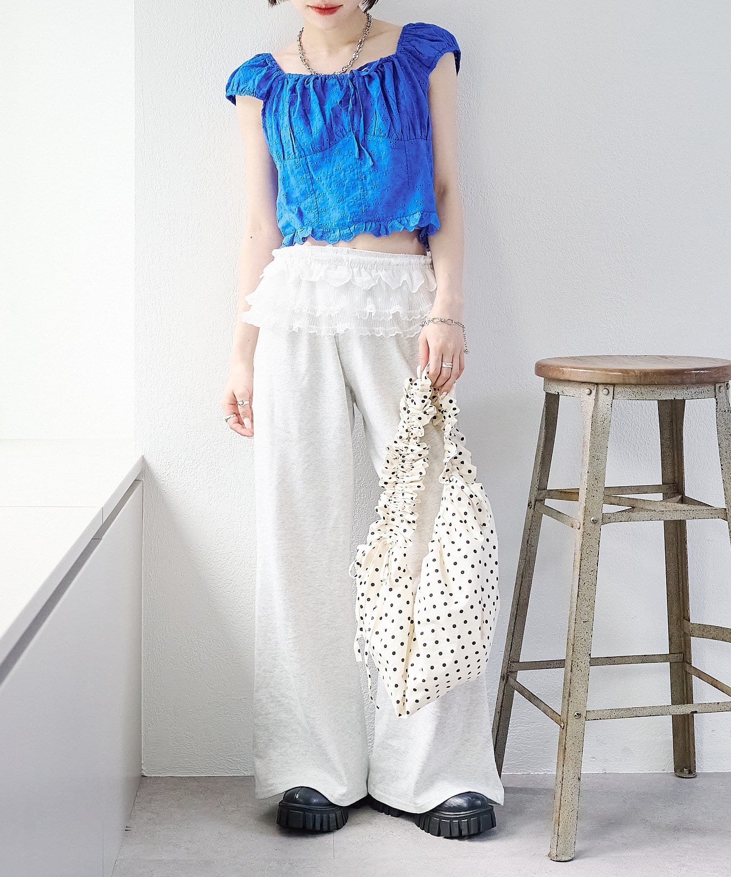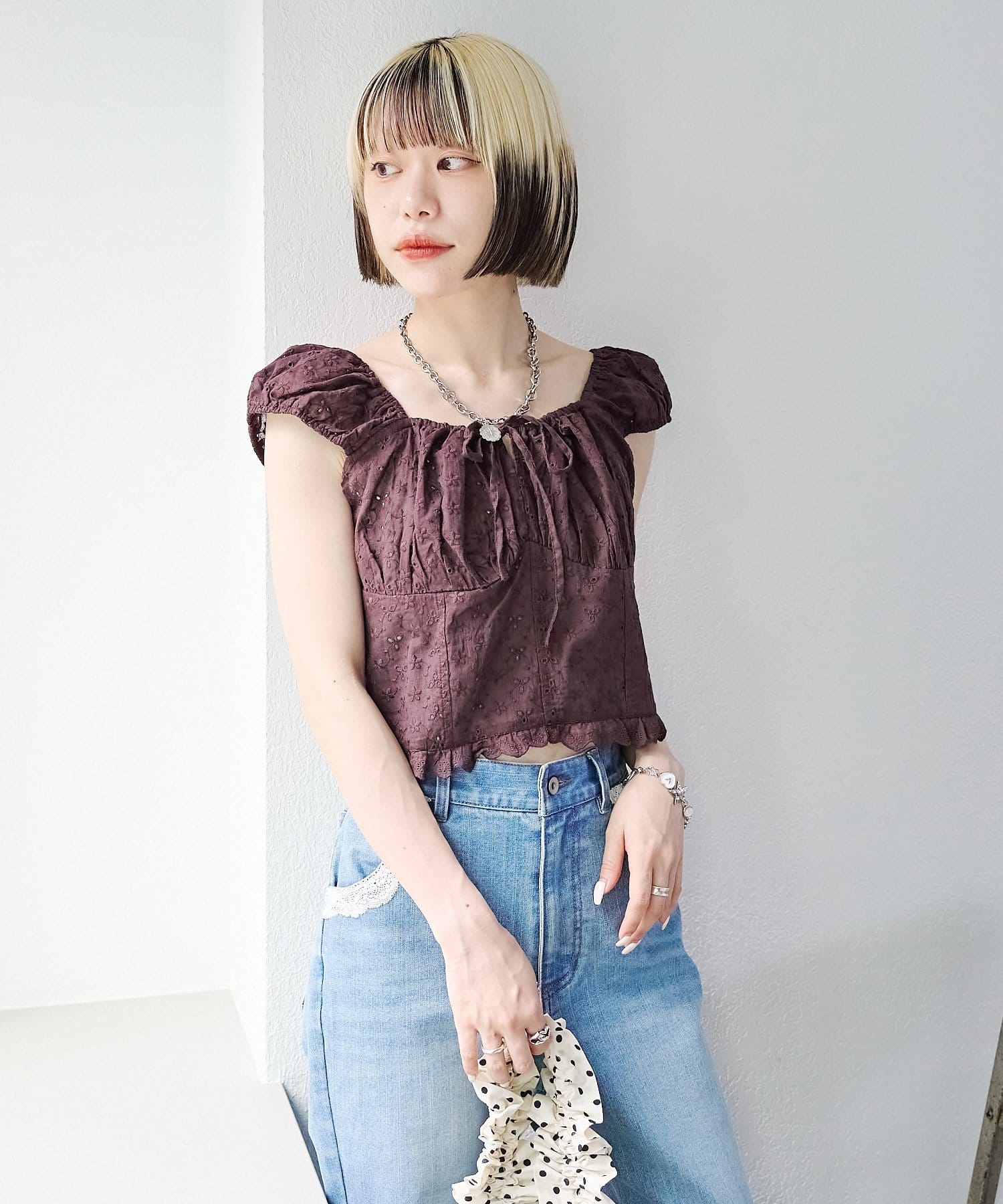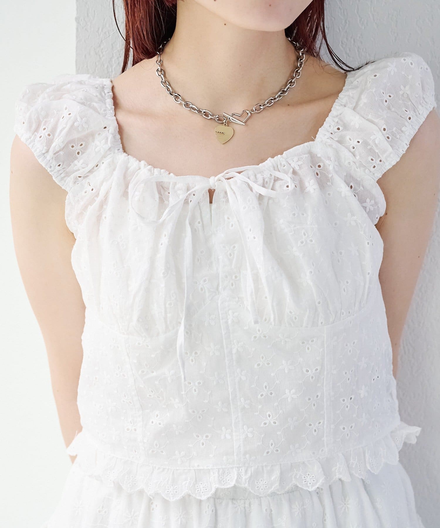 • w closet(ダブルクローゼット) シフリーレースパフブラウス
