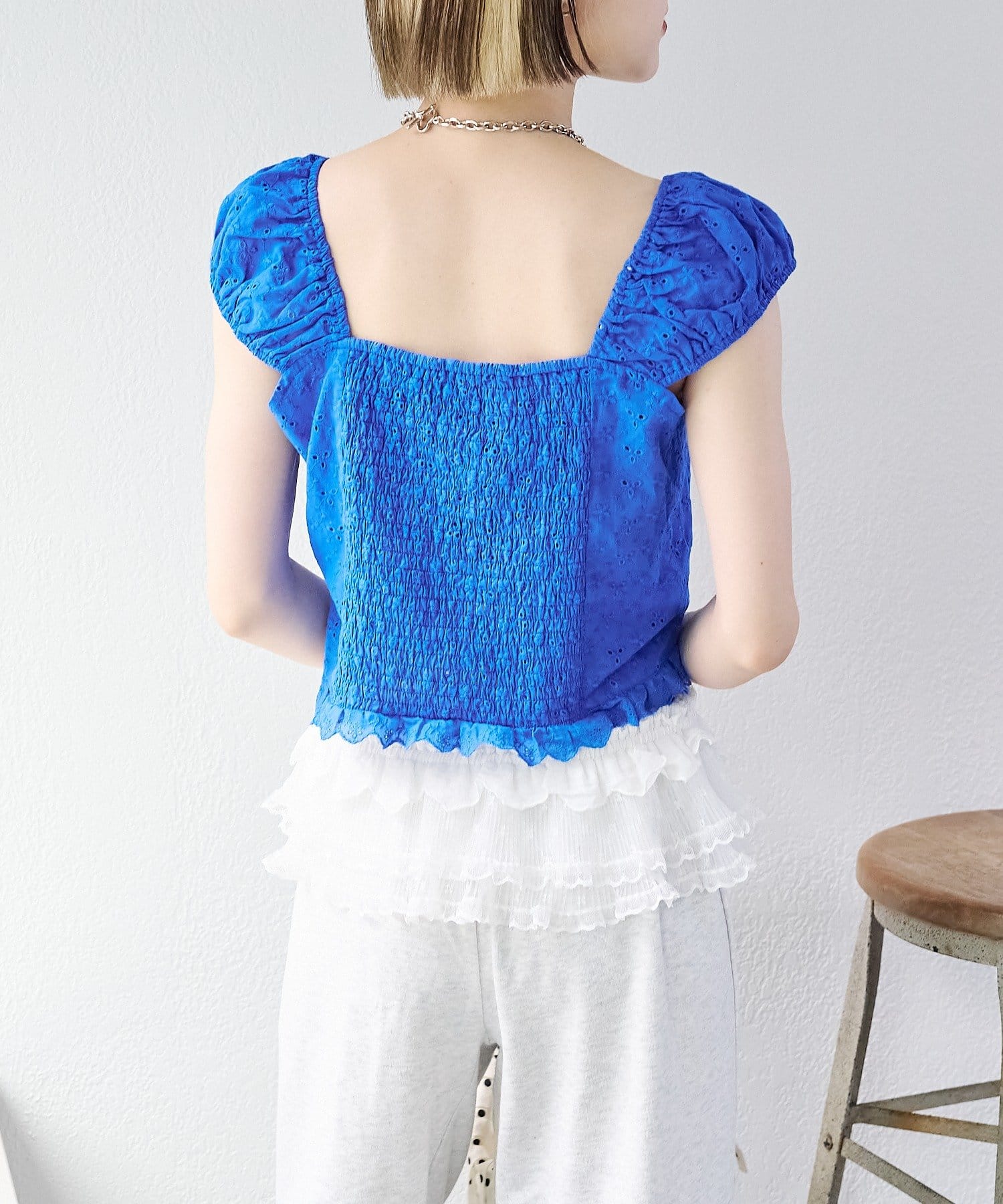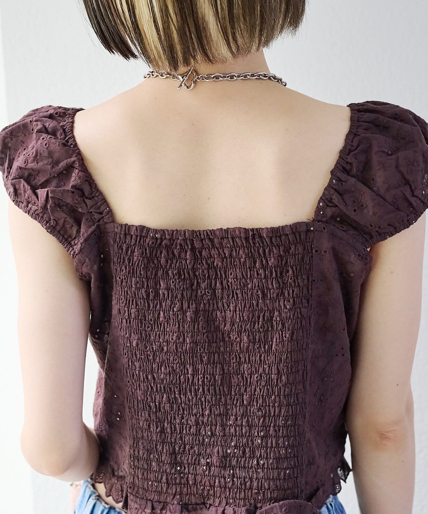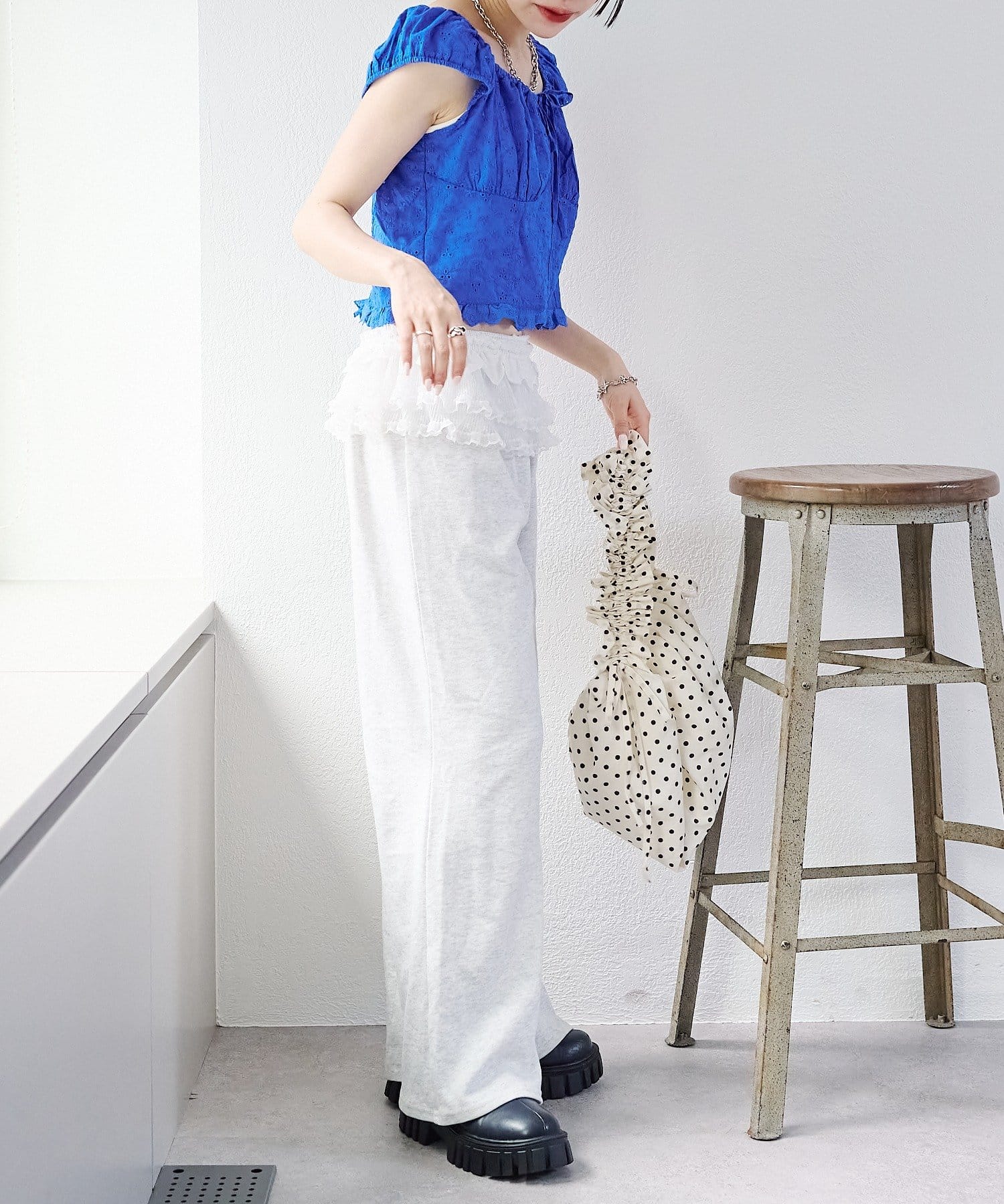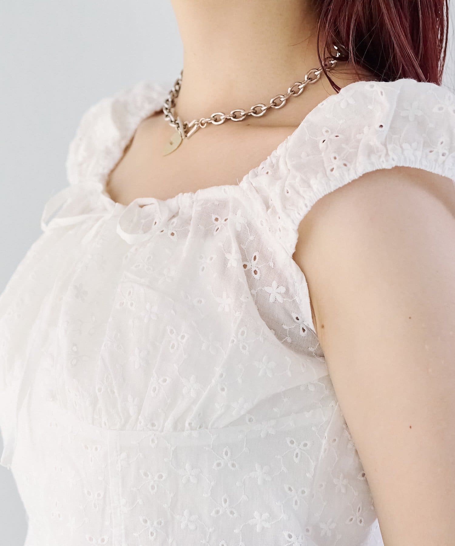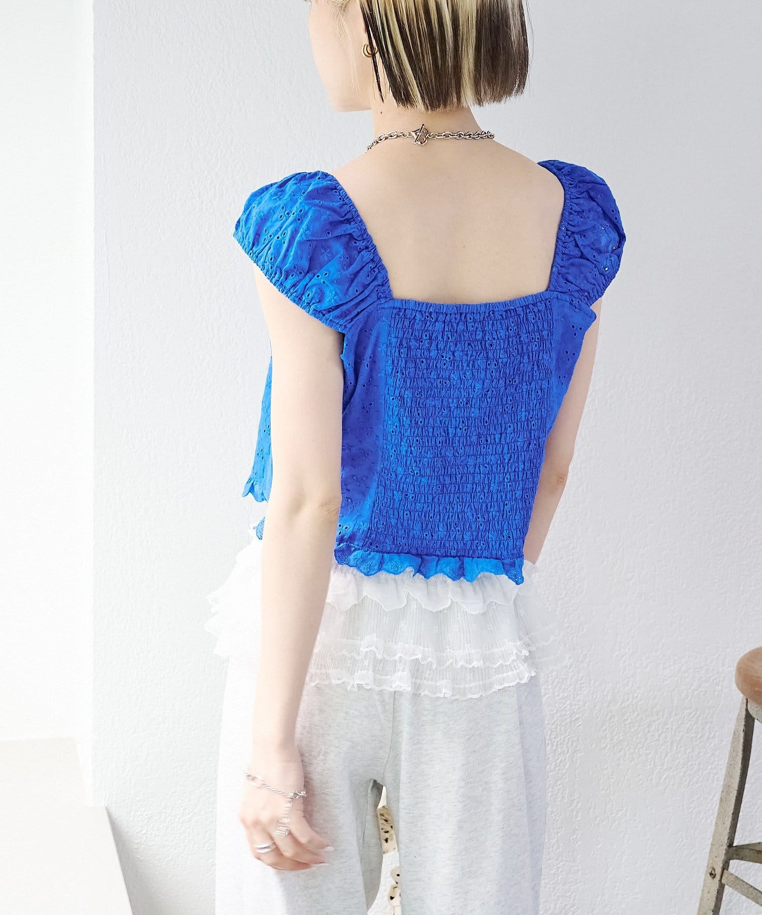 • w closet(ダブルクローゼット) シフリーレースパフブラウス