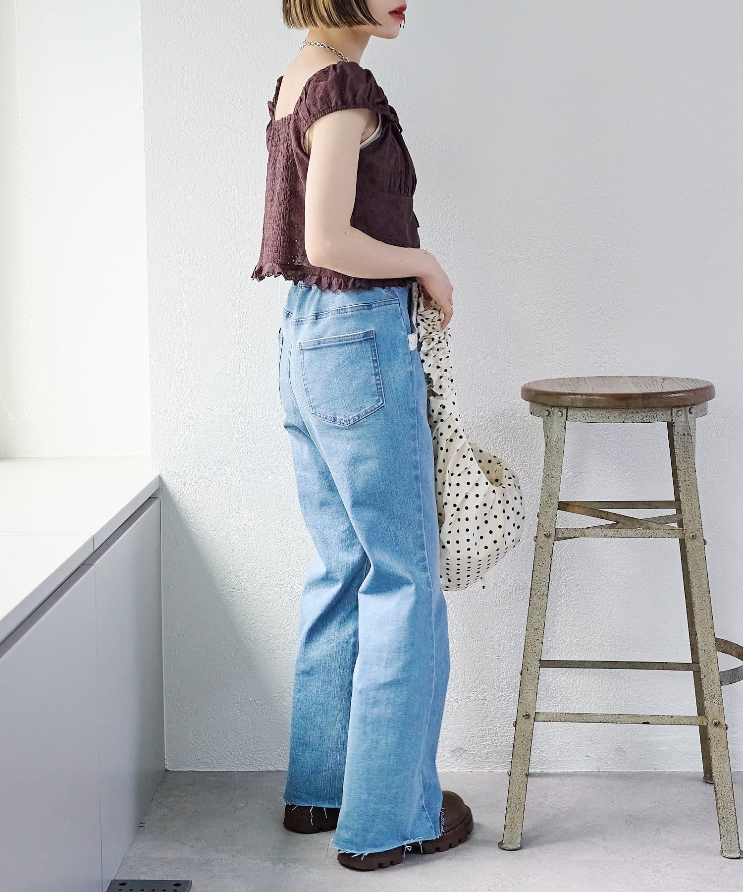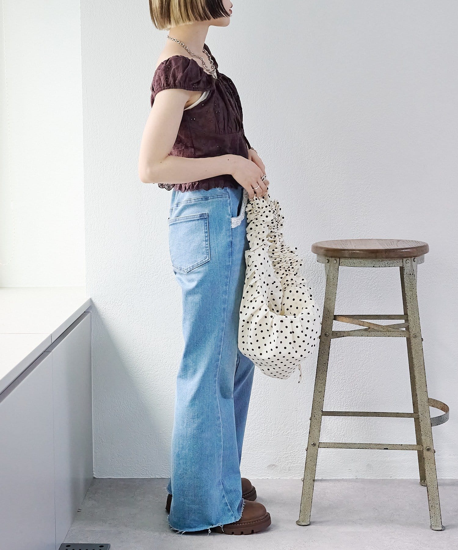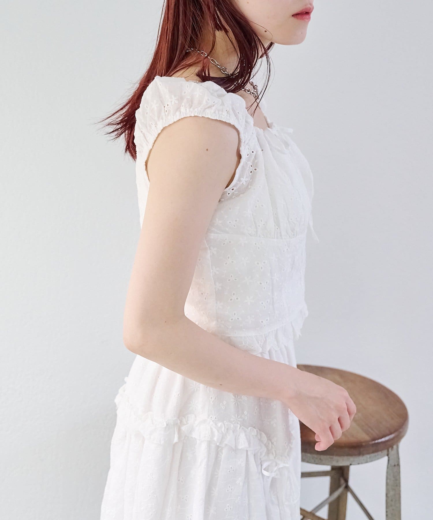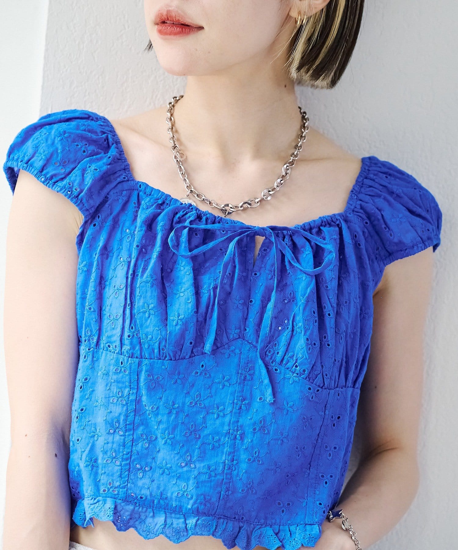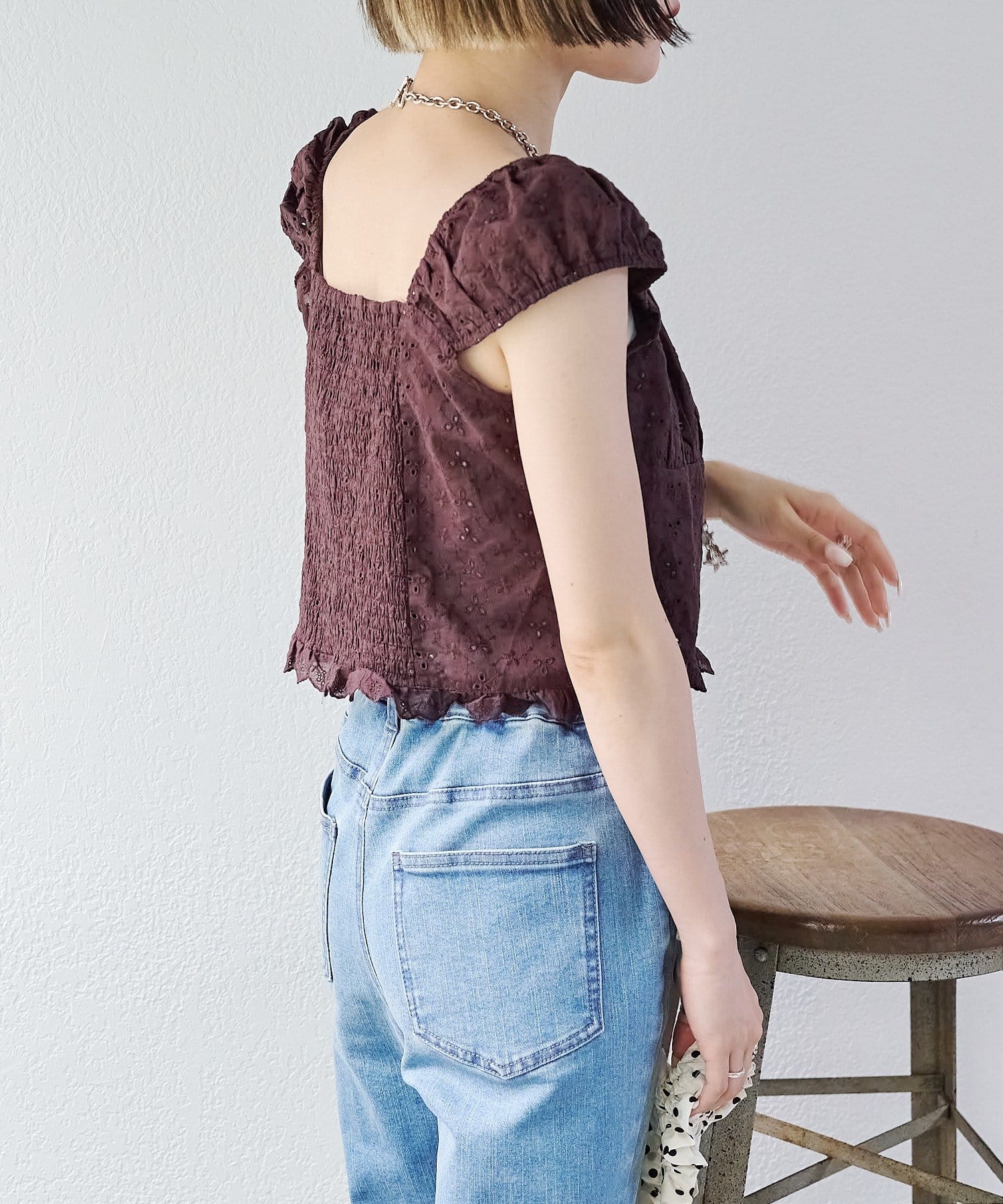• w closet(ダブルクローゼット) シフリーレースパフブラウス