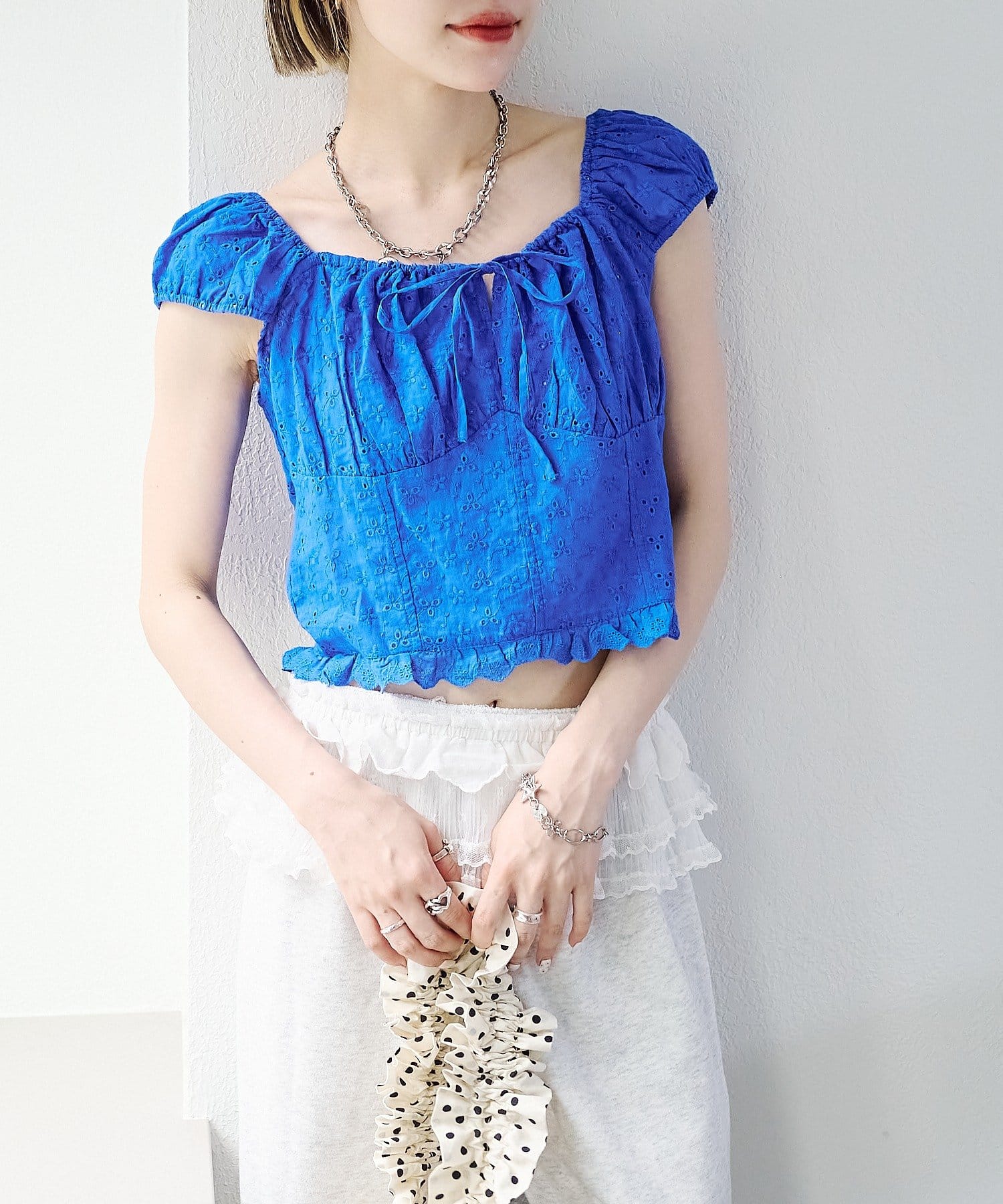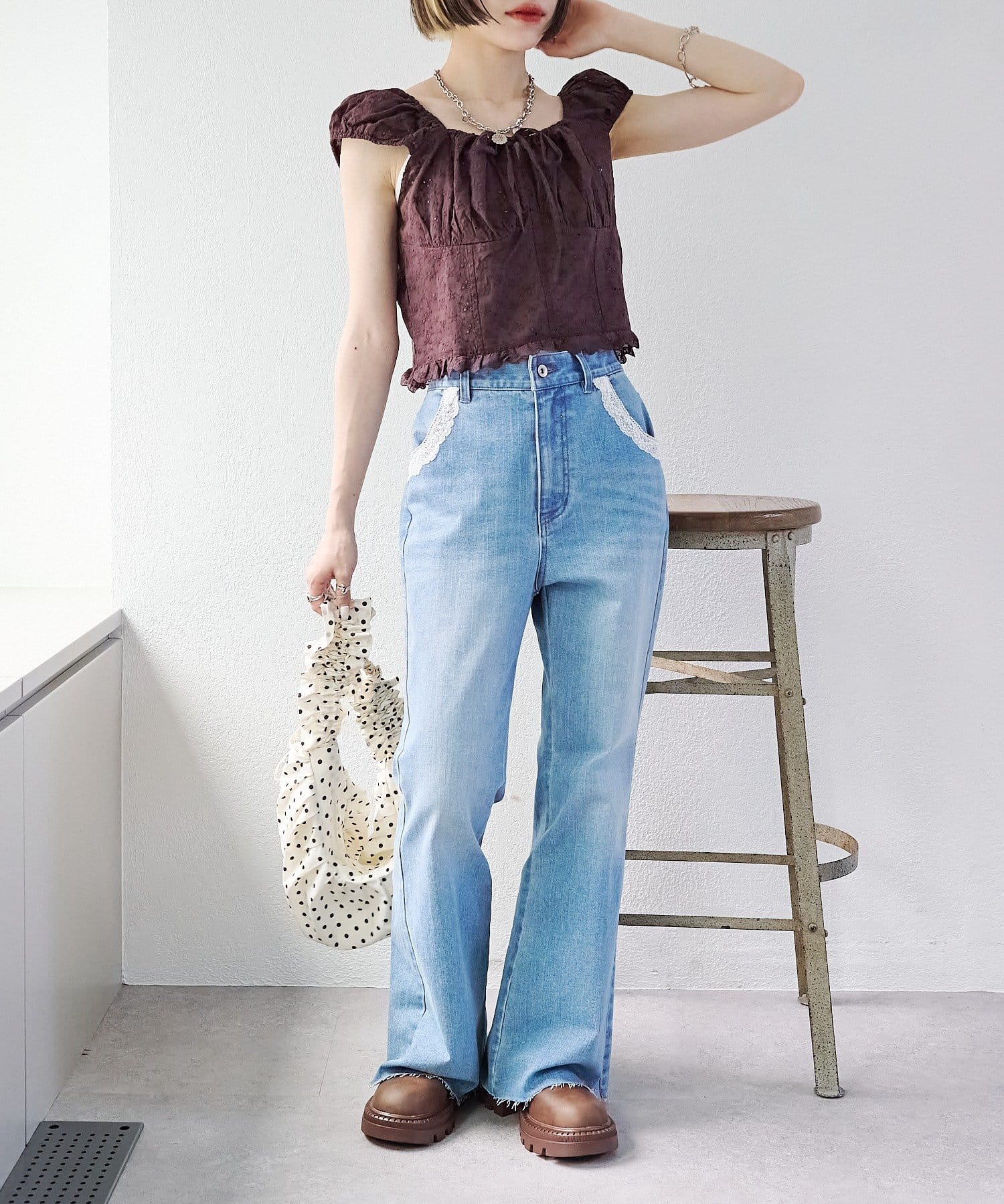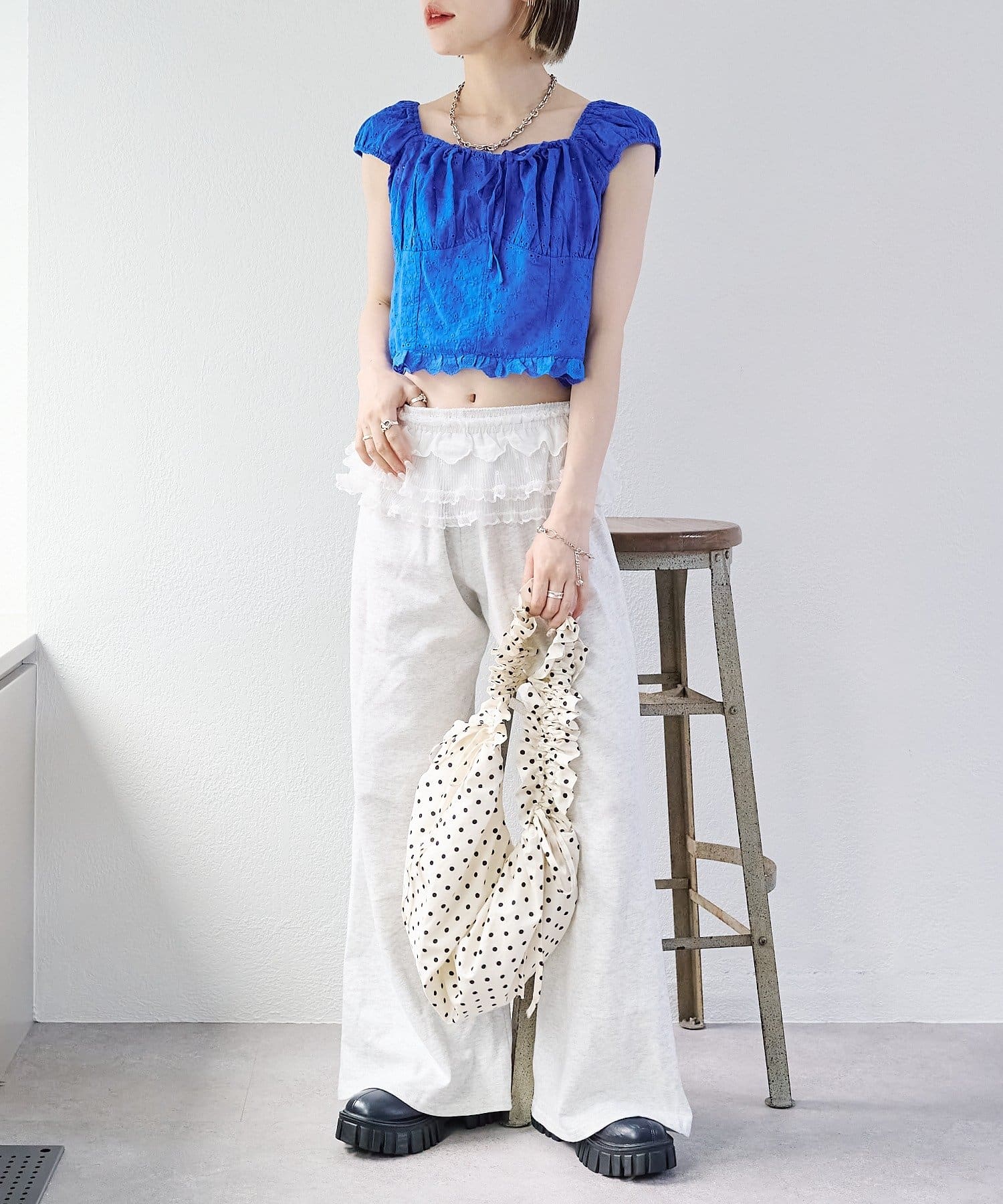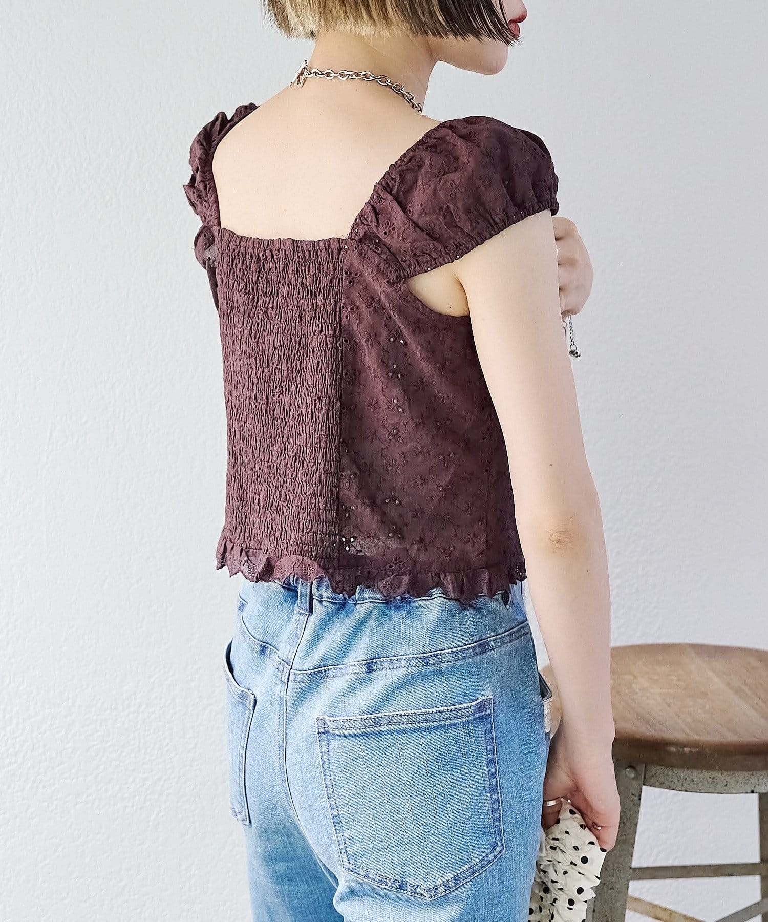 w closet(ダブルクローゼット) シフリーレースパフブラウス
