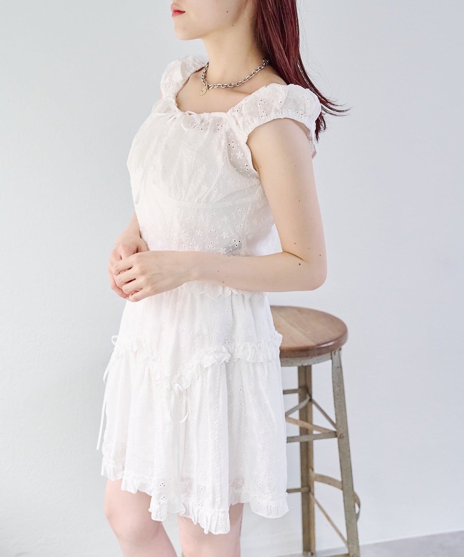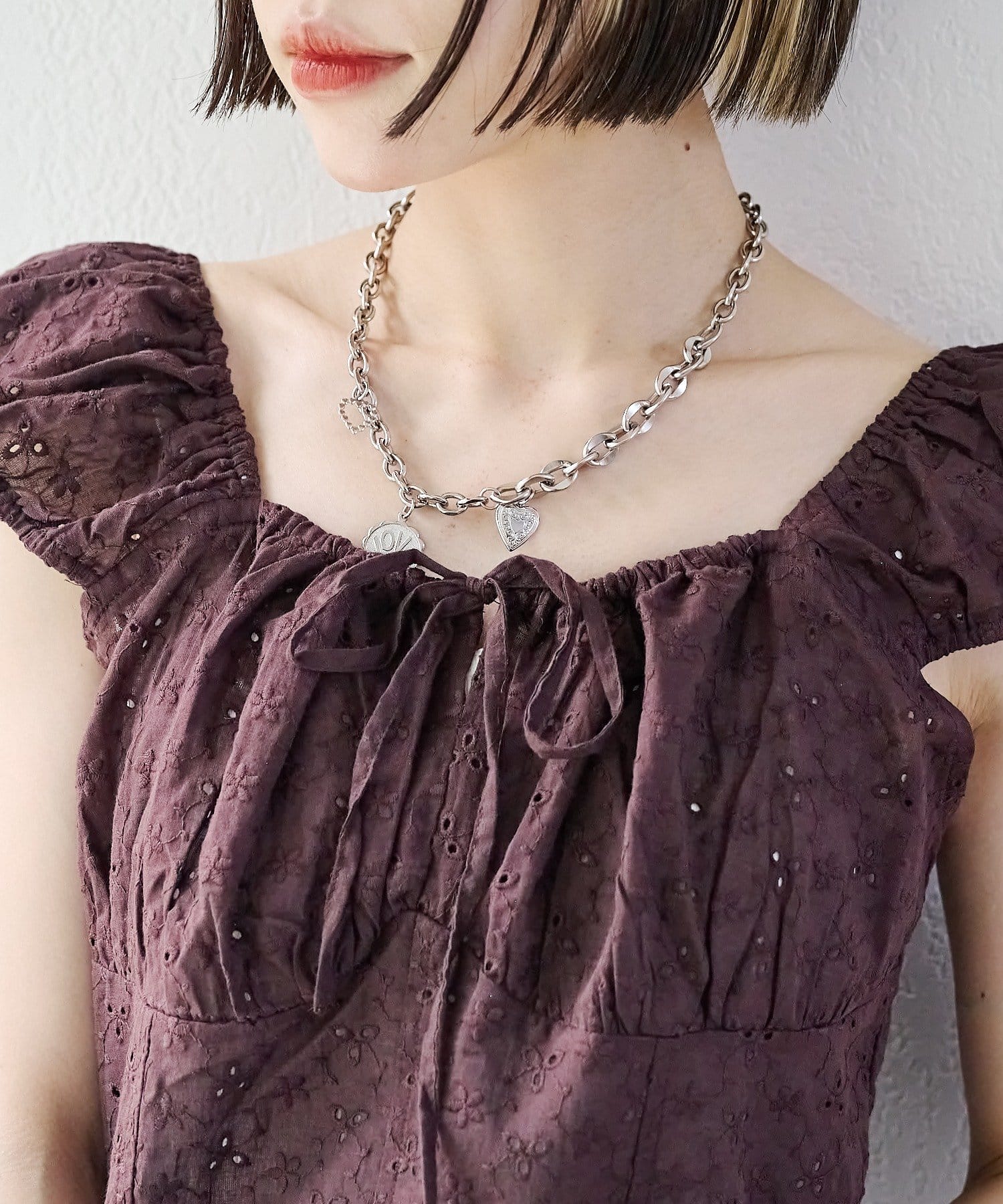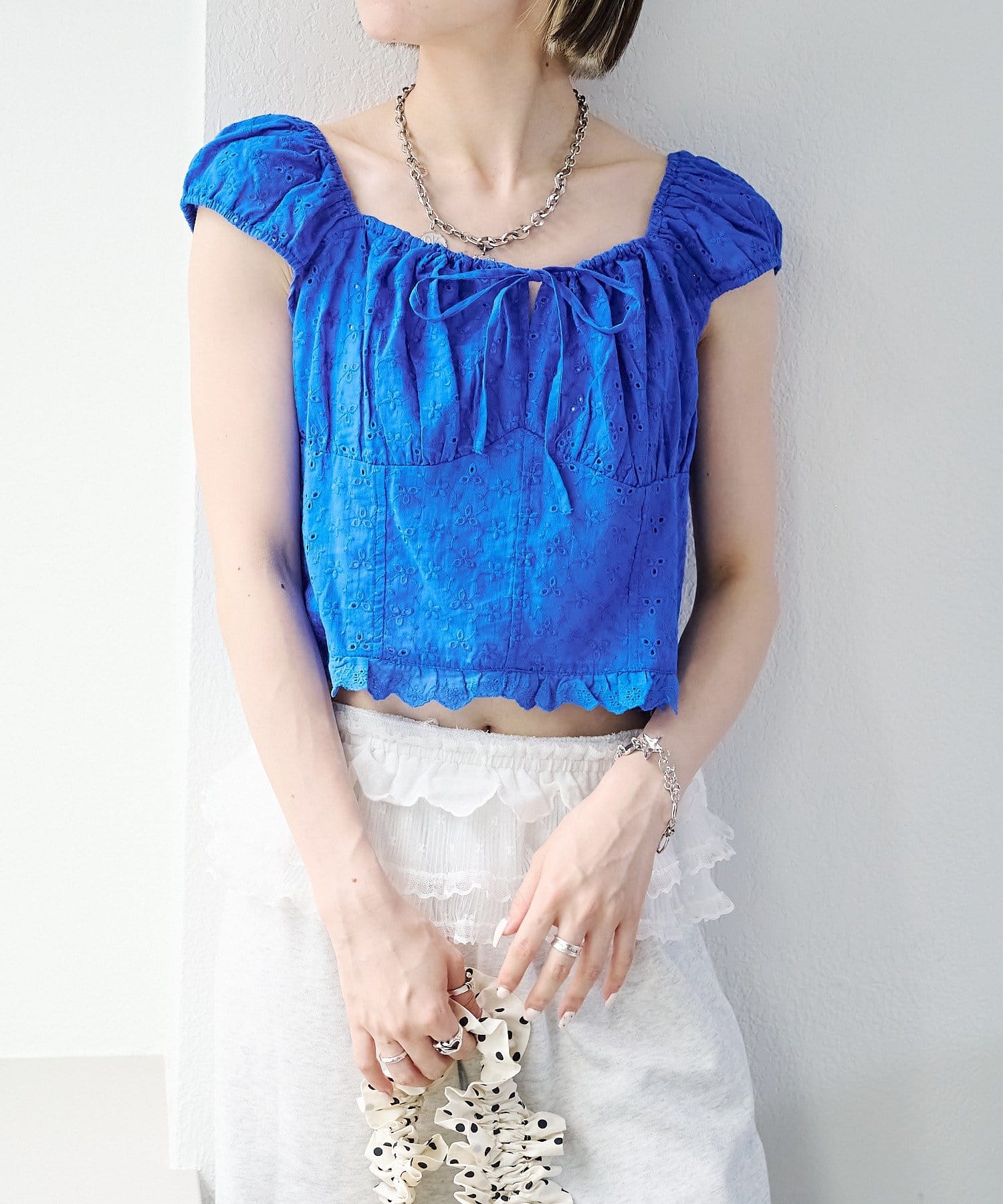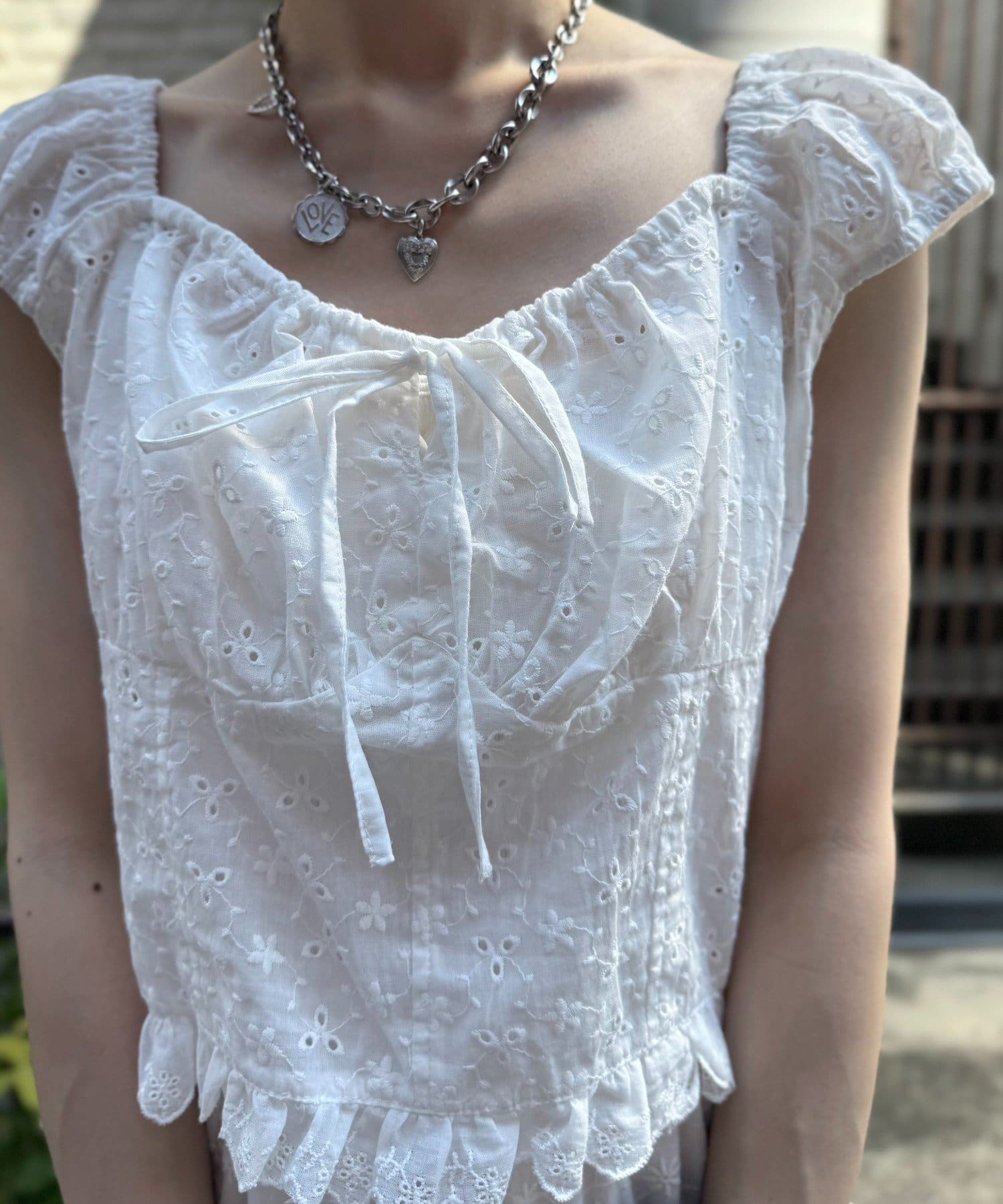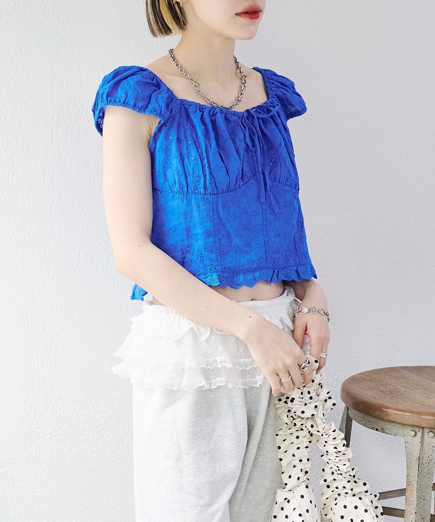 w closet(ダブルクローゼット) シフリーレースパフブラウス