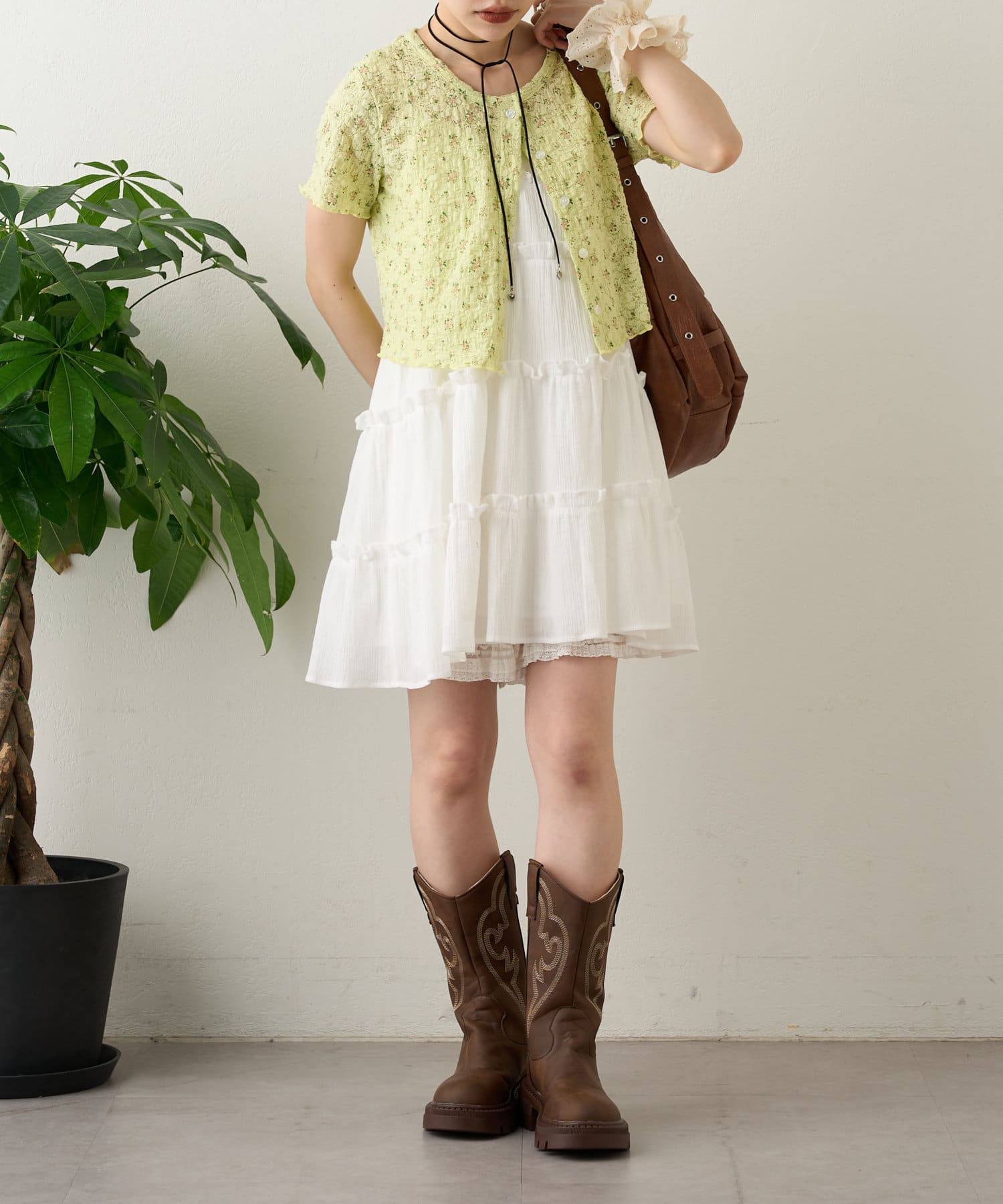 【w closet】小花シャーリングメローカーディガン