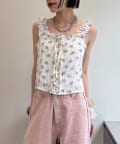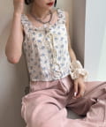 【3色展開】花柄シャーリングTOPS