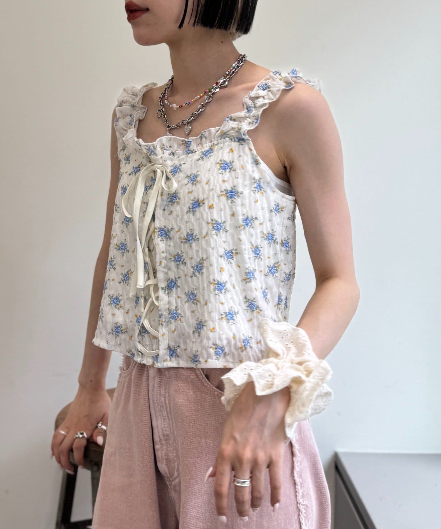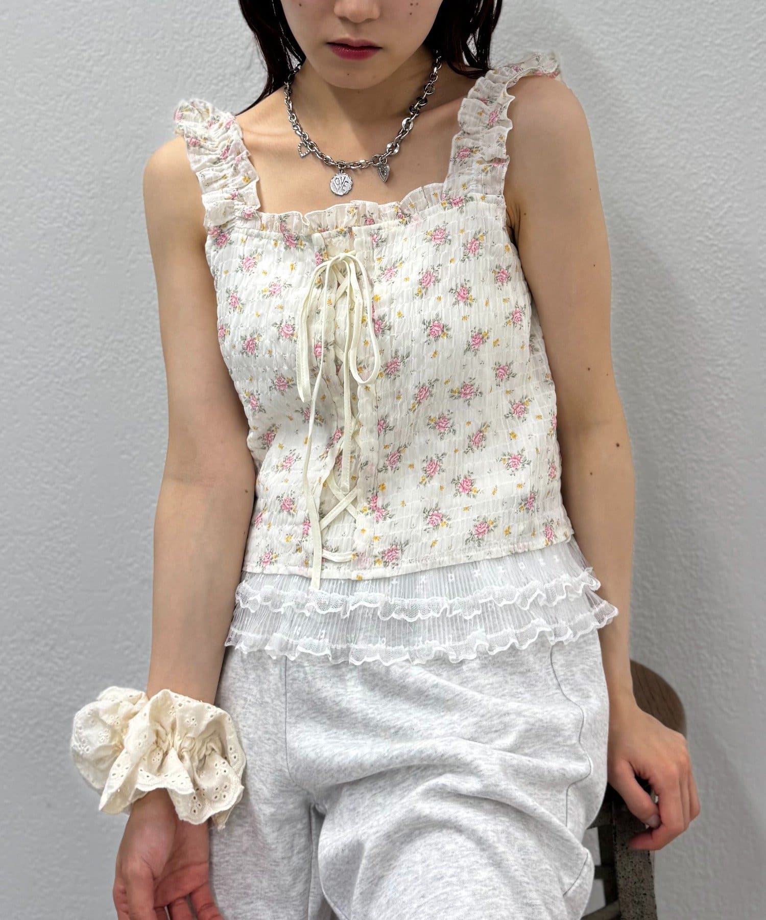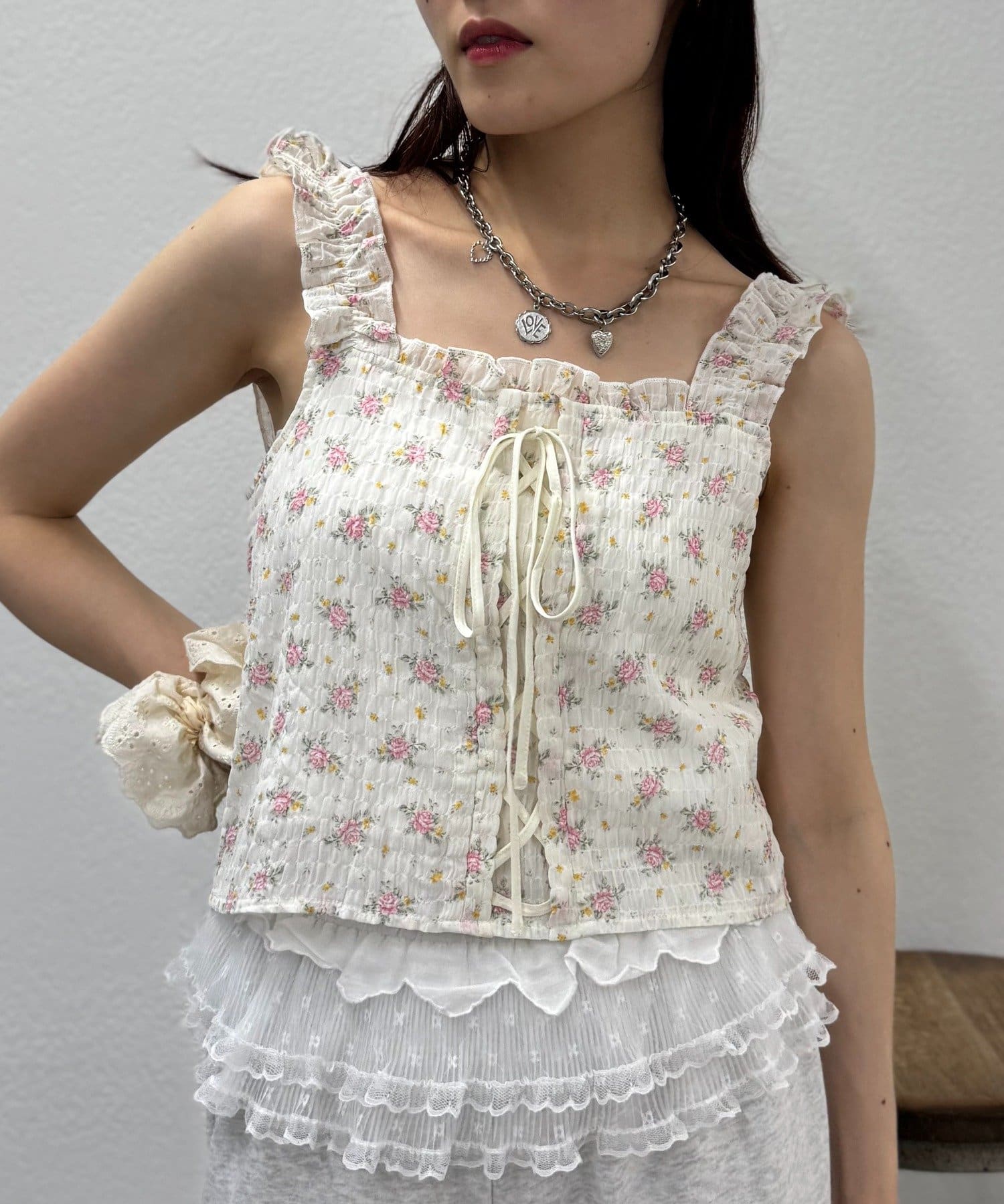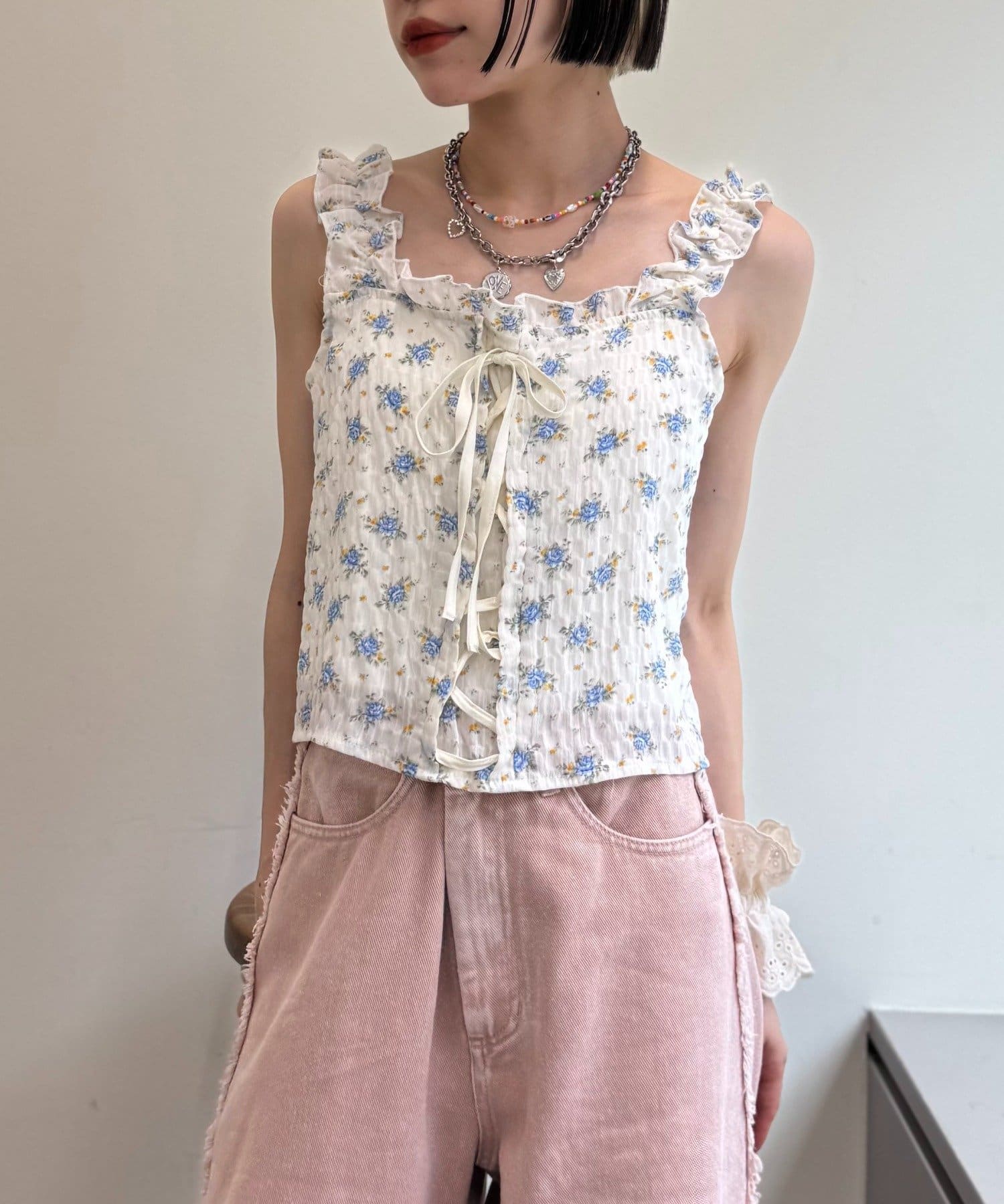 編み上げリボンが可愛いビスチェ風トップス♡